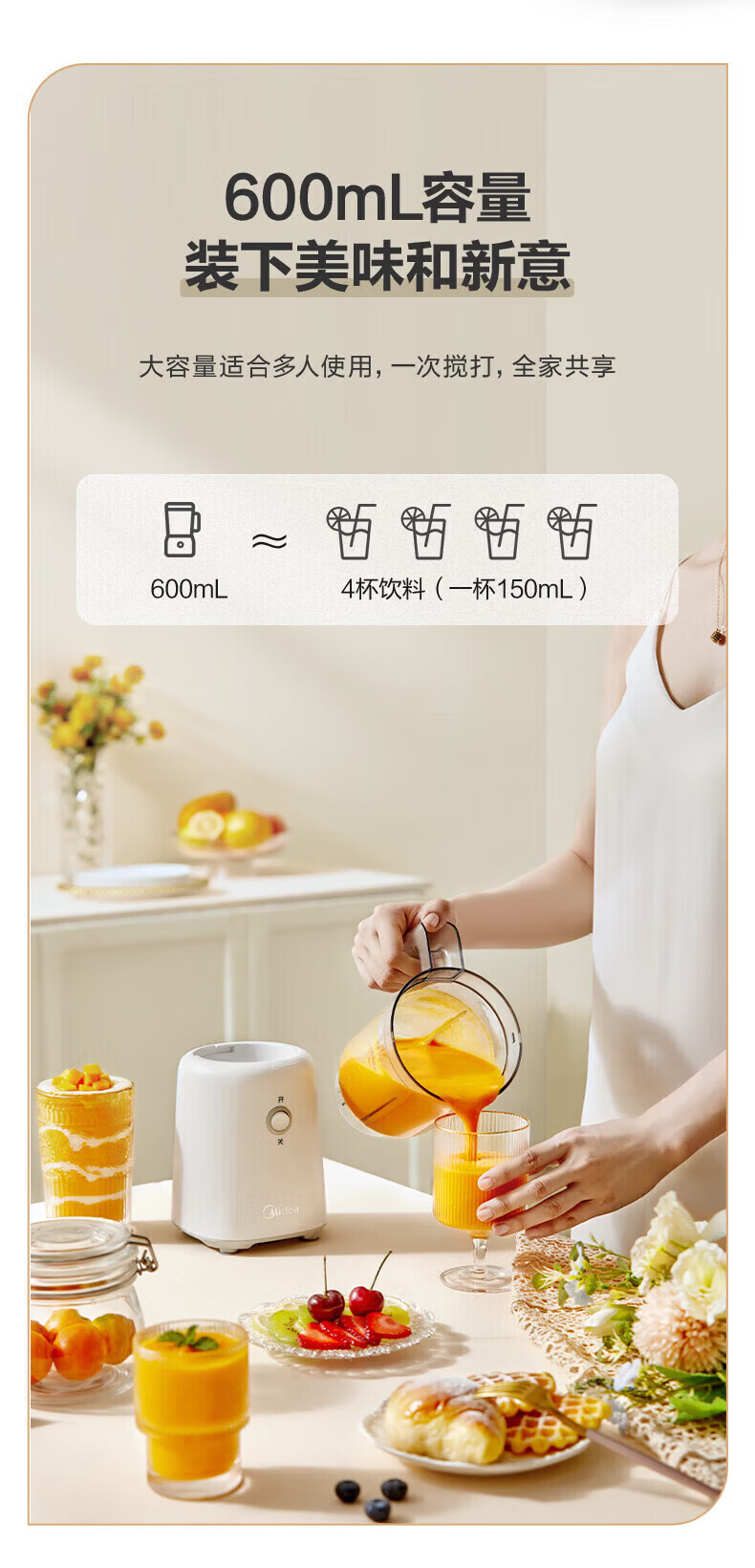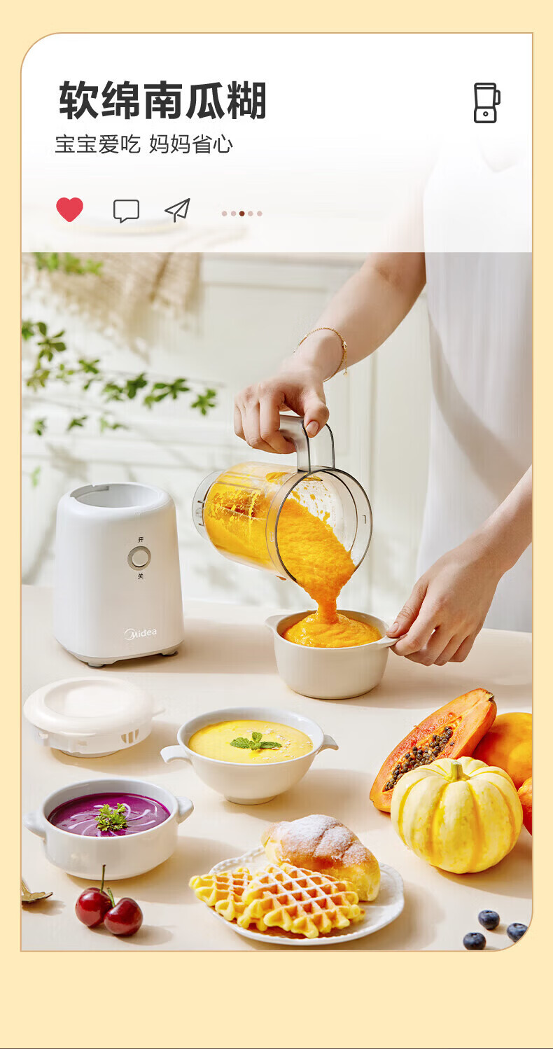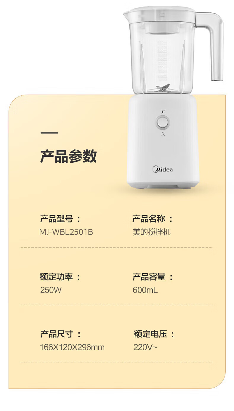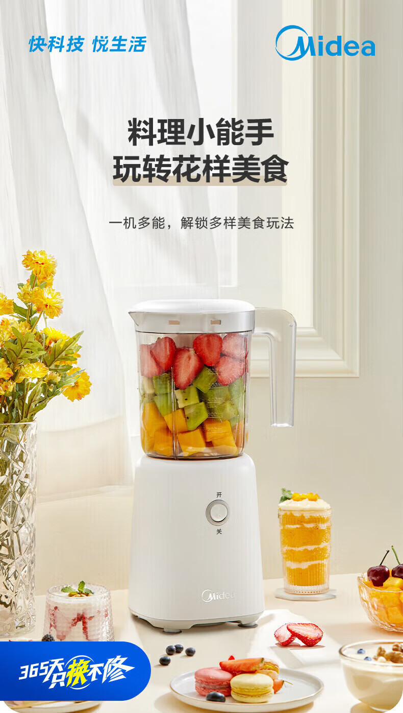 美的(Midea)榨汁机便携式榨汁机多功能家用养生料理机婴儿辅食机果汁机搅拌机 精钢双刃低音低噪