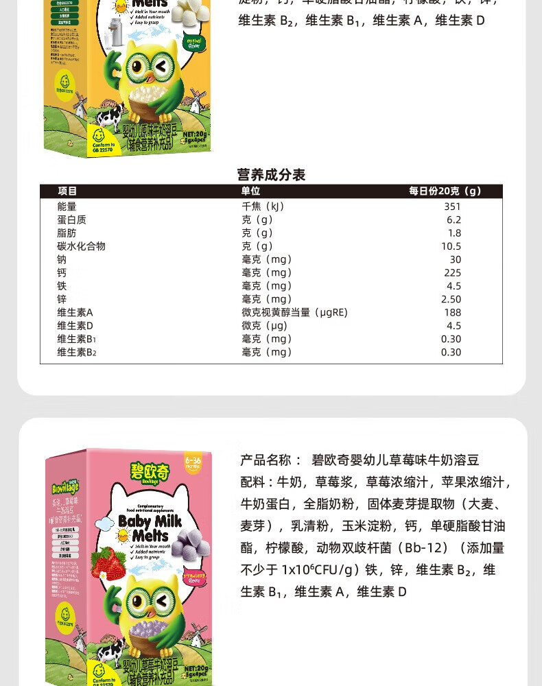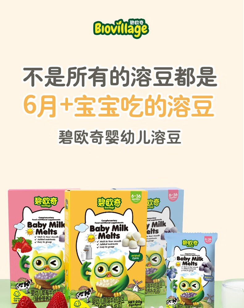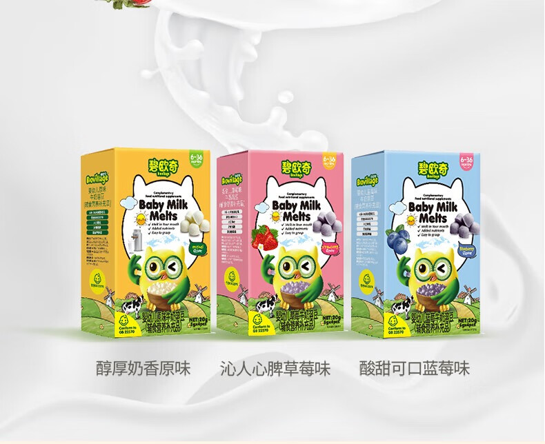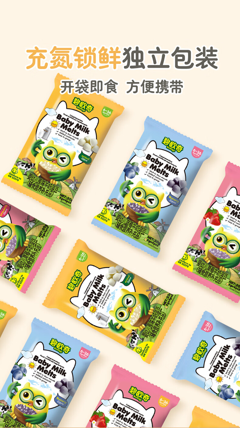 碧欧奇婴幼儿牛奶溶豆 添加钙铁锌营养儿童零食三种风味 【婴标】溶豆4盒(原味2+草莓1+蓝莓1)