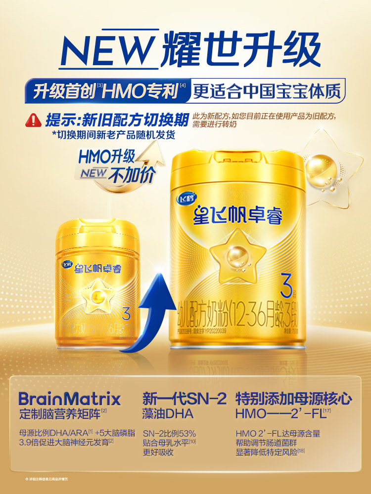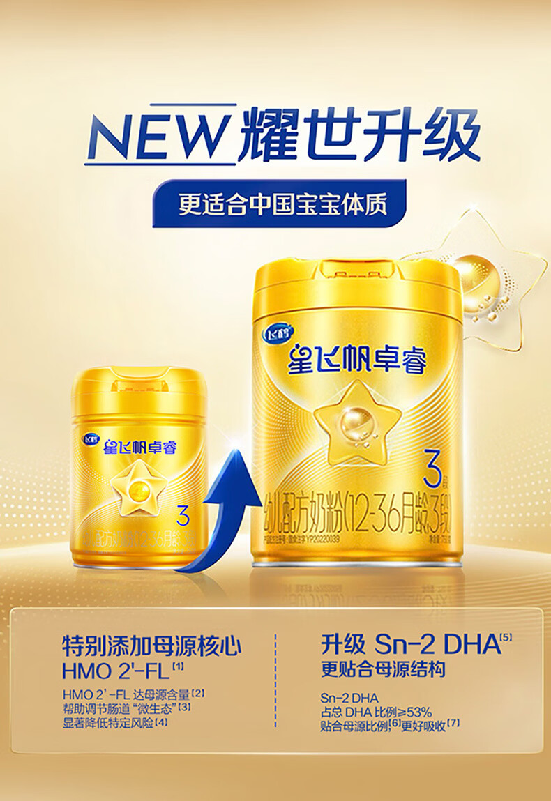 飞鹤星飞帆卓睿 幼儿配方奶粉3段(1-3岁)750g 乳铁蛋白【老爸抽检】