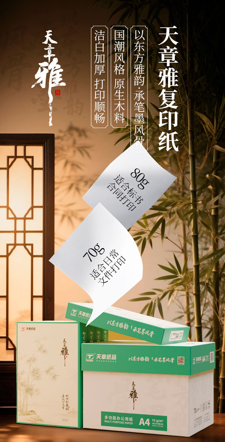 天章 (TANGO)天章雅A4纸打印纸 70g 500张/包 8包/箱【实用品质】白纸草稿纸资料打印复印纸整箱4000张
