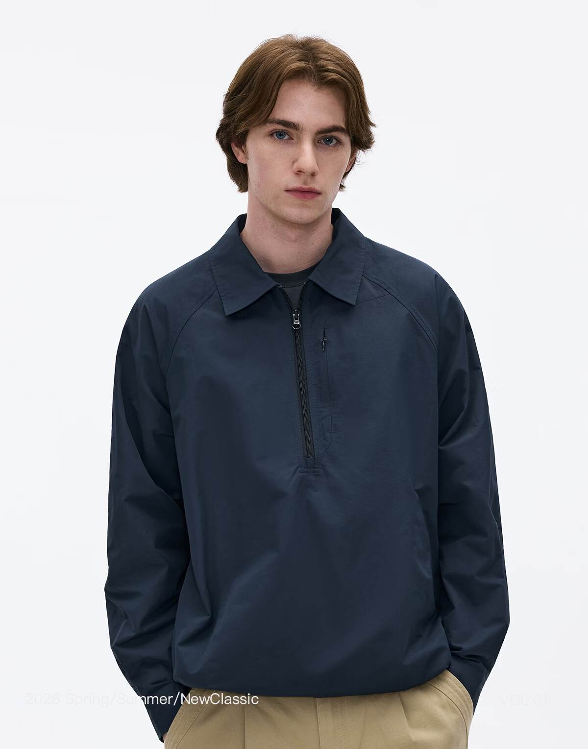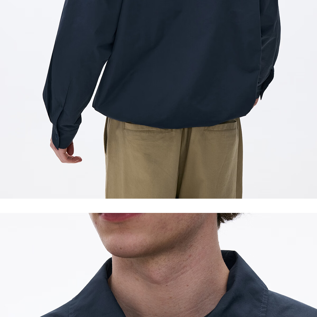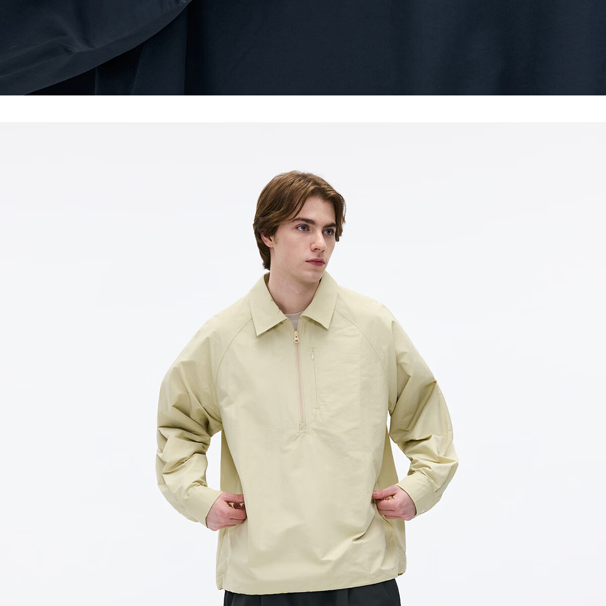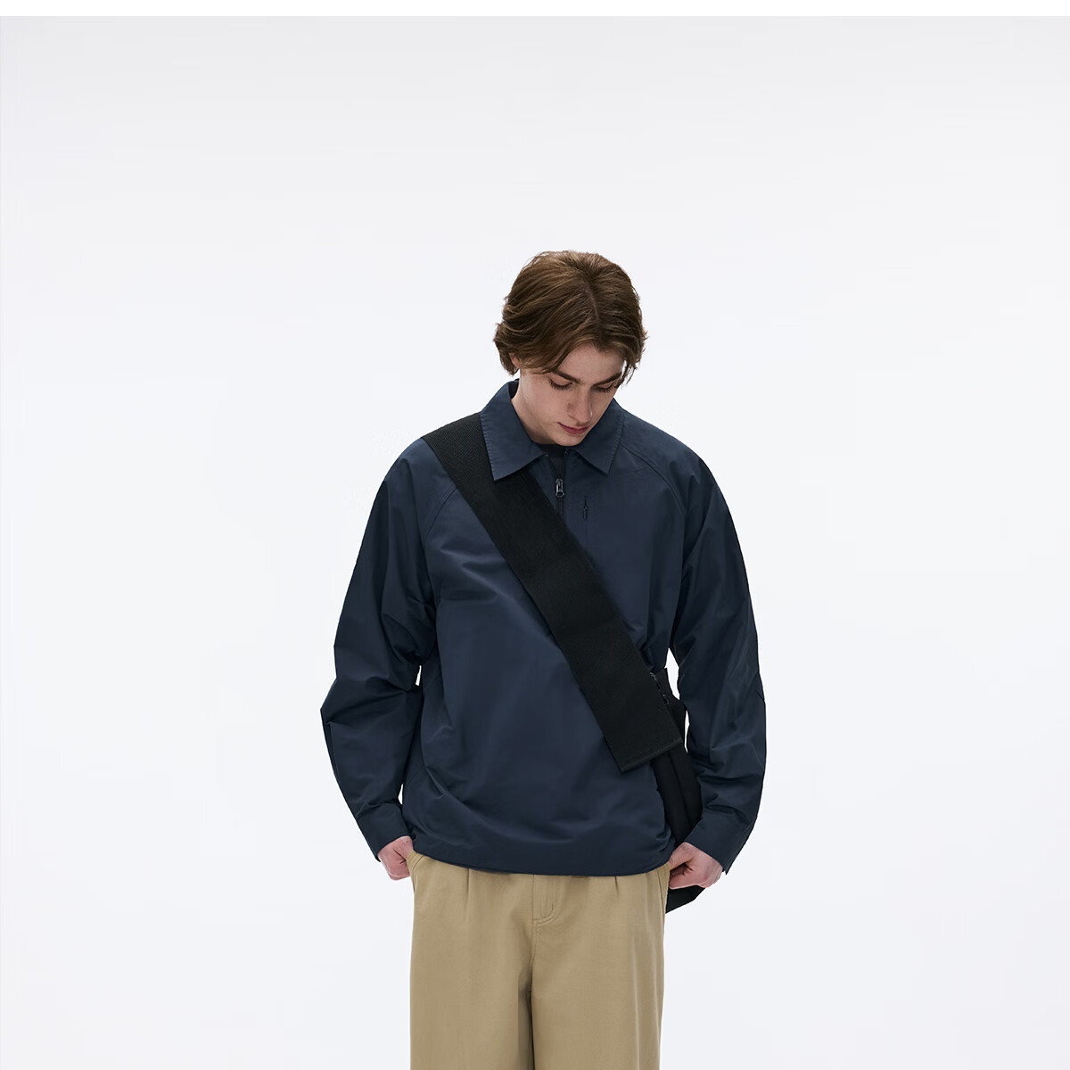 熊猫·本(ben.panda)纯色半开领套头衬衫男休闲翻领长袖外套2026春季新款 藏青色 XL
