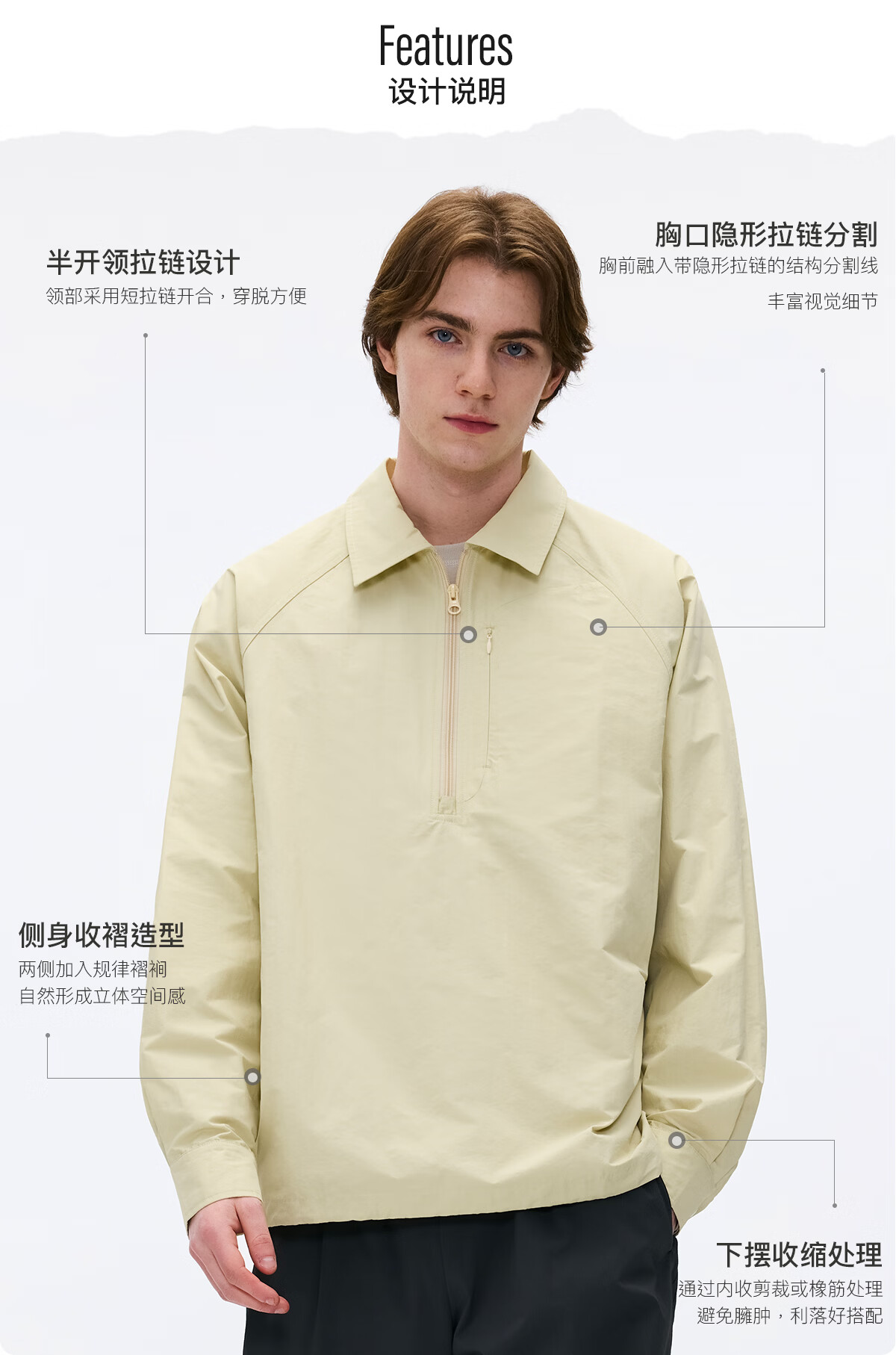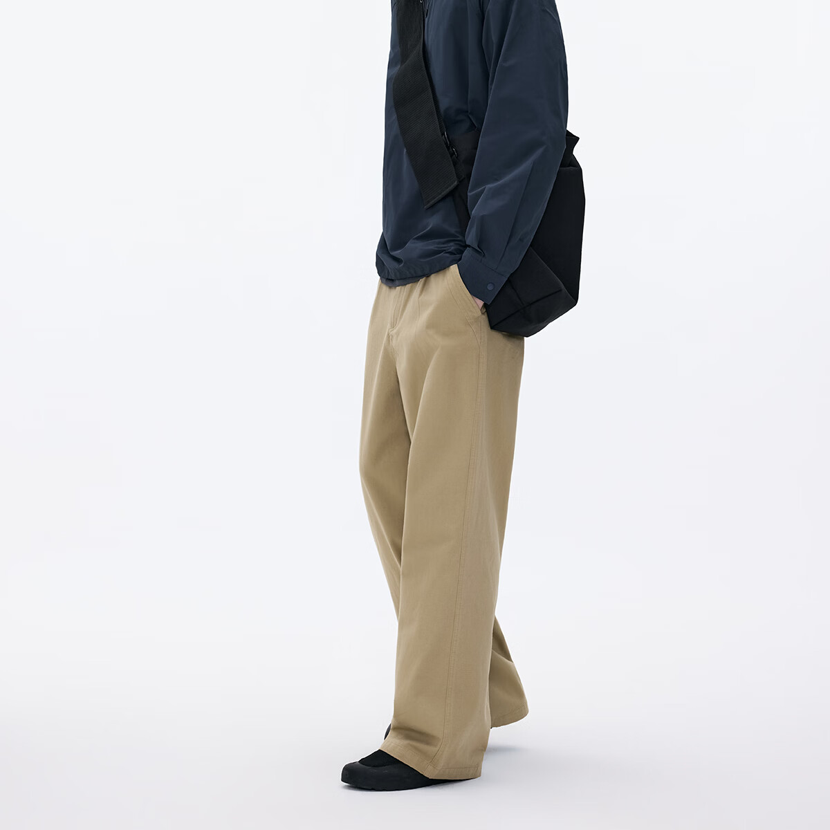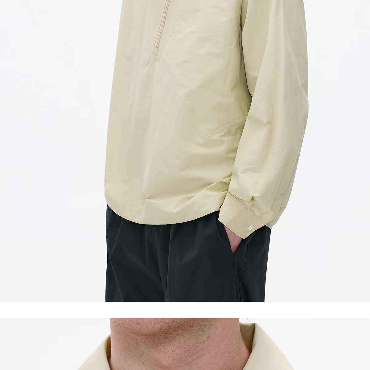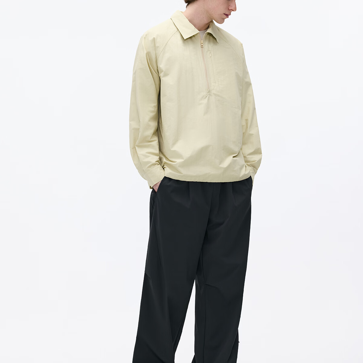 熊猫·本(ben.panda)纯色半开领套头衬衫男休闲翻领长袖外套2026春季新款 藏青色 XL