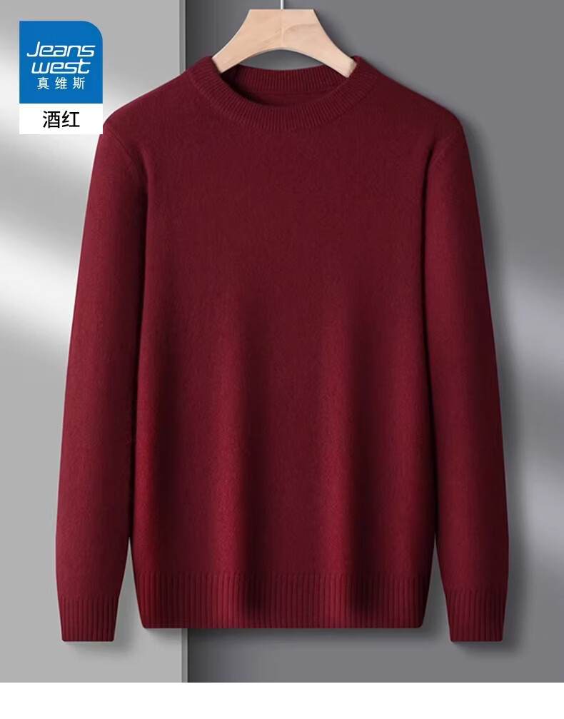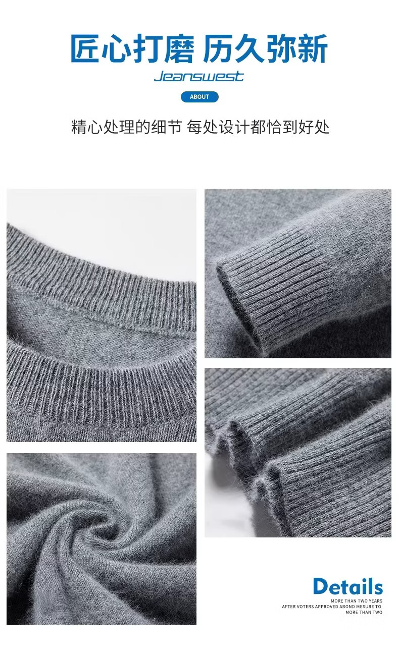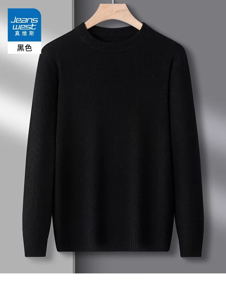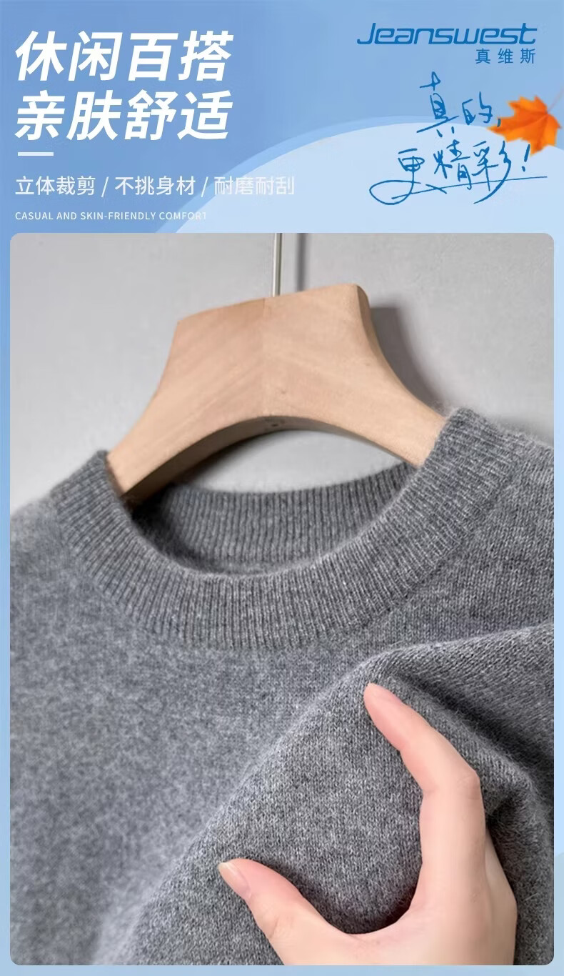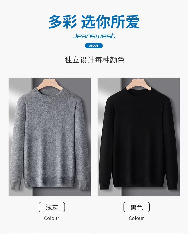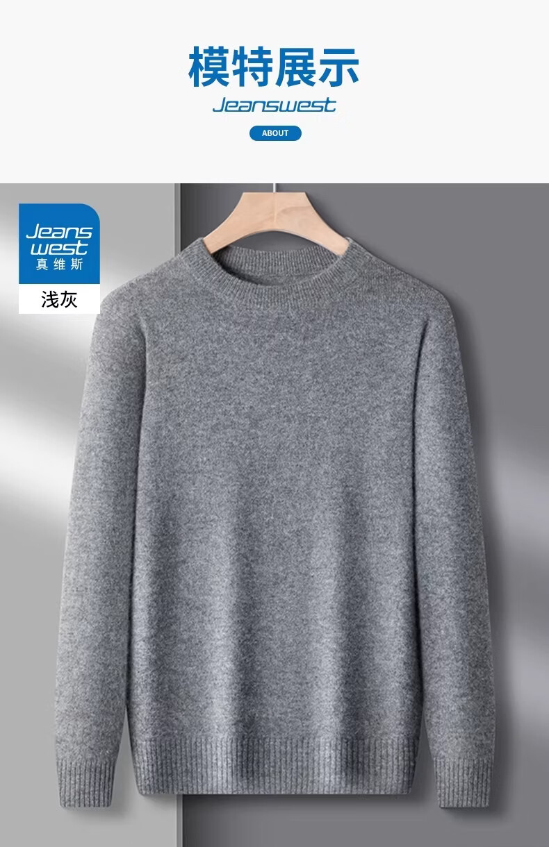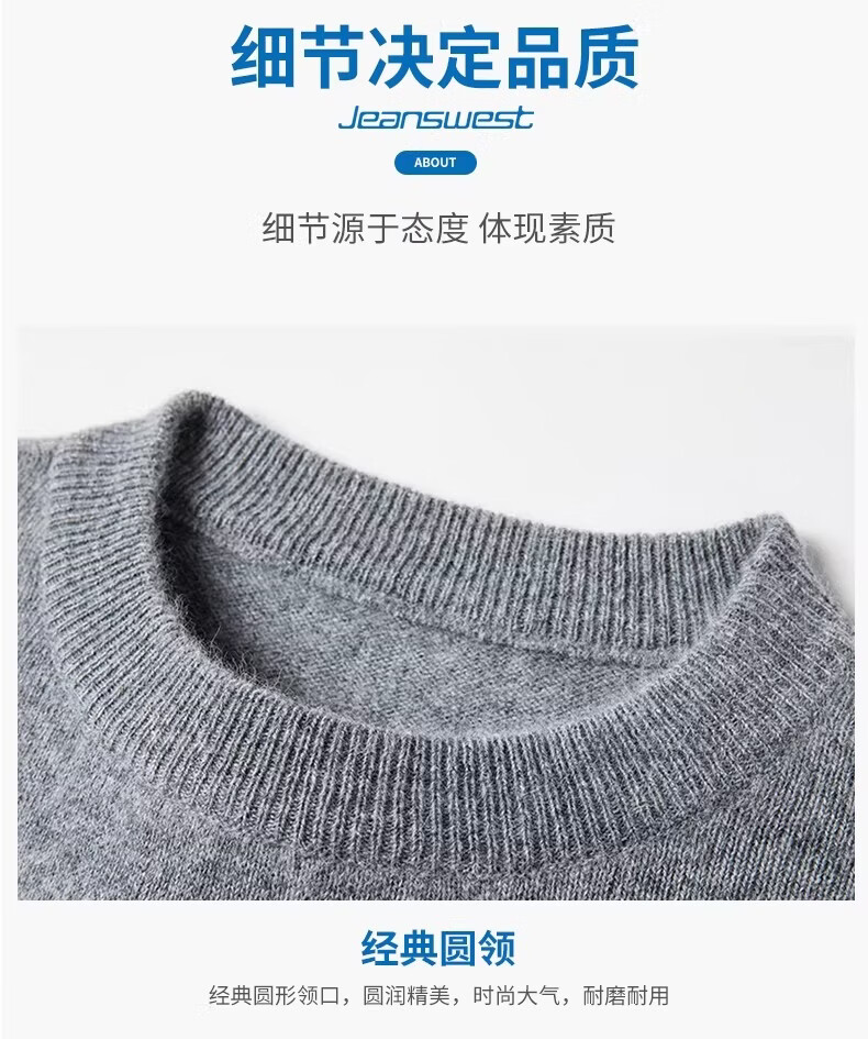 真维斯(Jeanswest)冬季男士羊毛衫加厚内搭打底针织衫圆领纯色打底宽松毛衣男 精纺灰圆领 【纯棉保暖】 2XL 【建议160-180斤】