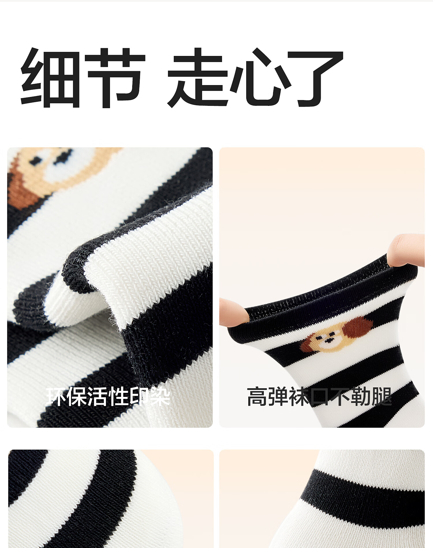 贝比婴儿地板袜子冬季加绒保暖宝宝防滑袜儿童100%纯棉袜室内学步袜子 条纹小狗 加厚毛圈 防滑款【礼盒装】 4双 1-2岁 适合脚长12-14cm(鞋码16-20)