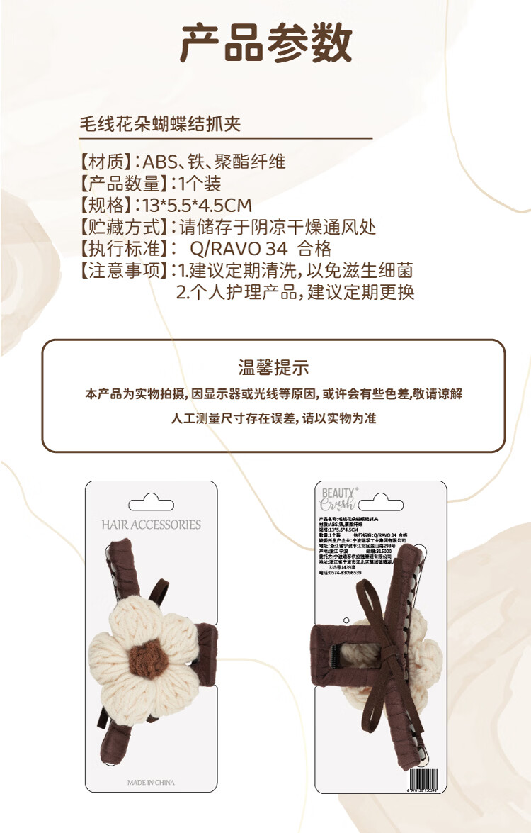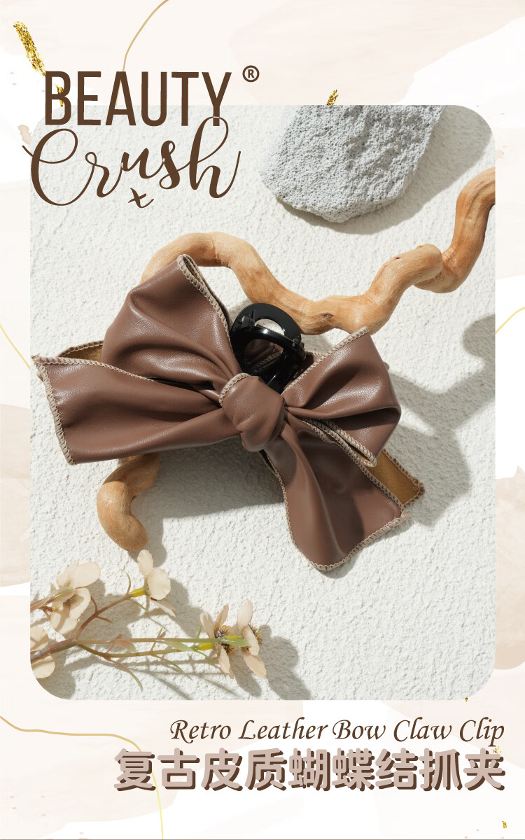 屈臣氏BEAUTYCRUSH抓夹 复古皮质蝴蝶结抓夹 1件