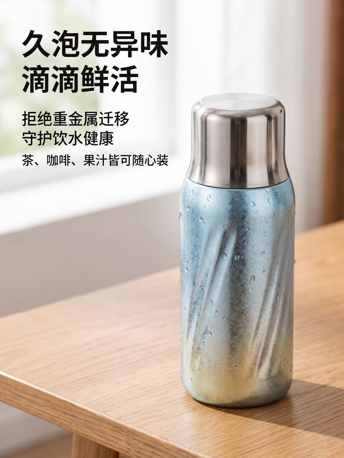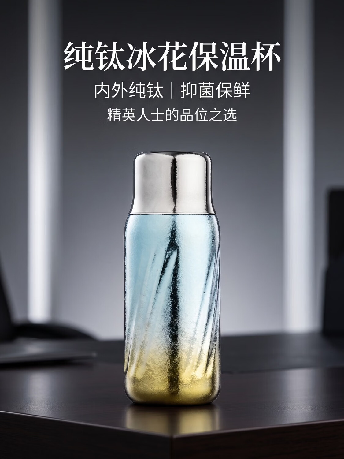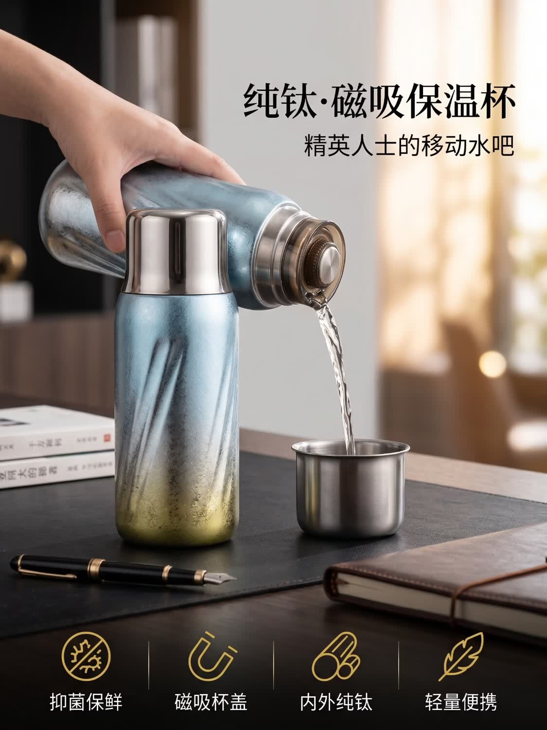 TIPURE纯钛保温杯水杯泡茶杯焖烧杯茶水分离磁吸杯盖便携男女实用礼物 渐变粉 350ml