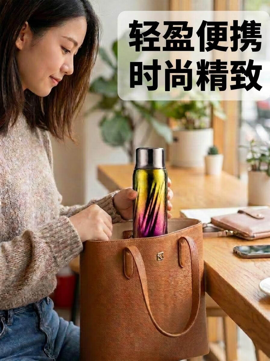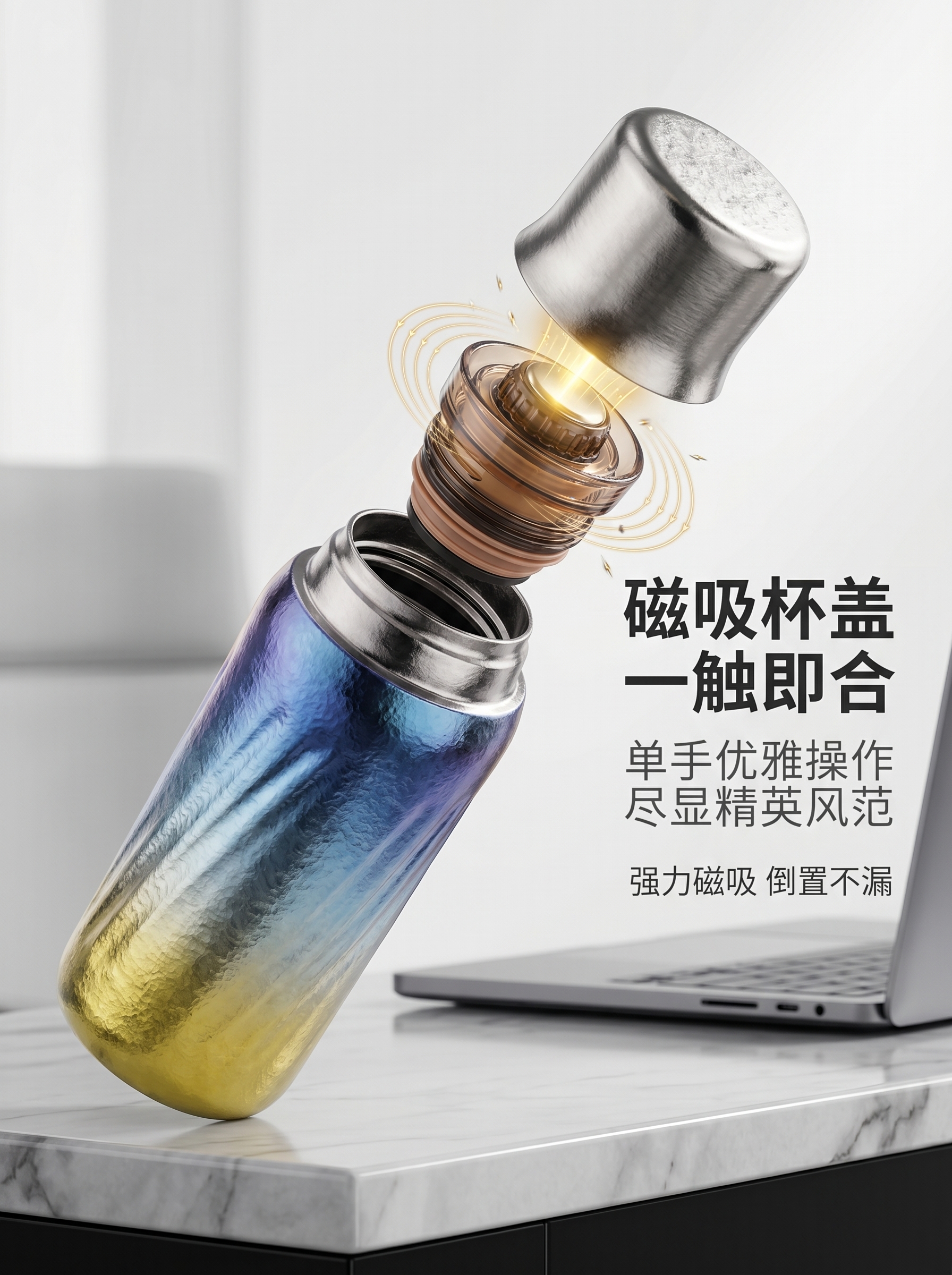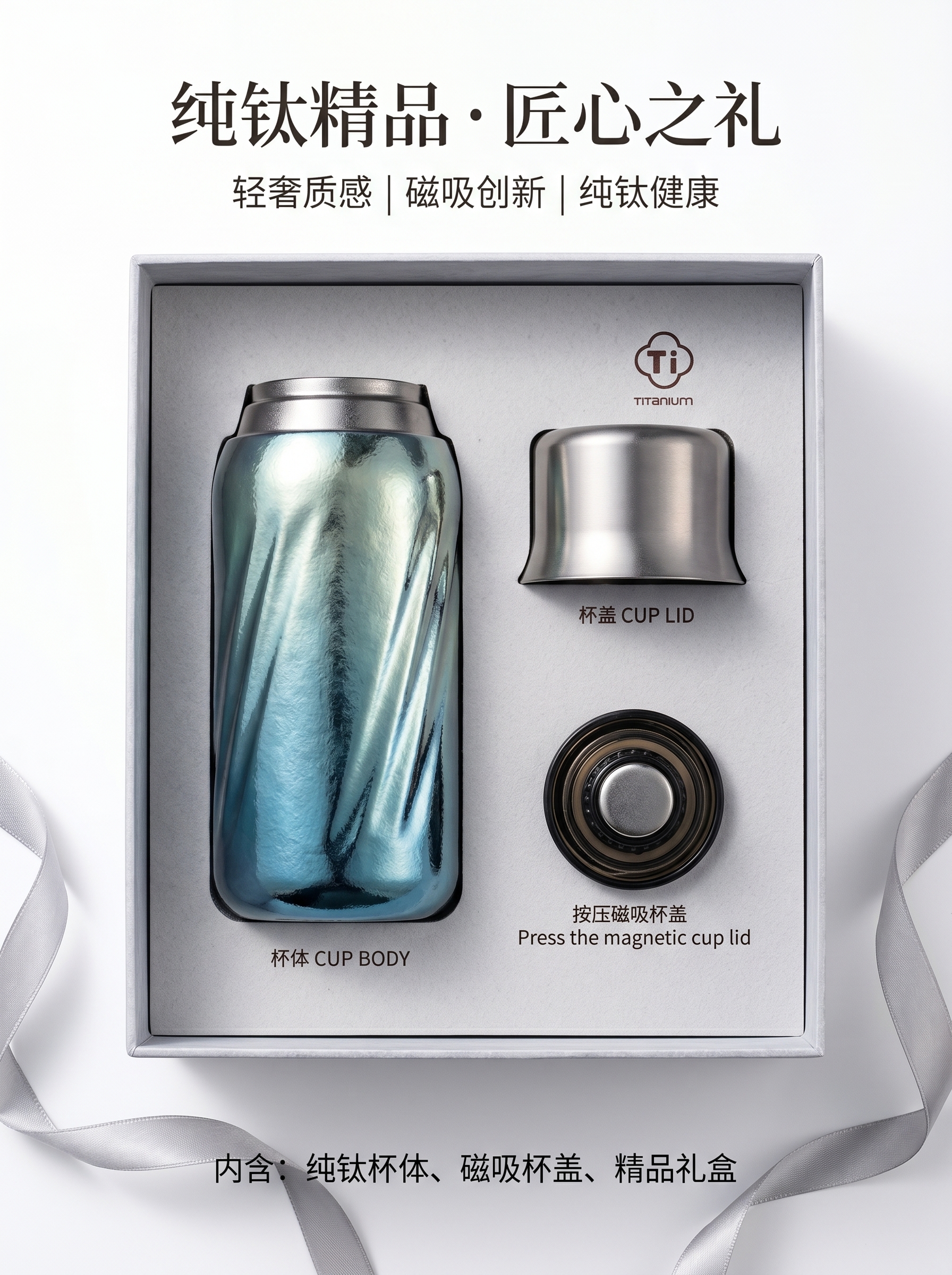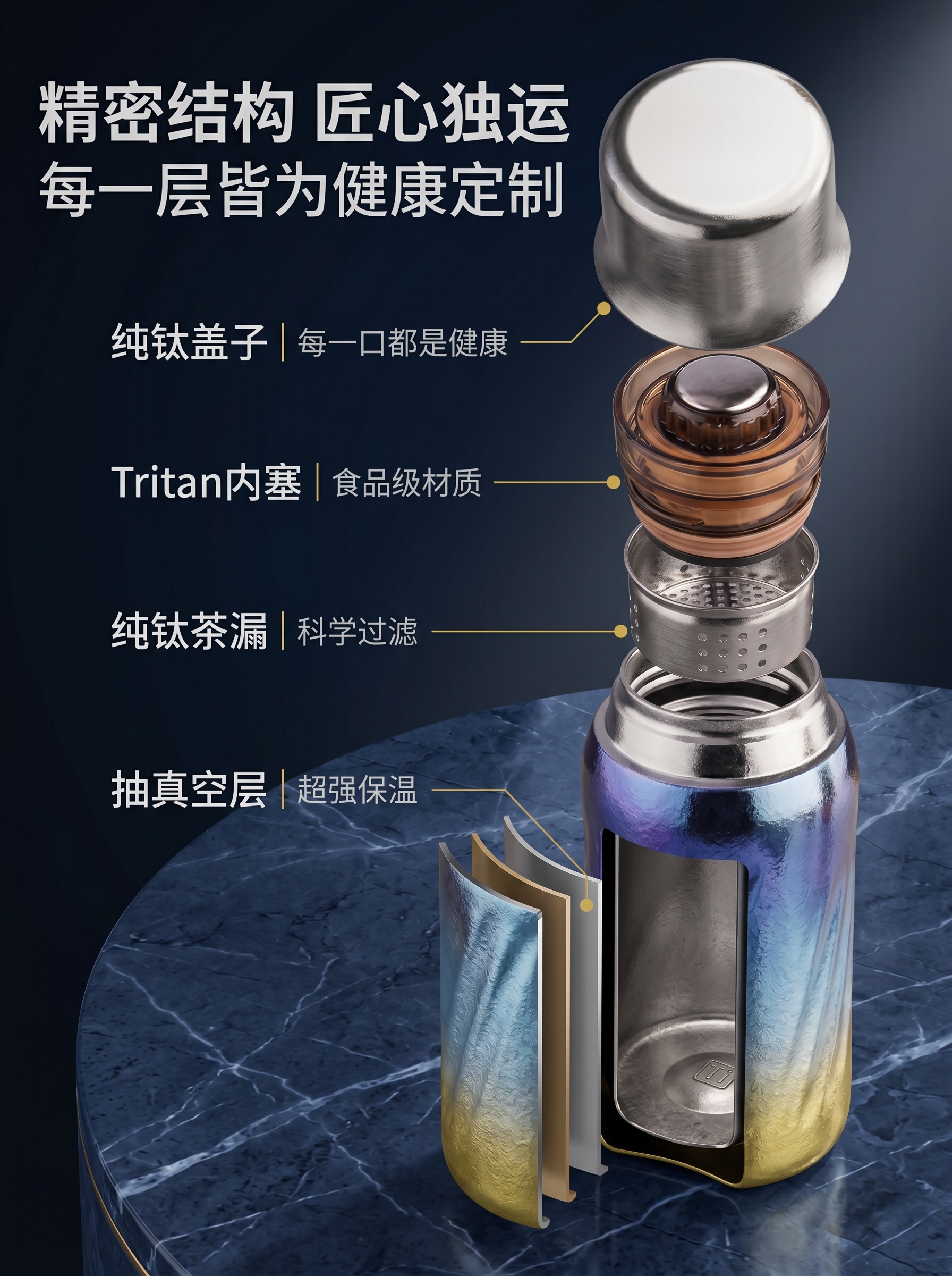 TIPURE纯钛保温杯水杯泡茶杯焖烧杯茶水分离磁吸杯盖便携男女实用礼物 渐变粉 350ml
