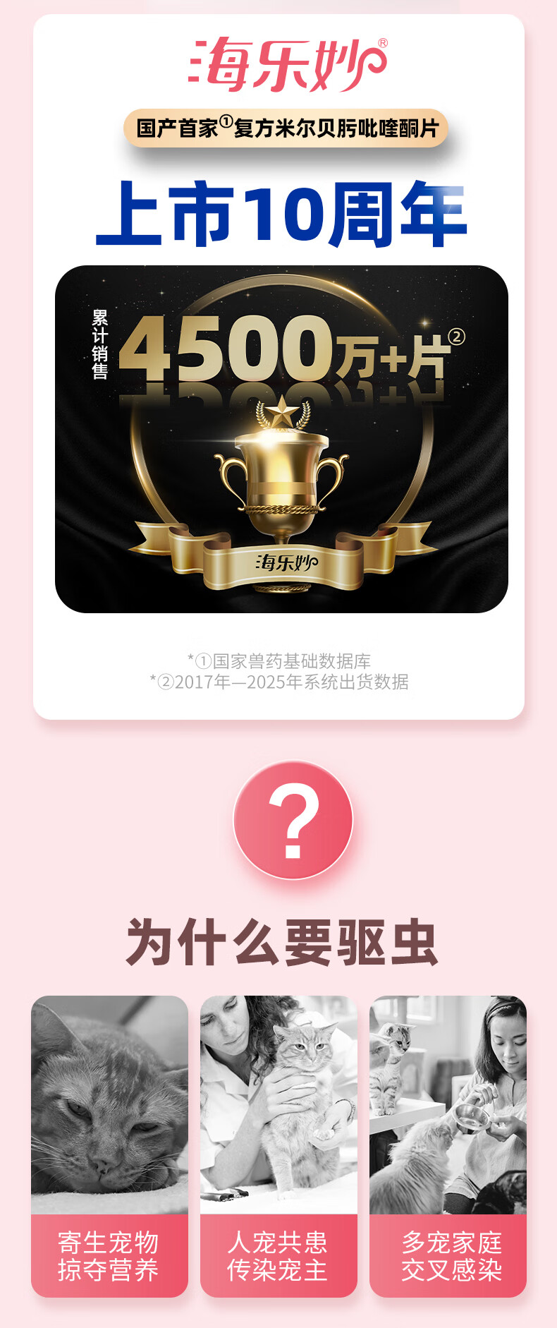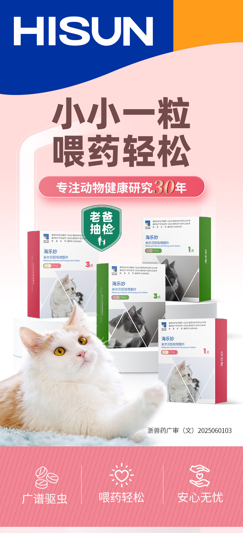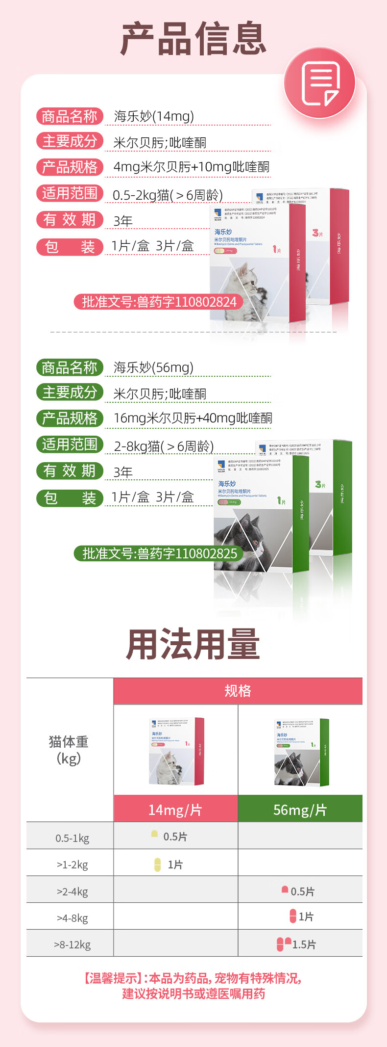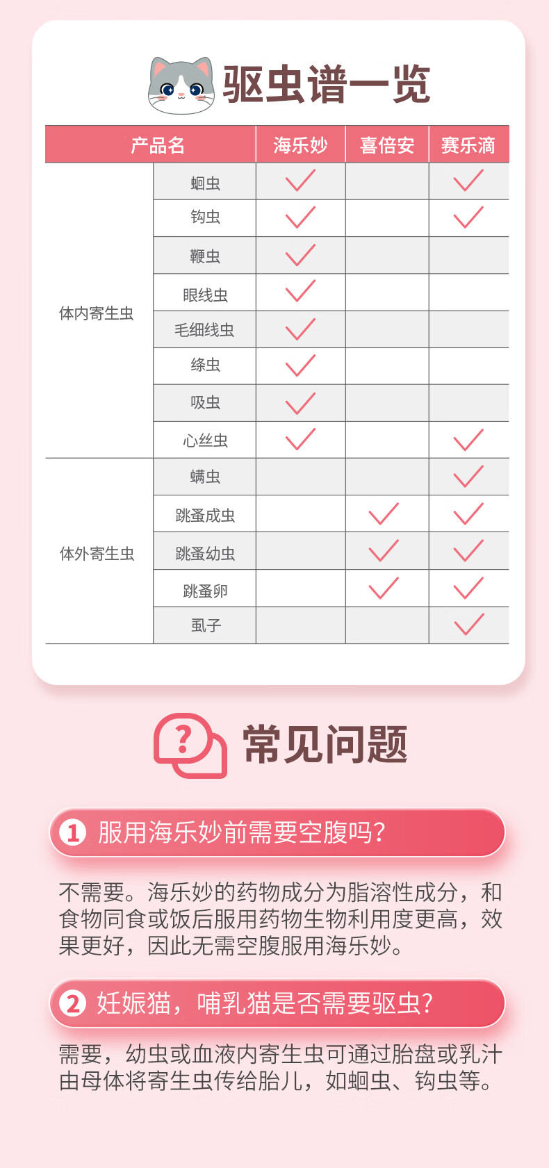 海乐妙猫咪体内驱虫药2-8kg(三片装)成猫打虫药防治寄生虫猫用