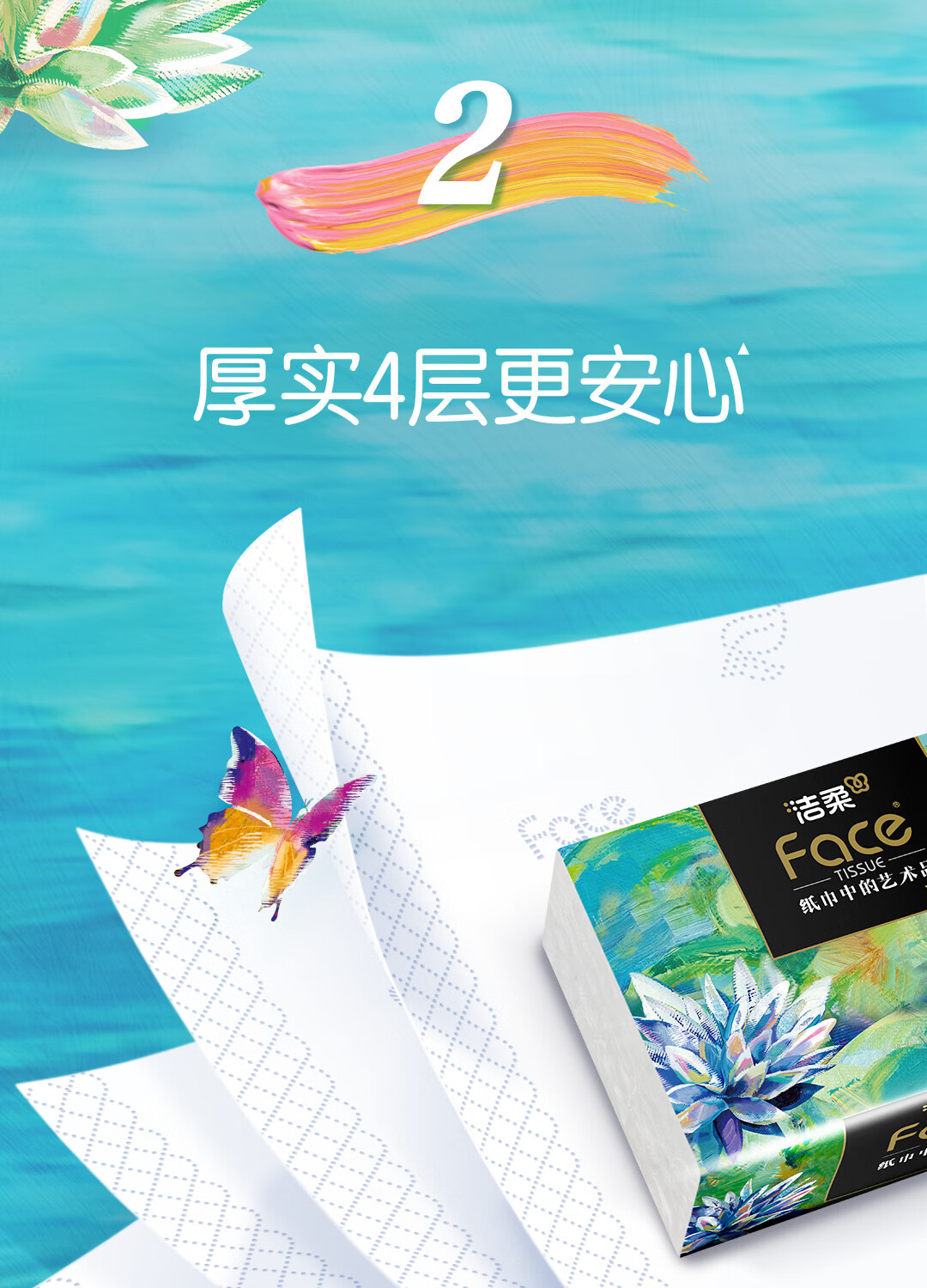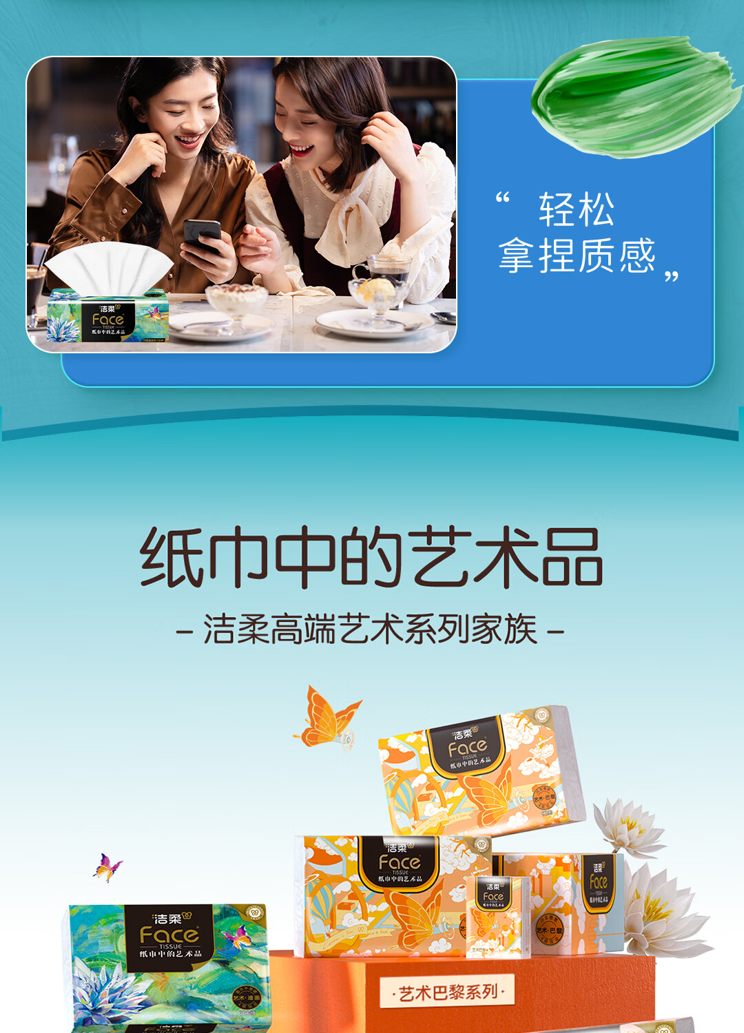 洁柔抽纸 艺术油画Face加厚4层80抽*10包 面巾纸 柔软亲肤 大气典雅