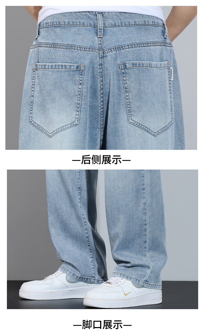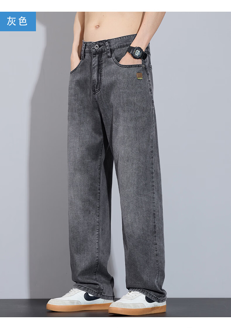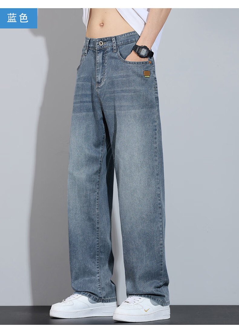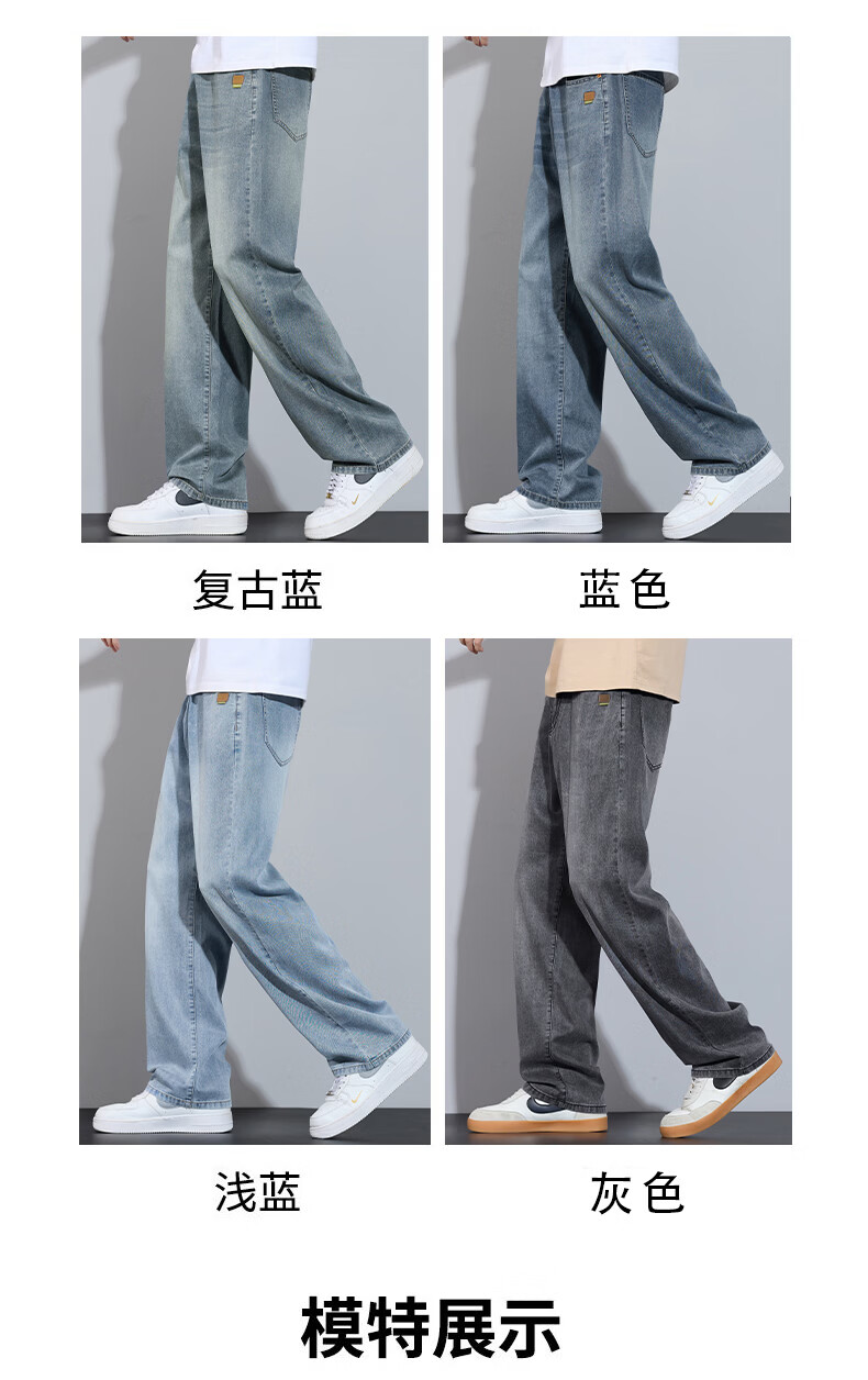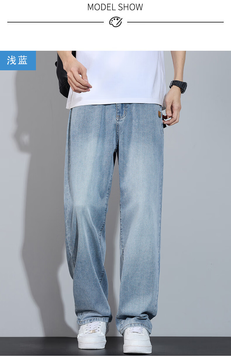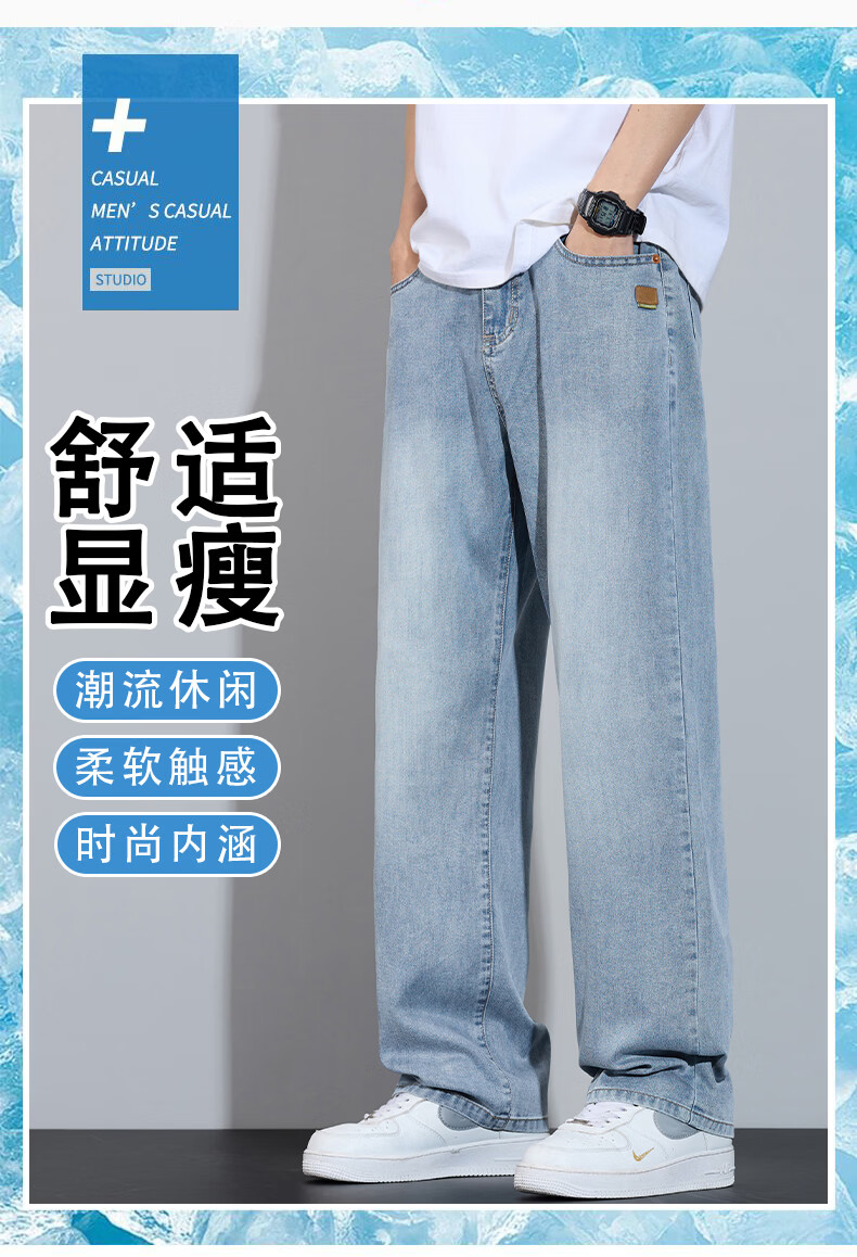 真维斯简约牛仔裤男士春秋高端宽松直筒天丝莱赛尔阔腿裤子男款 浅蓝 28