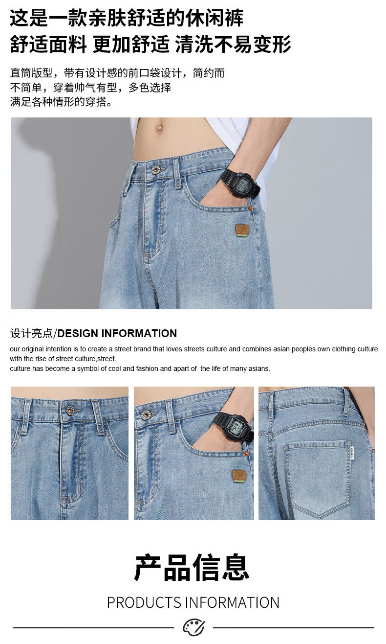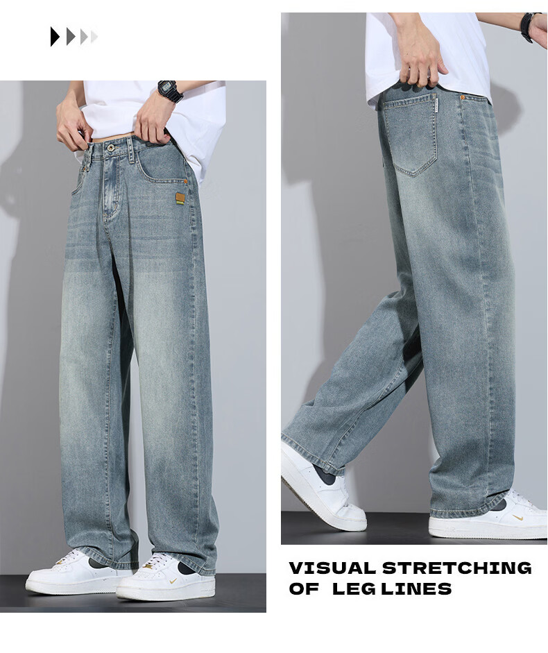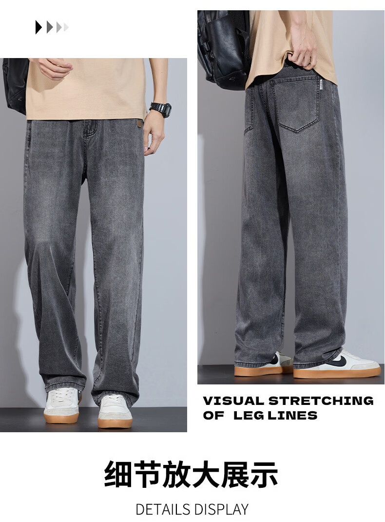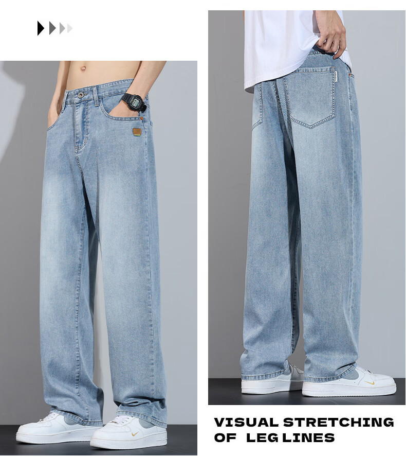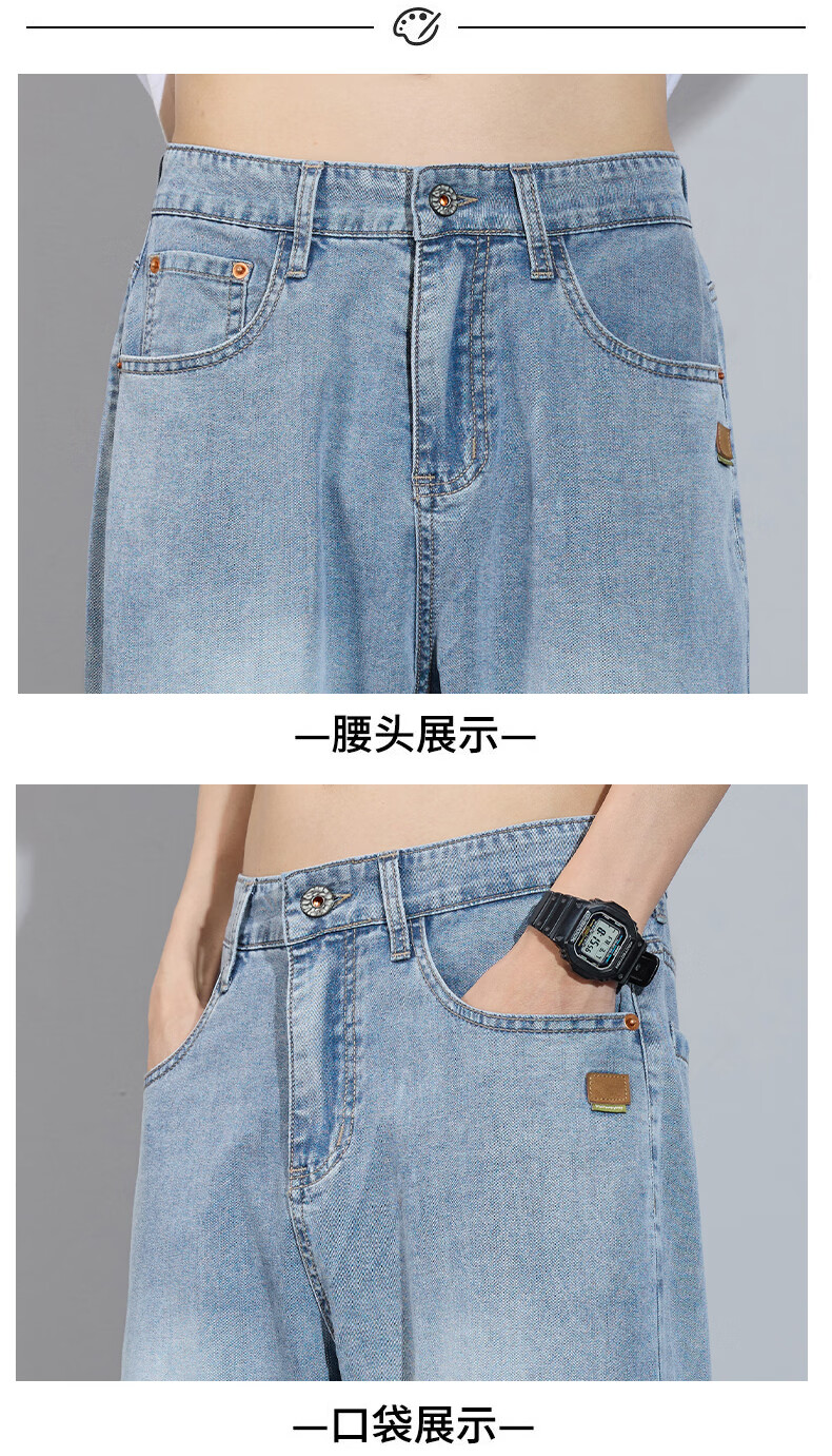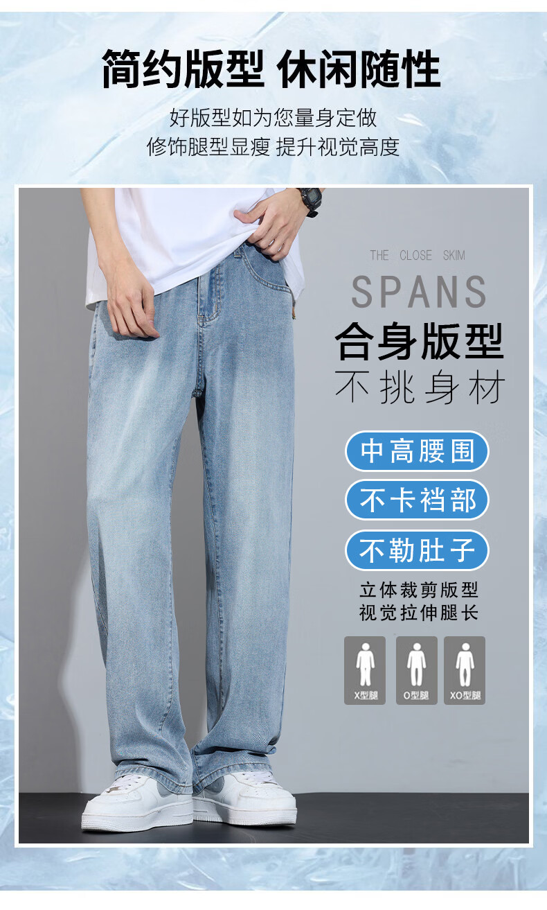 真维斯简约牛仔裤男士春秋高端宽松直筒天丝莱赛尔阔腿裤子男款 浅蓝 28