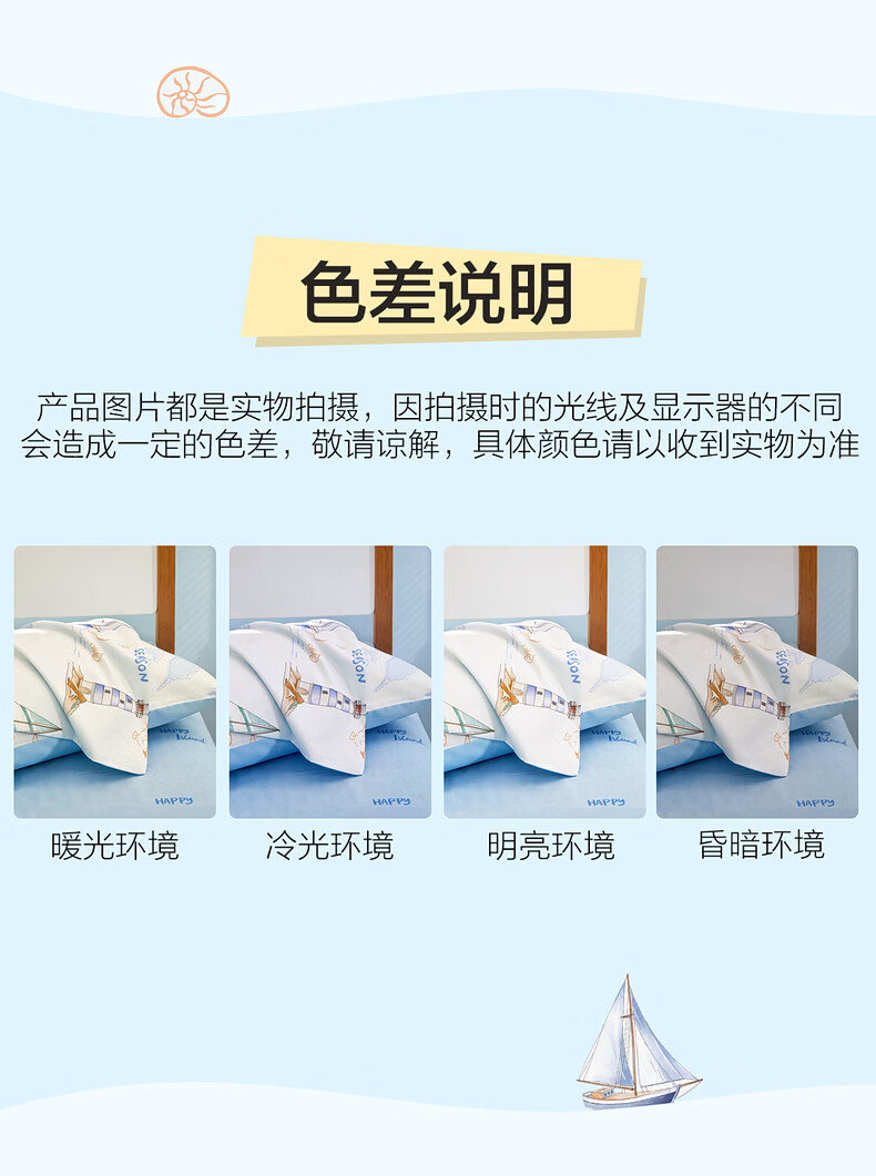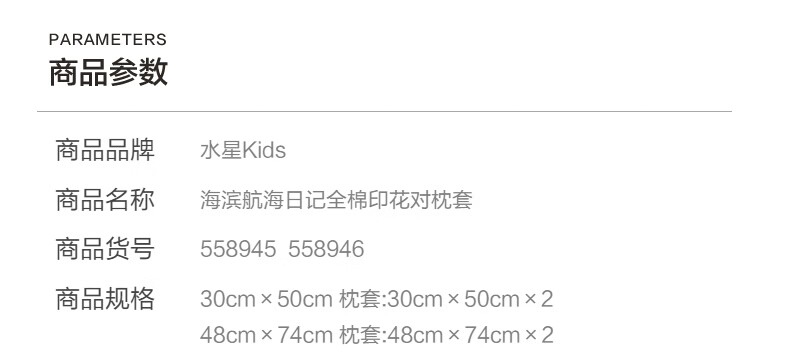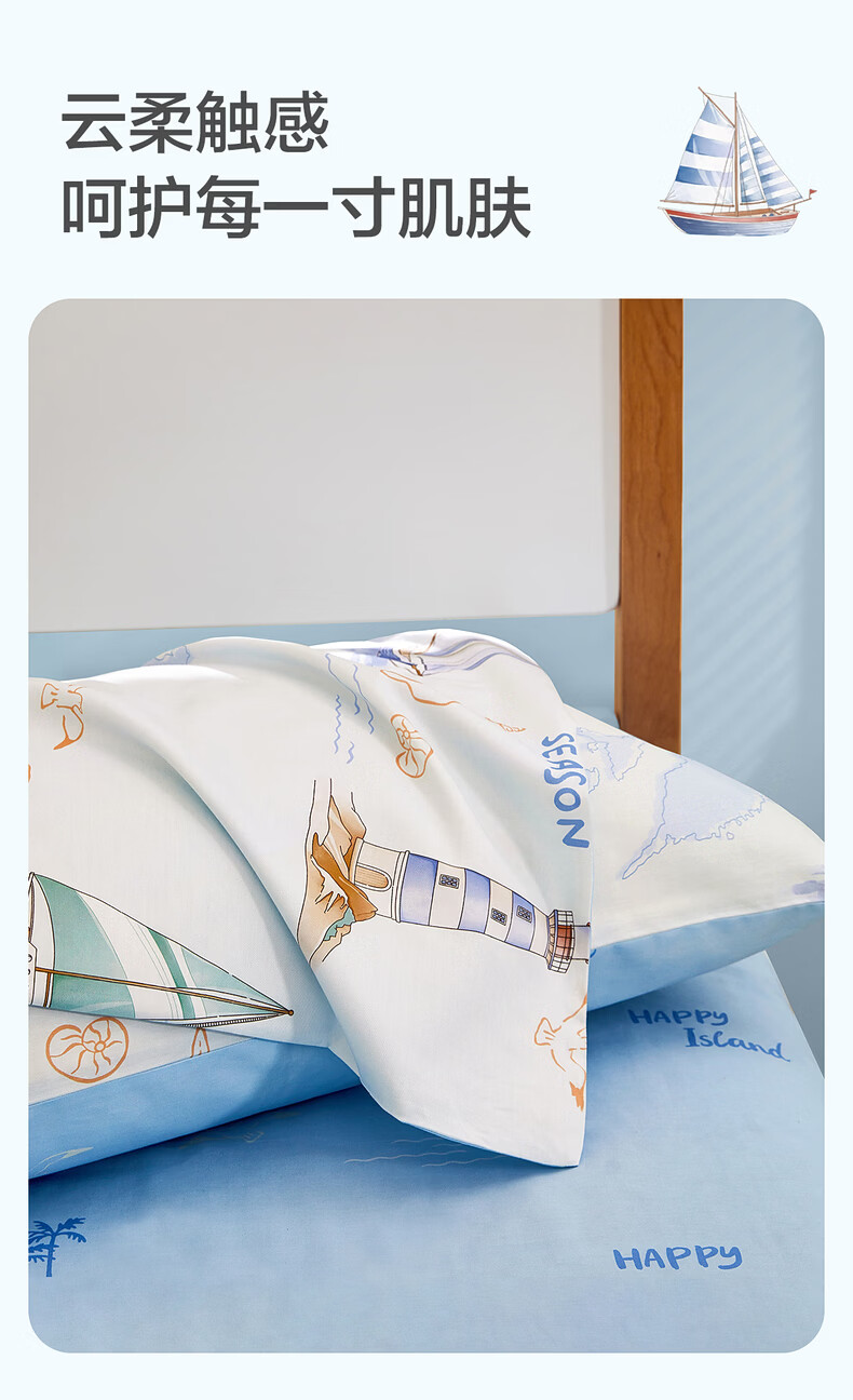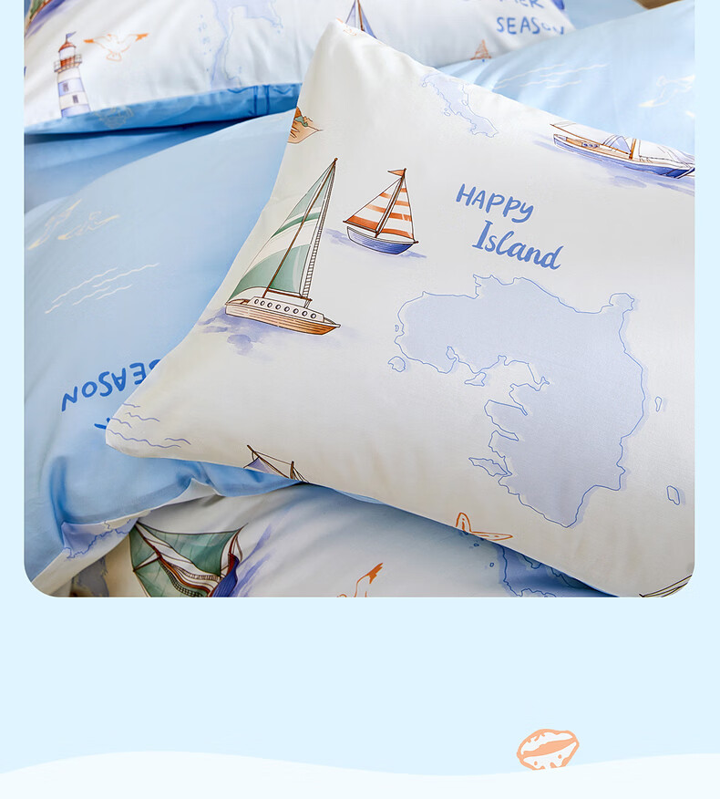 水星家纺海滨航海日记全棉印花对枕套 海滨航海日记全棉印花对枕套 一对 30cm*50cm