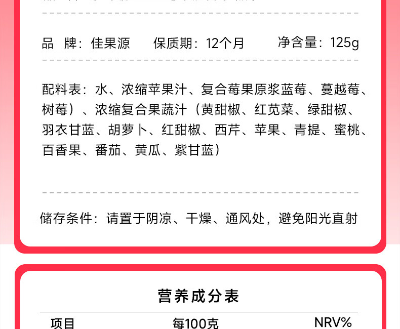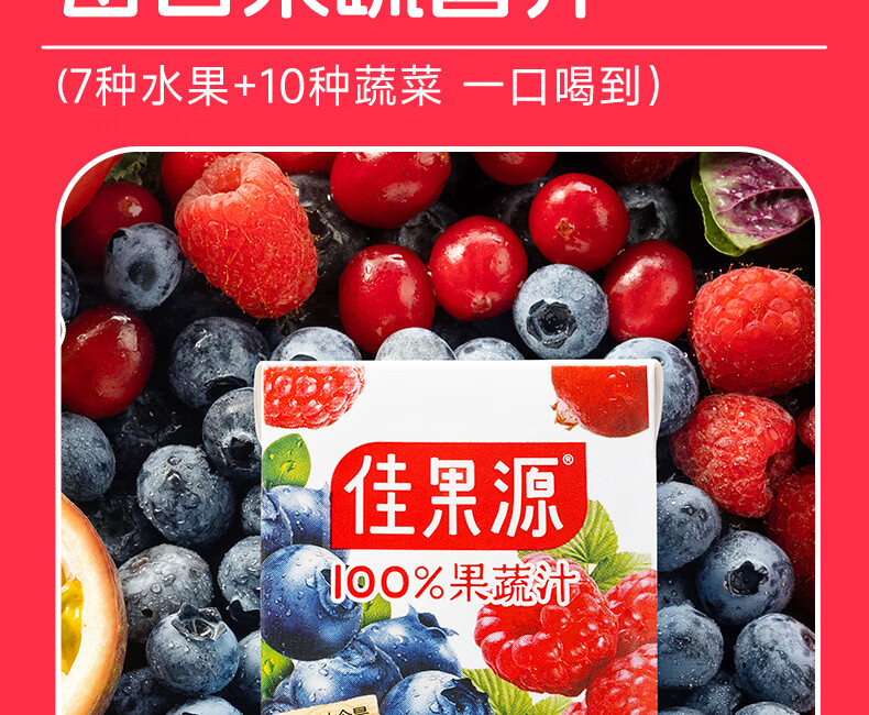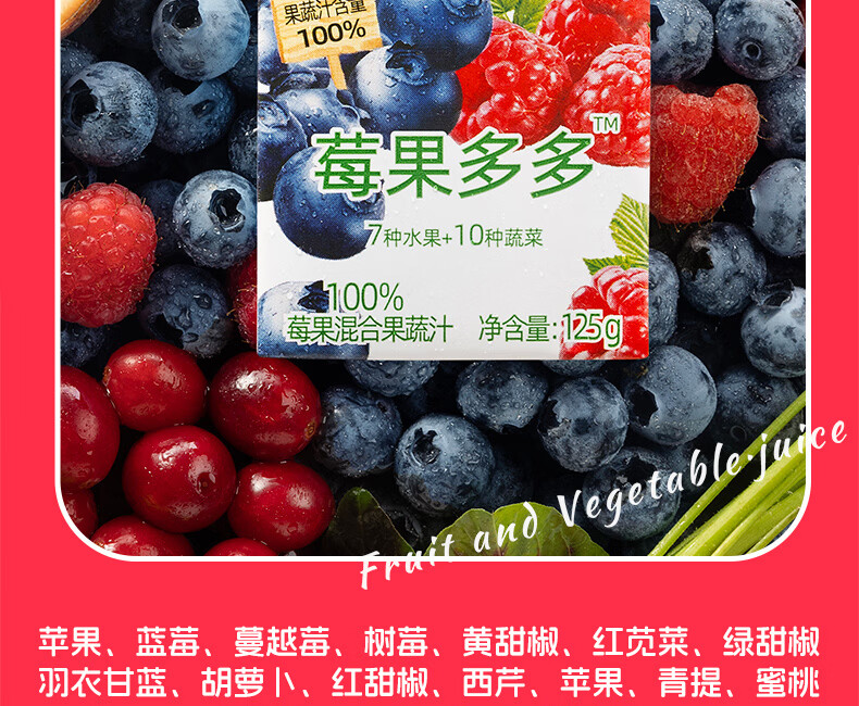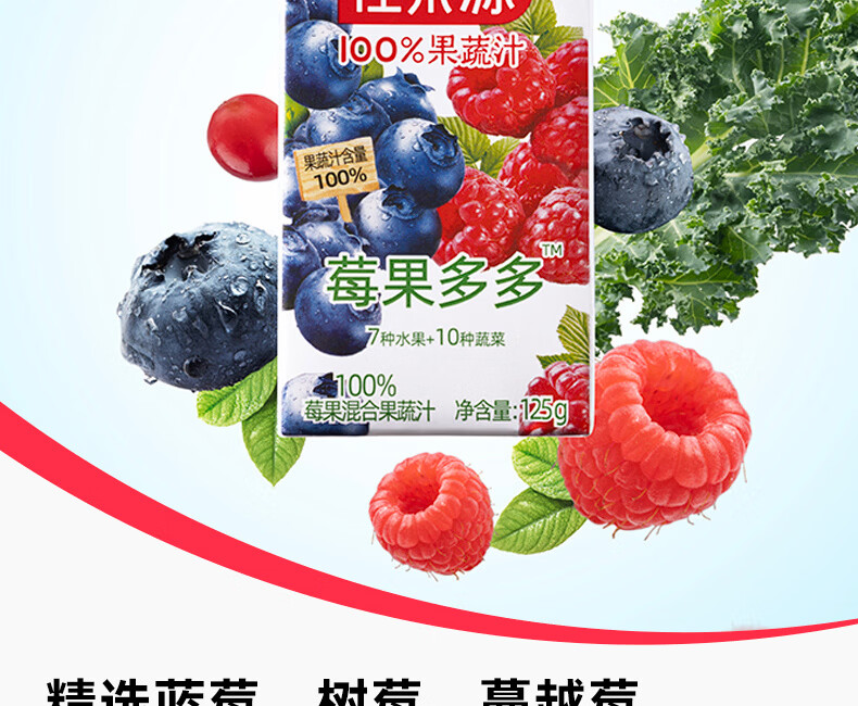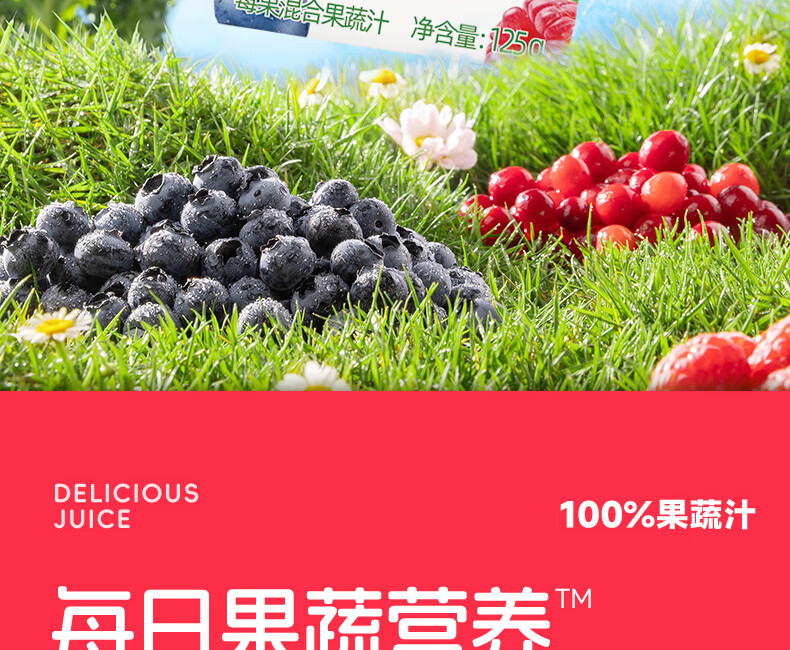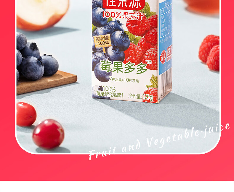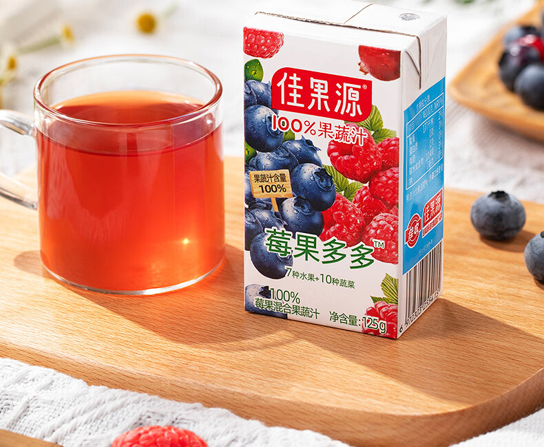 佳果源【佳农旗下】100%混合果蔬汁125g*36盒整箱 一口喝到17种果蔬营养 莓果多多混合果蔬汁125g*36盒