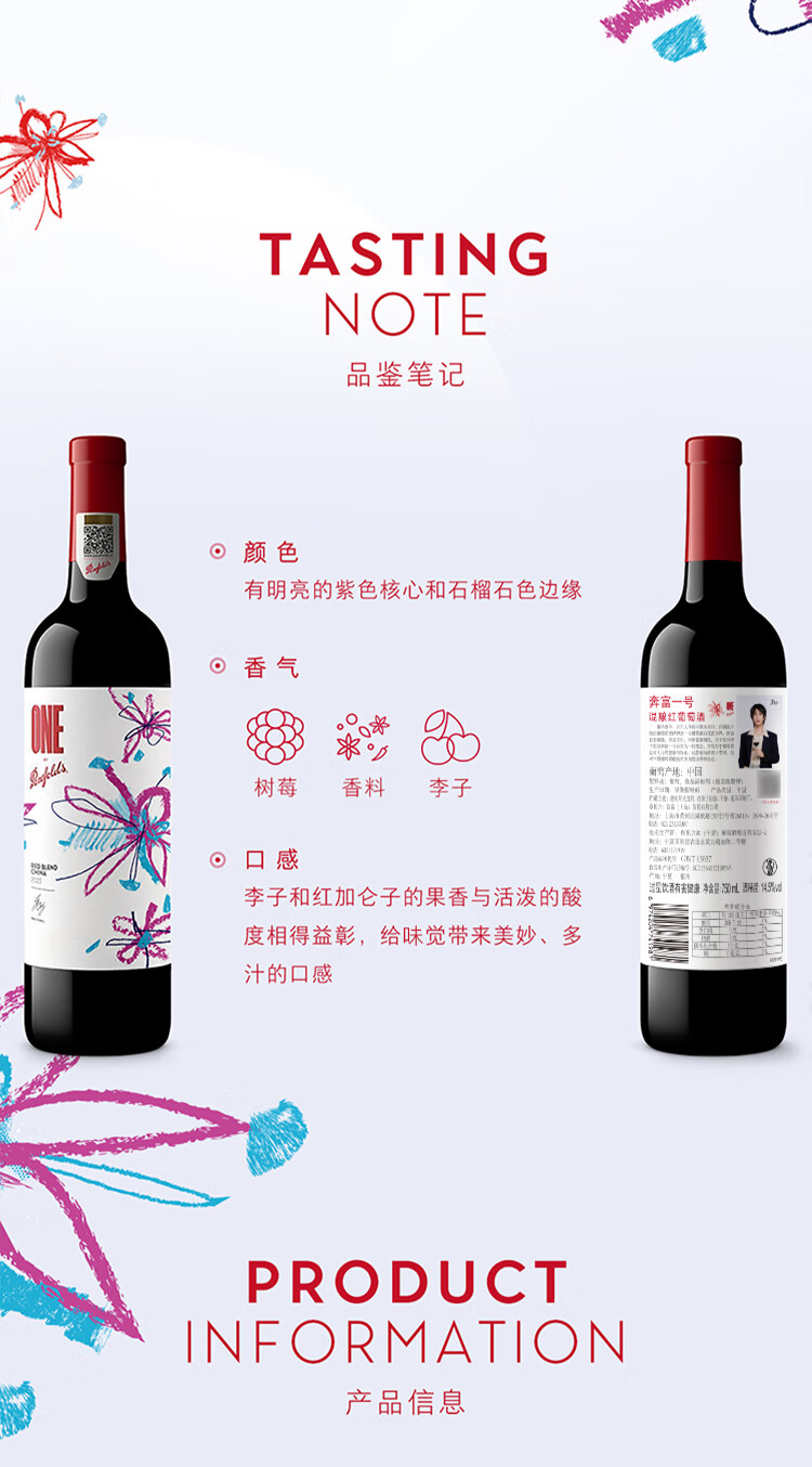 Penfolds【奔富官旗】奔富一号 x 华晨宇 花花世界联名款 干红葡萄酒750ml 双支蓝色