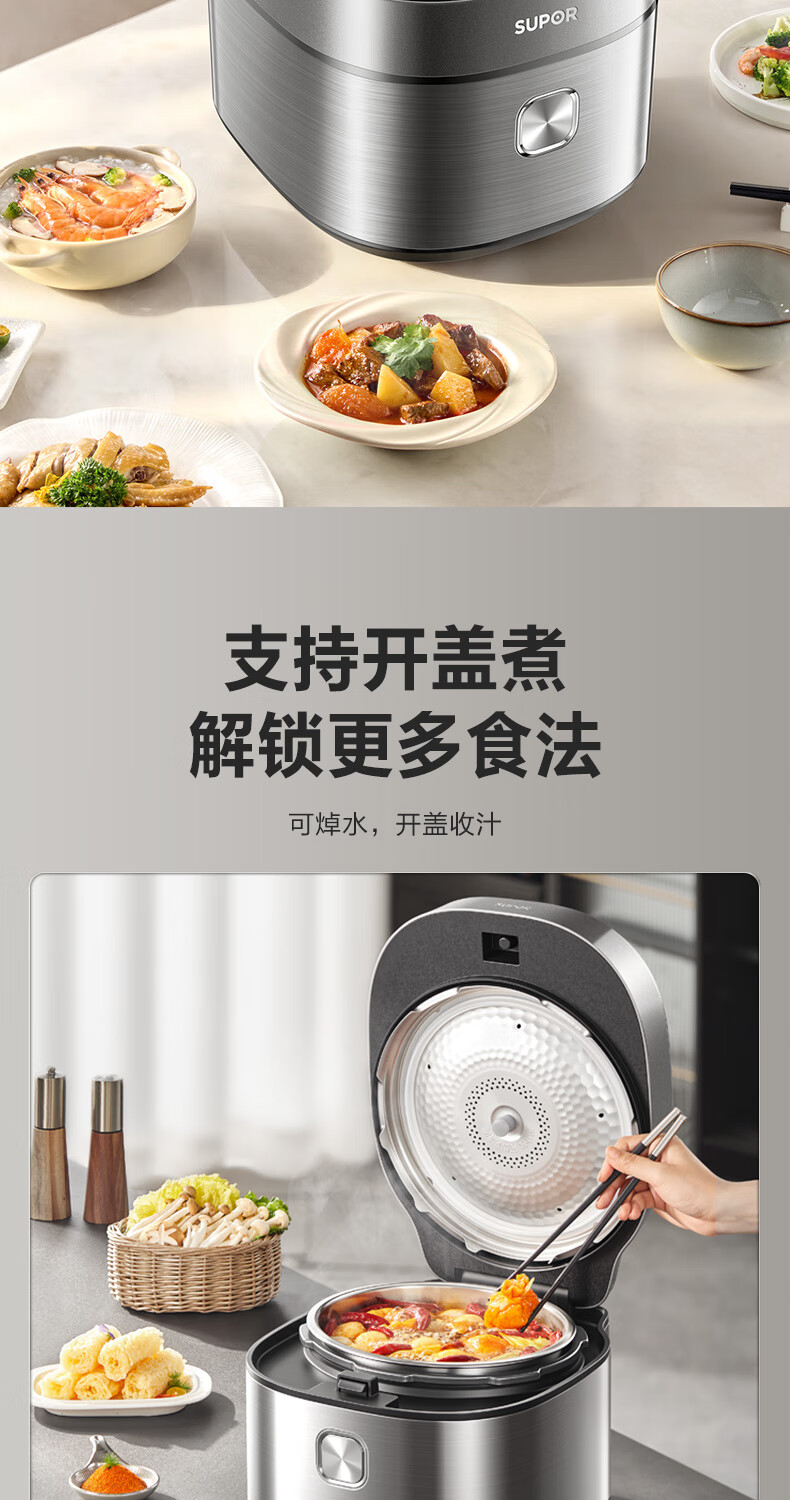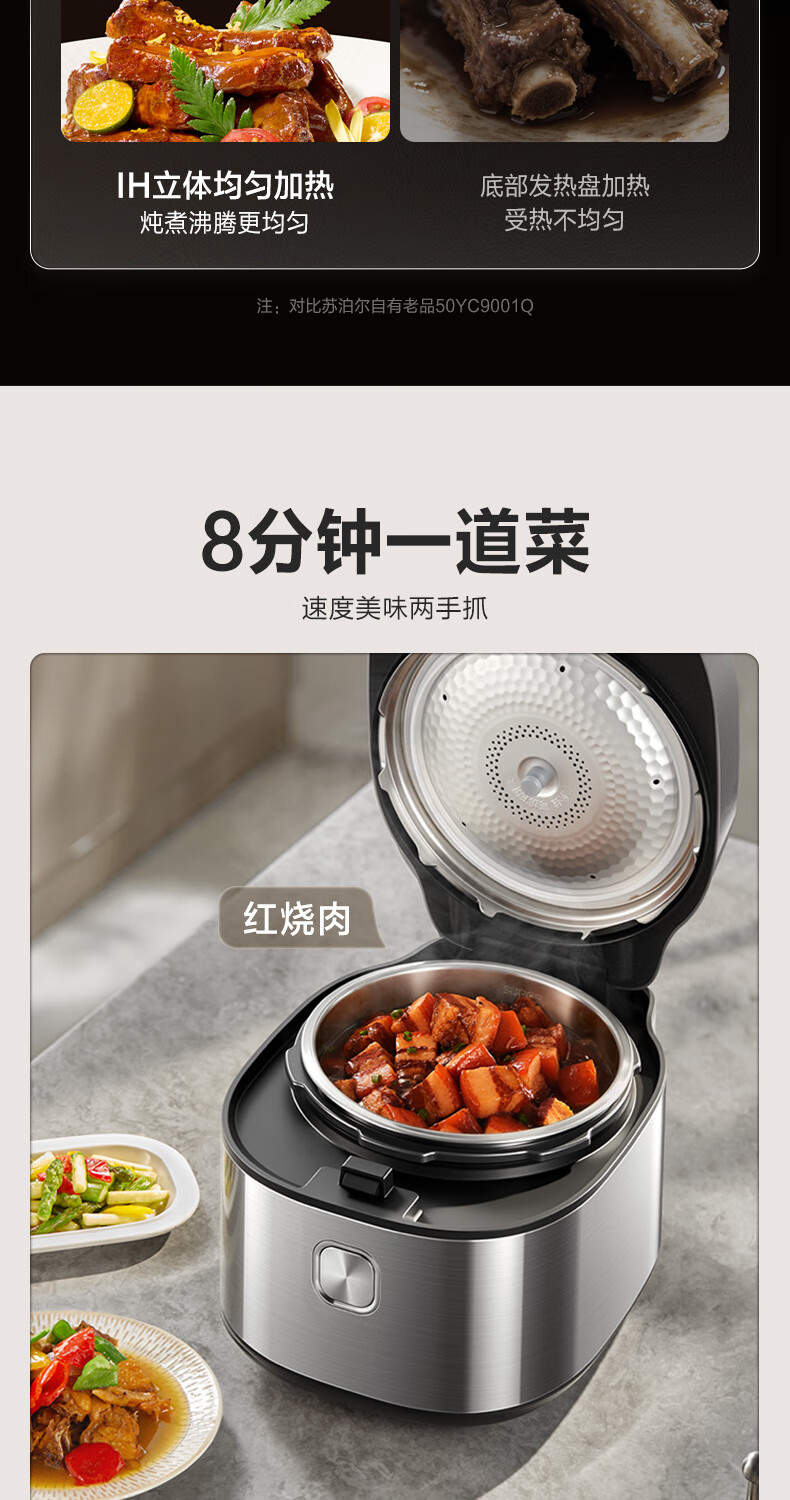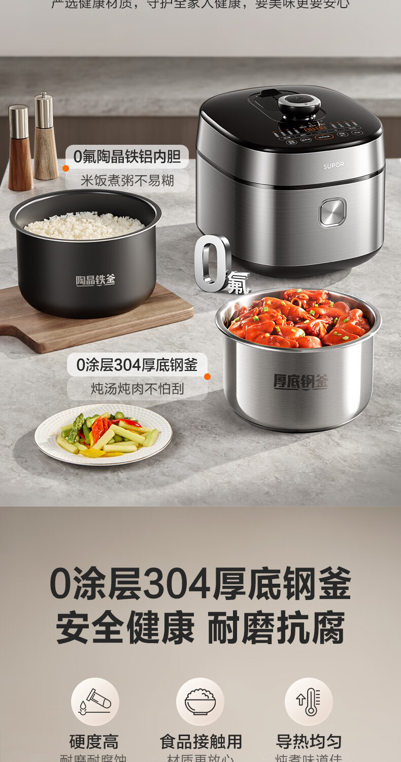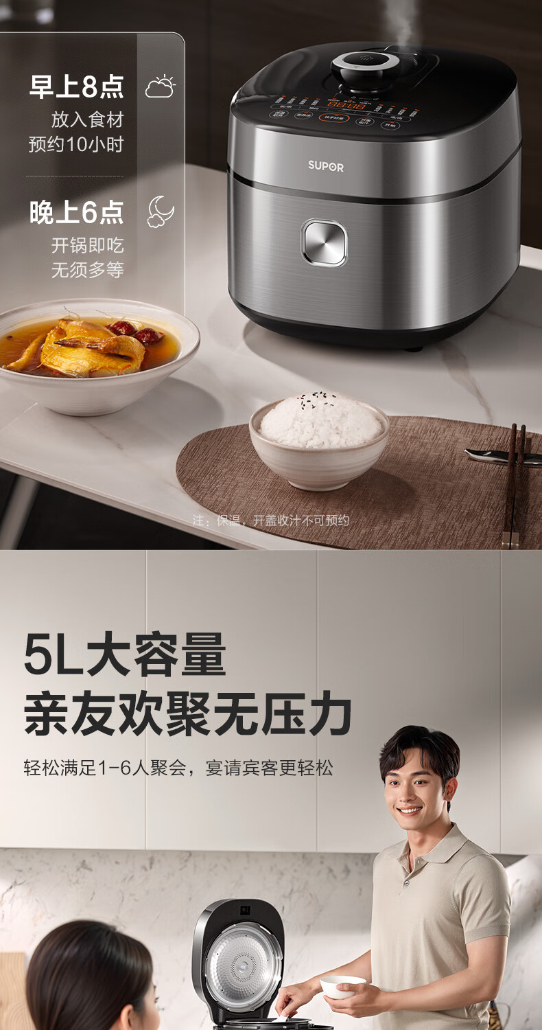 苏泊尔(SUPOR)【厨房好年货】IH电压力锅5L智能预约8分钟快速菜0涂层0氟电饭煲猛火高压锅4-6人家用 SY-50FH5996