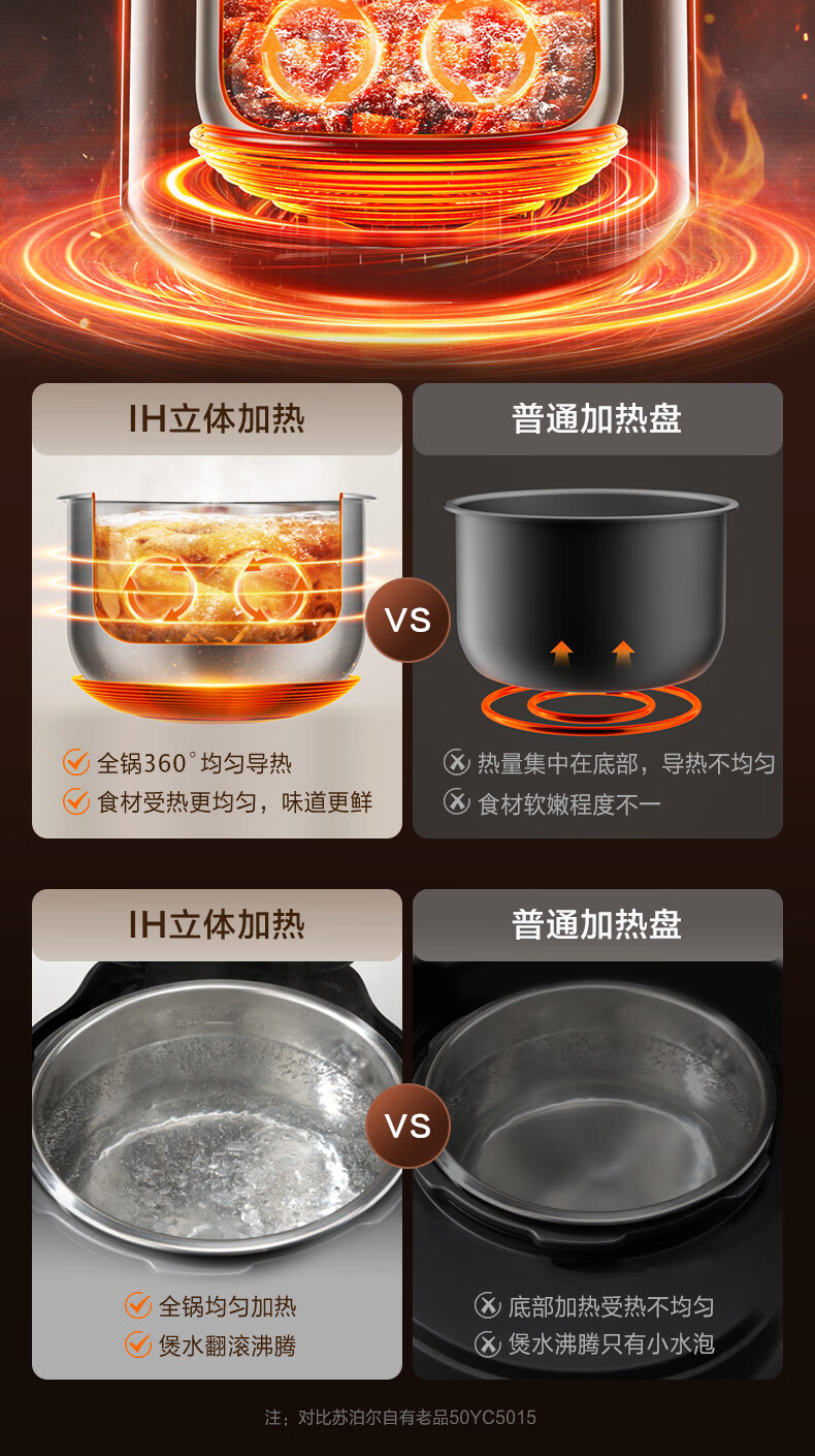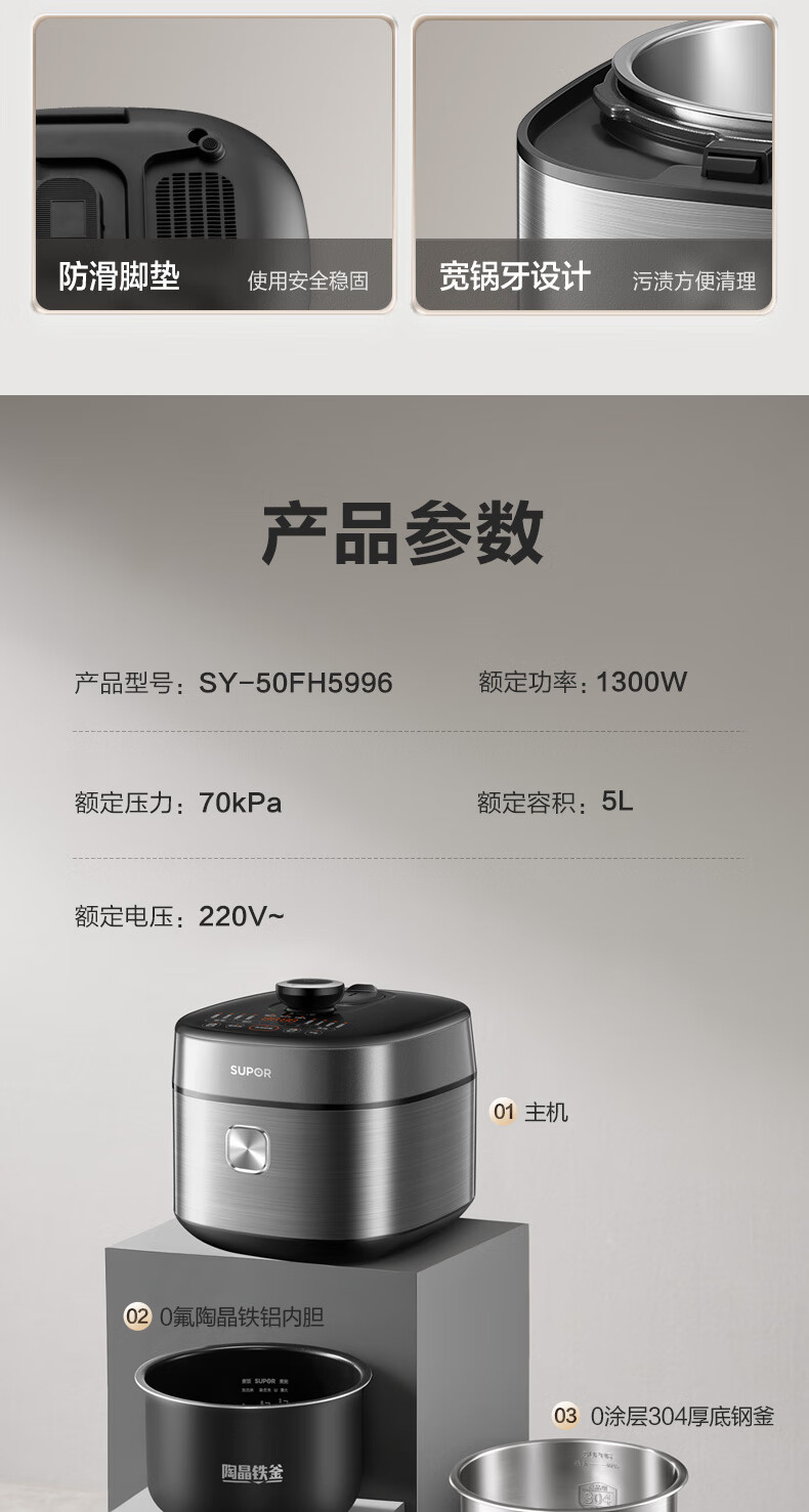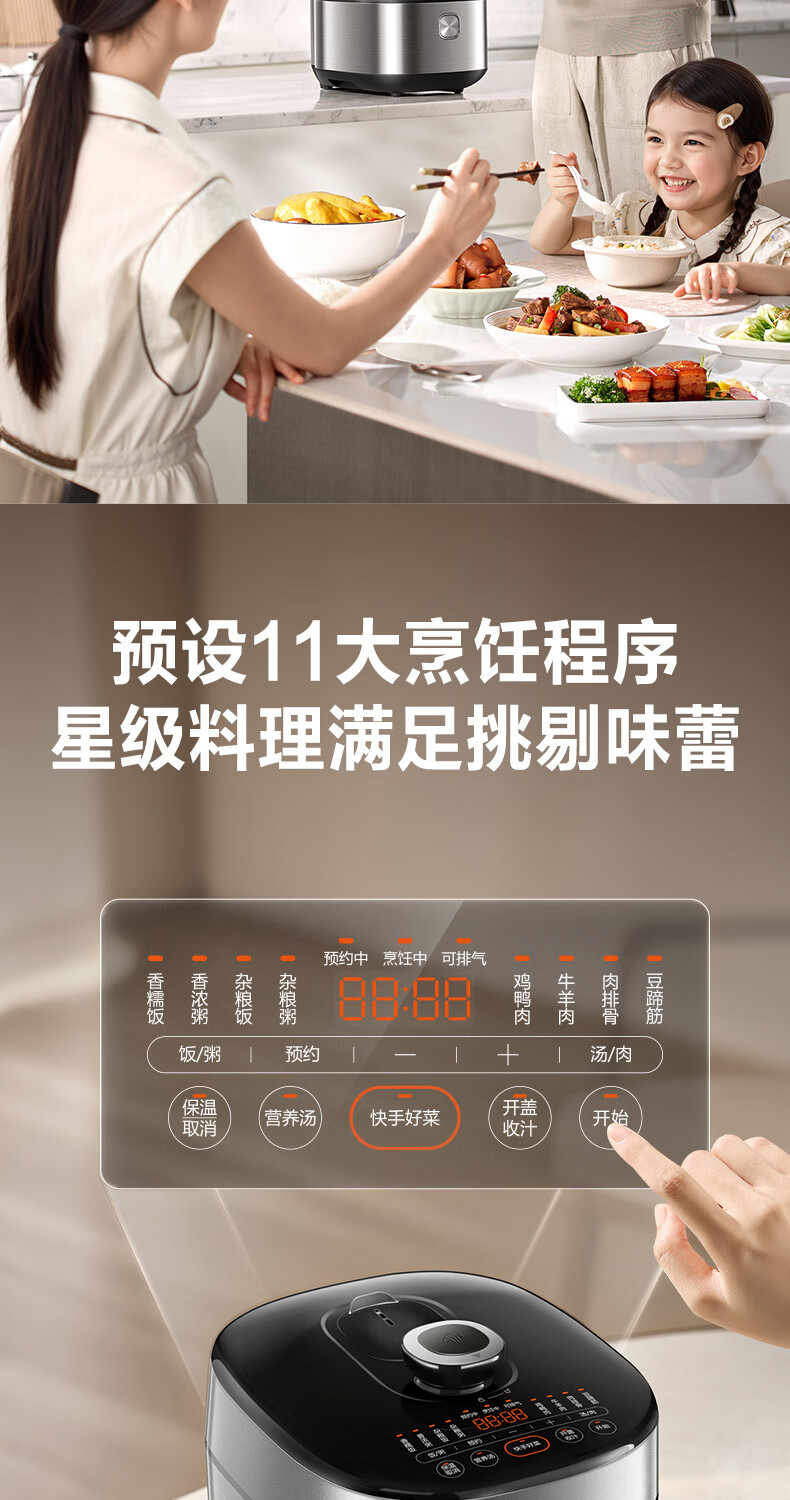 苏泊尔(SUPOR)【厨房好年货】IH电压力锅5L智能预约8分钟快速菜0涂层0氟电饭煲猛火高压锅4-6人家用 SY-50FH5996