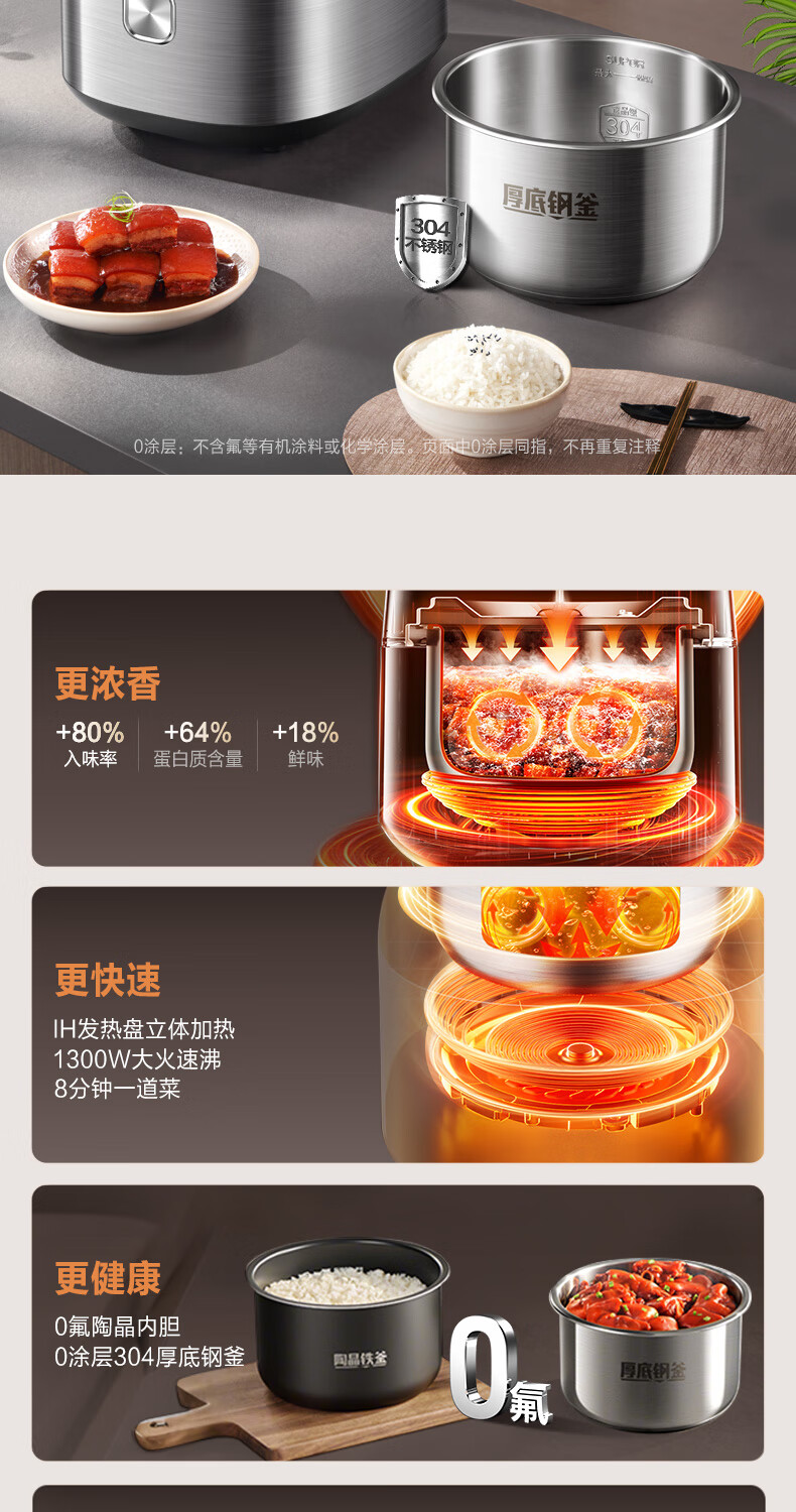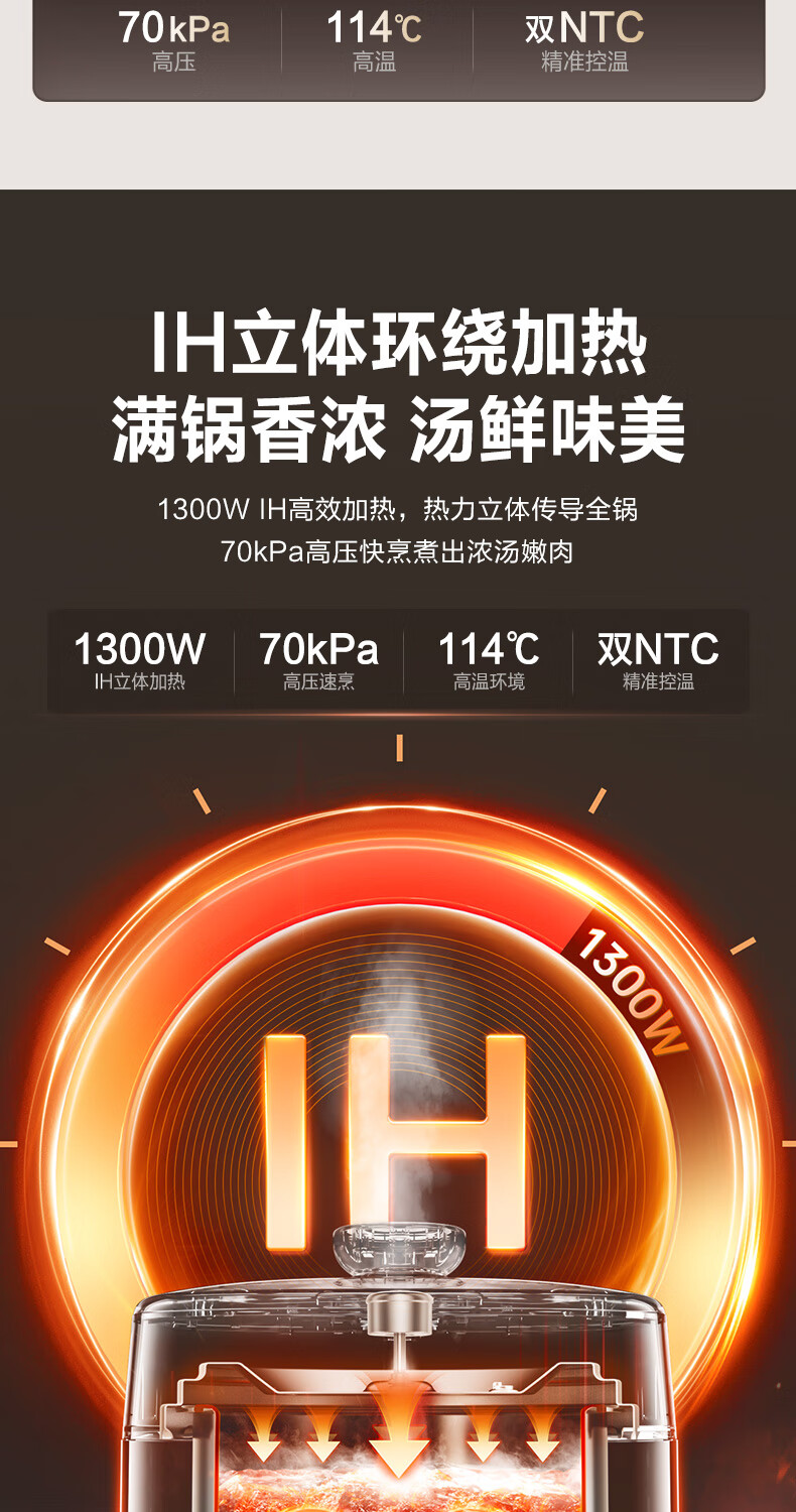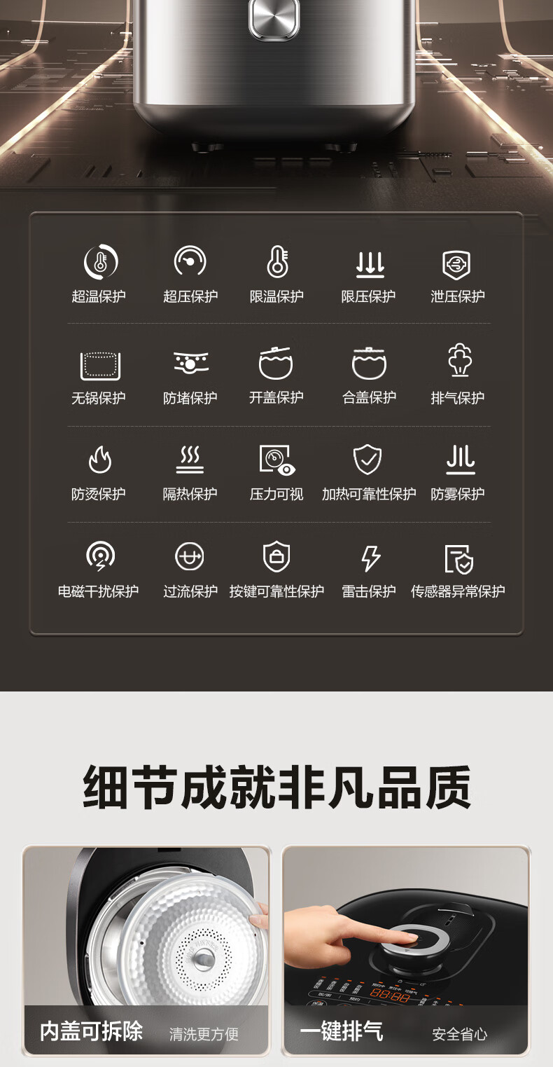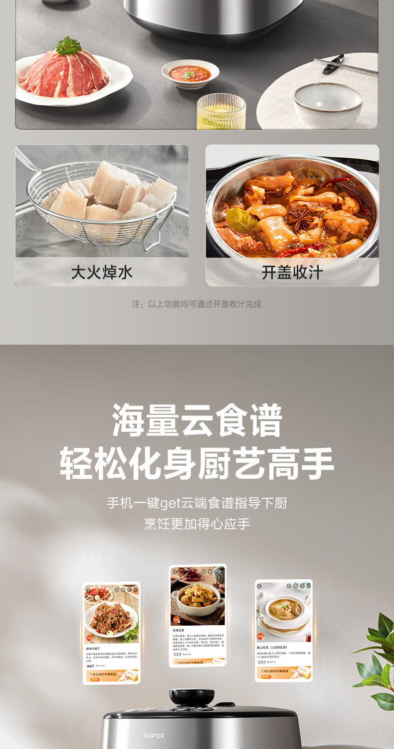 苏泊尔(SUPOR)【厨房好年货】IH电压力锅5L智能预约8分钟快速菜0涂层0氟电饭煲猛火高压锅4-6人家用 SY-50FH5996