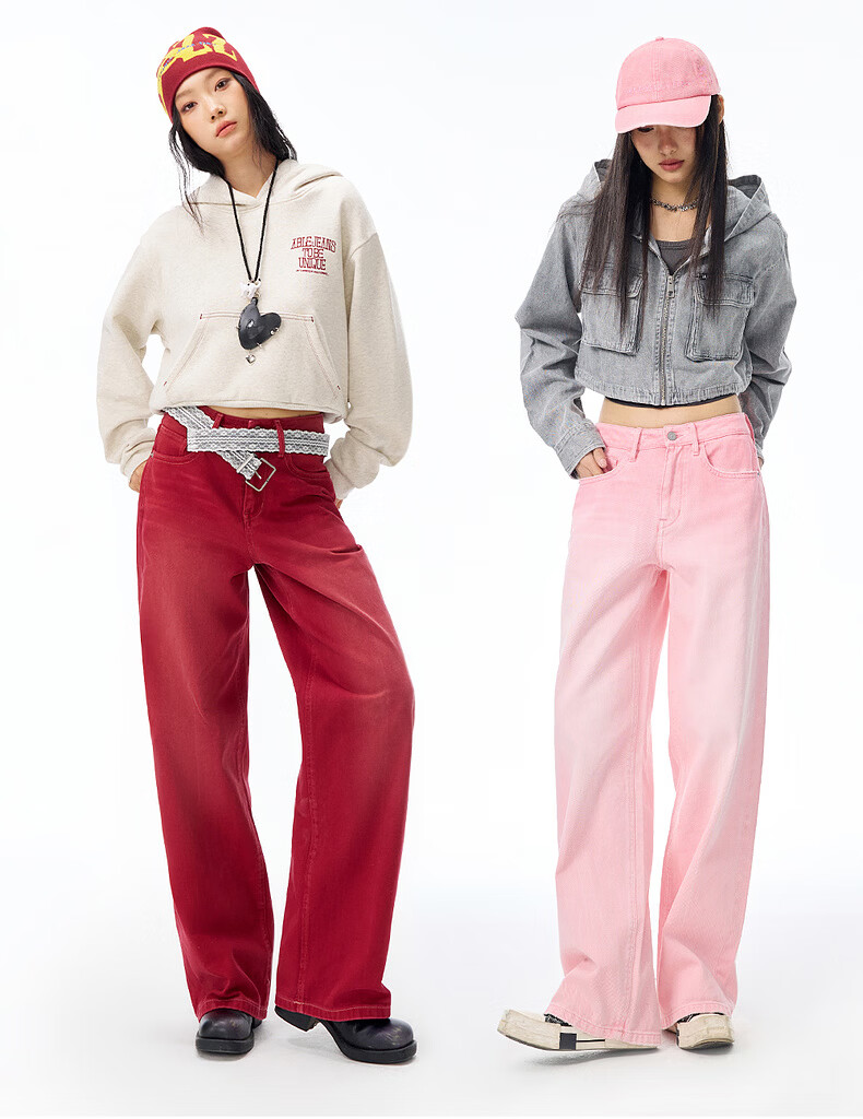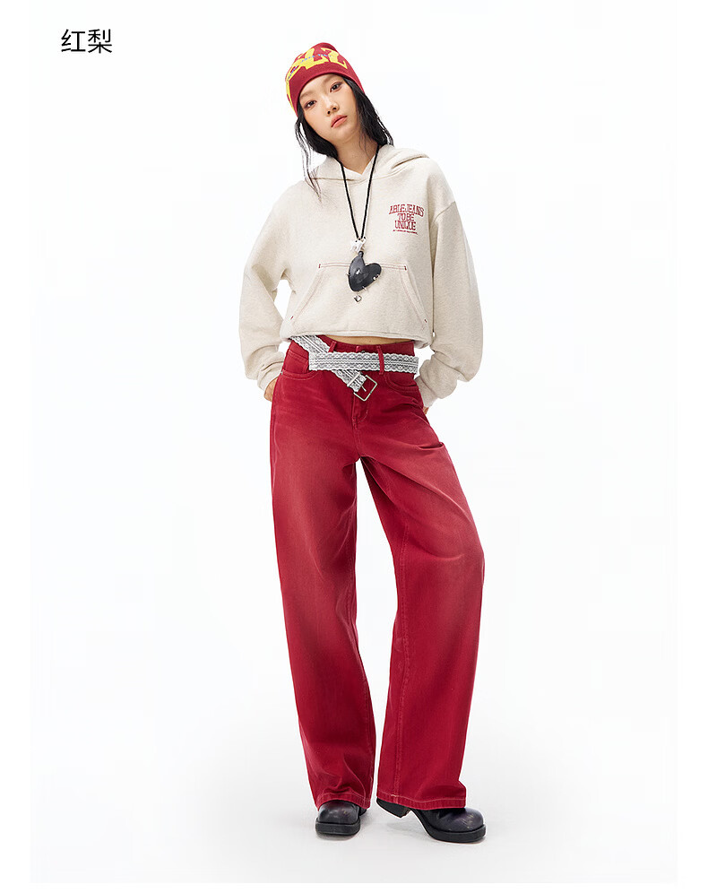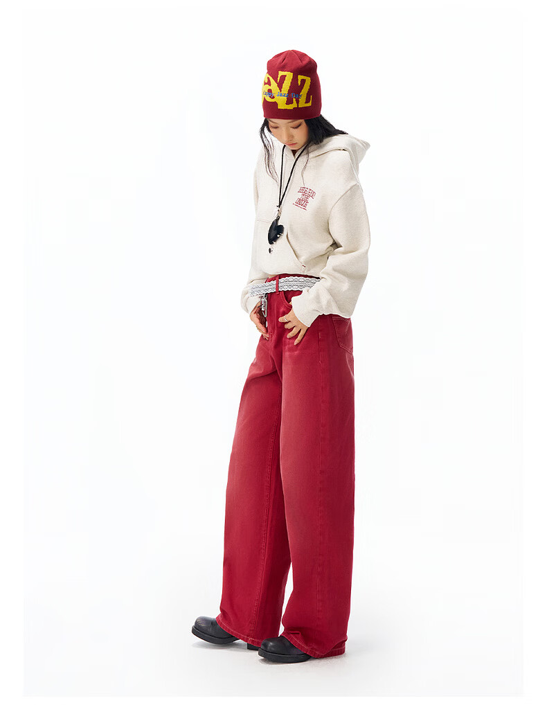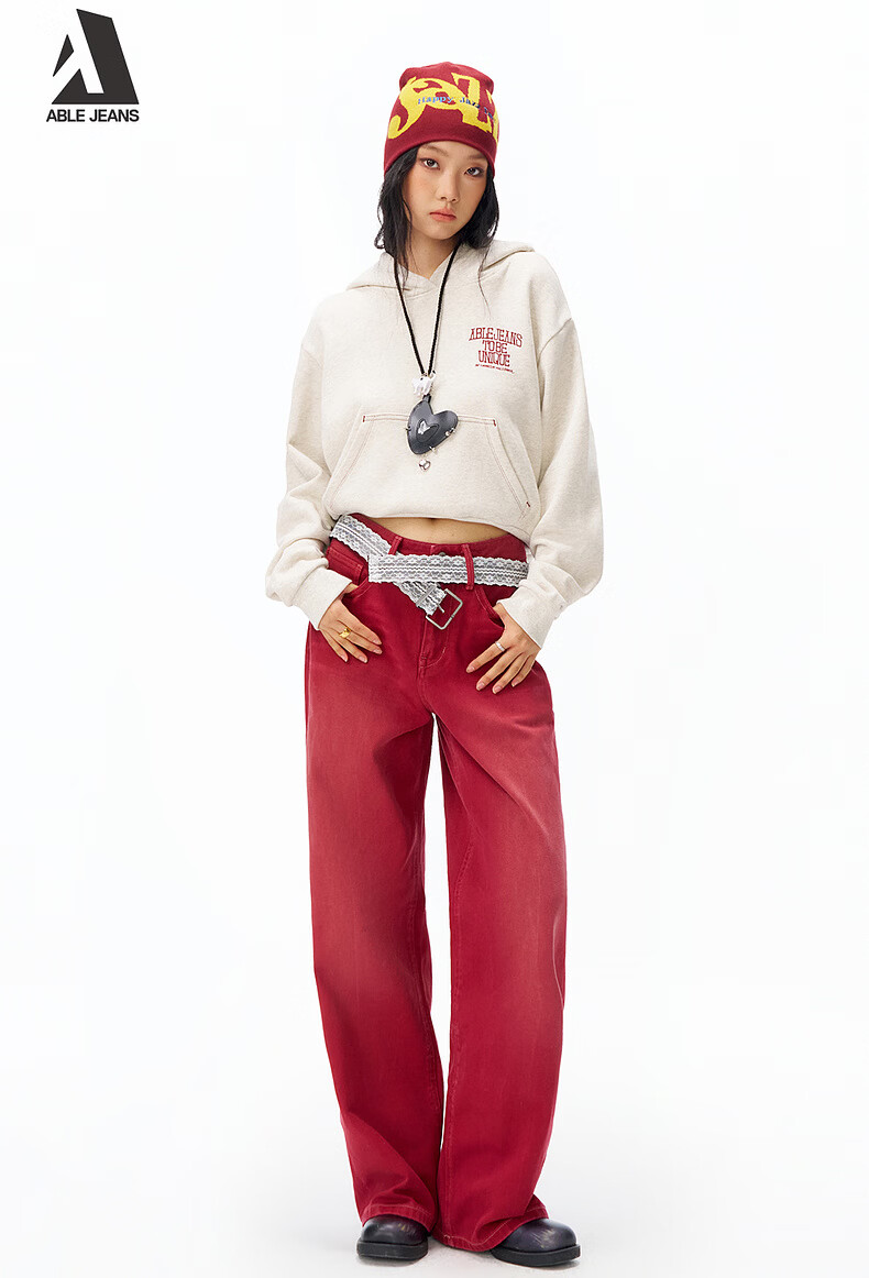 ABLE JEANS【拖地裤】26春新款新年女士宽松直筒长裤慵懒休闲潮流复古高级感 红梨 24 (42-47kg)