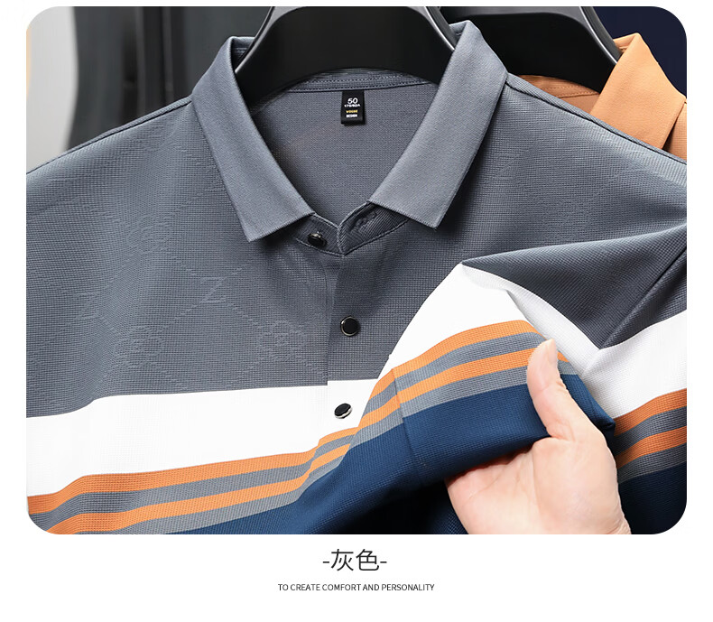 SHANSHAN杉杉短袖T恤男夏季新款无痕压胶休闲舒适男士百搭POLO衫男上衣 灰色 M /170