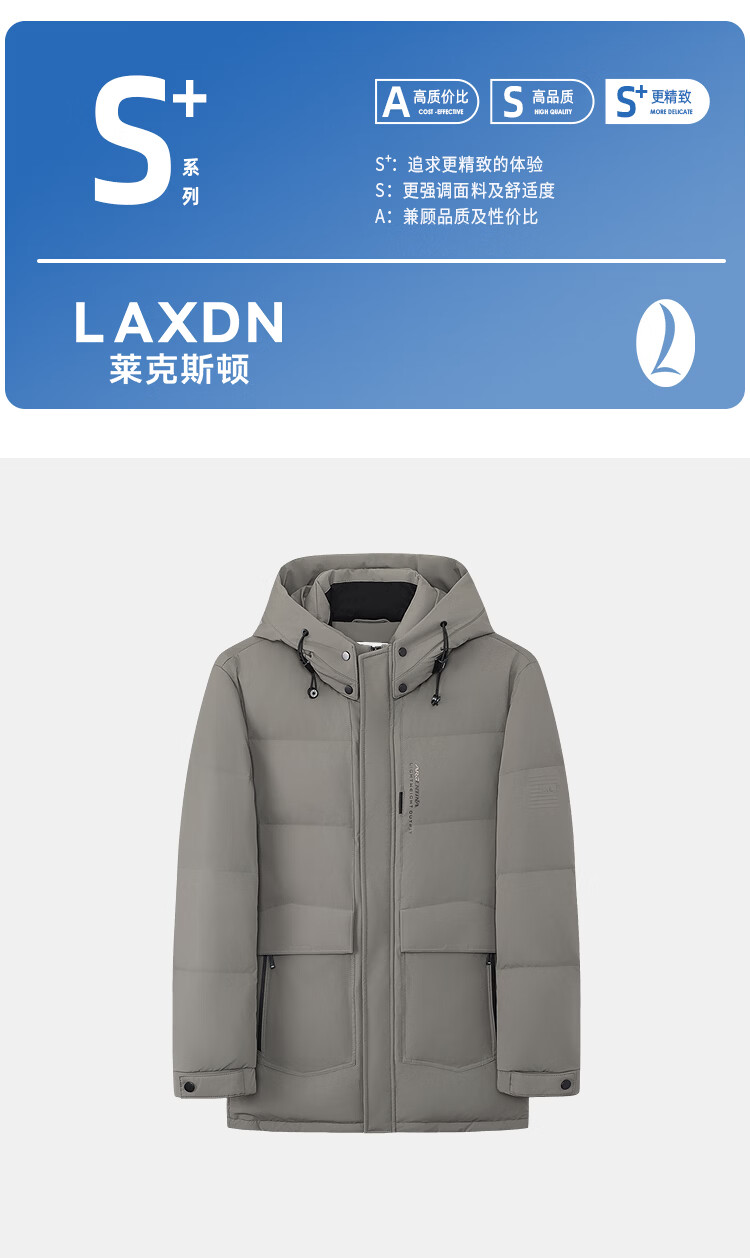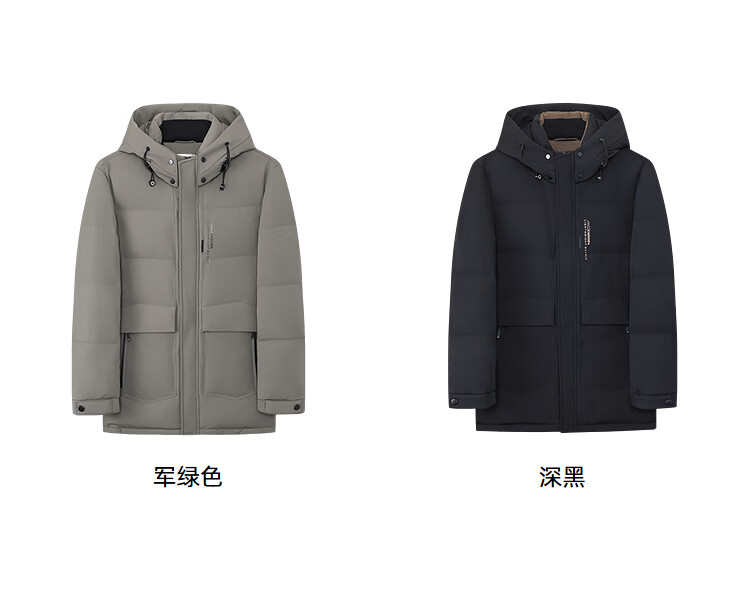 莱克斯顿(laxdn)羽绒服男冬季新款保暖连帽防风纯色简约中长款外套男 军绿色 S