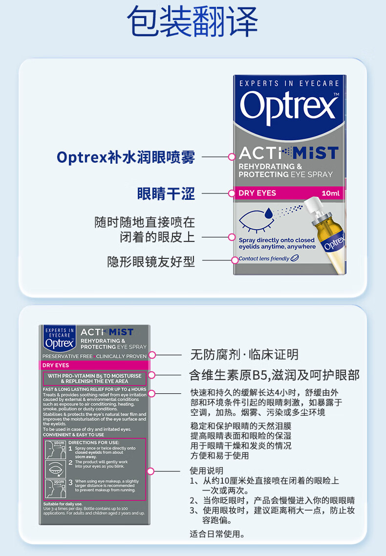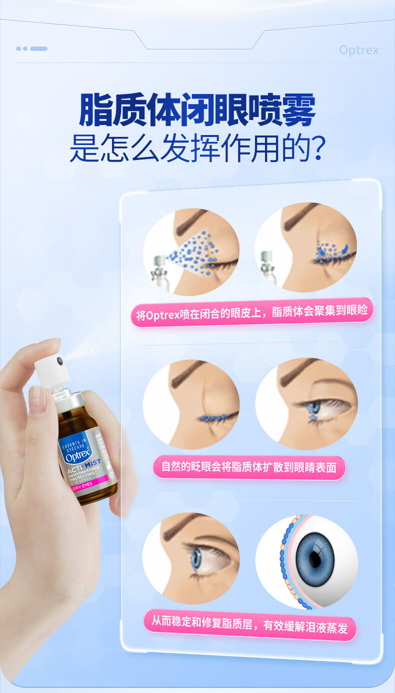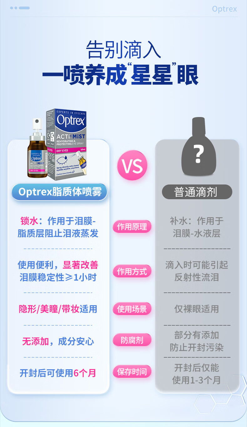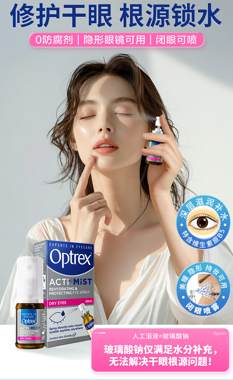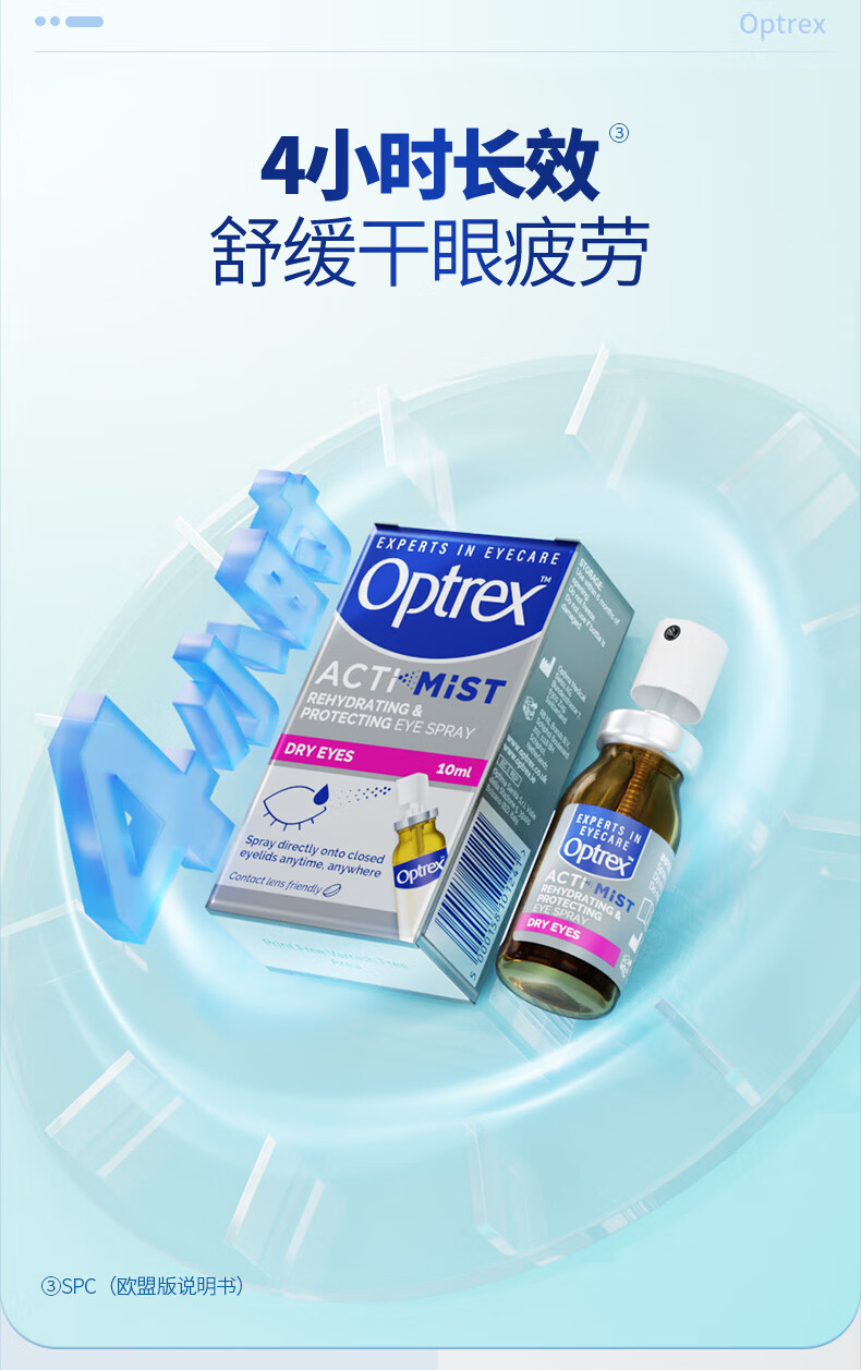 爱滴氏Optrex润眼喷雾进口眼药水缓解干眼症10ml 眼干涩模糊疲劳隐形润眼液儿童年货节护眼非人工泪液滴眼液