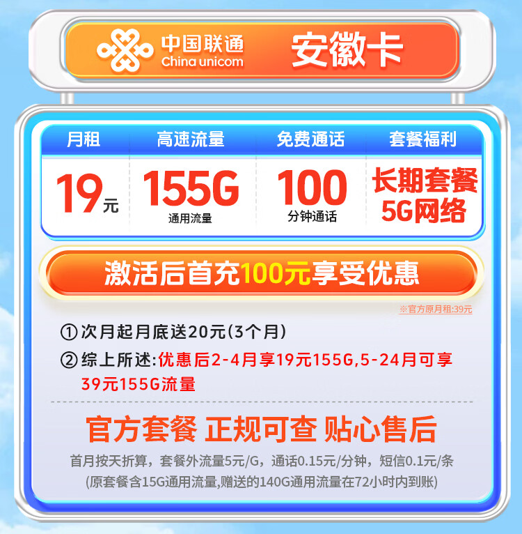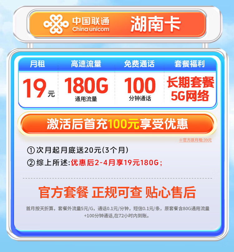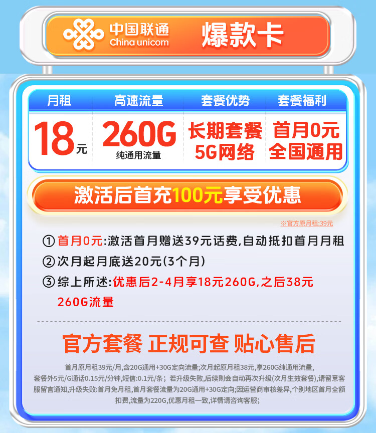 中国联通19元【超大流量卡】手机卡电话卡本地号全国通用不限速非无限纯上网5g大王卡 联通广东爆款卡【260G全国通用】长期套餐