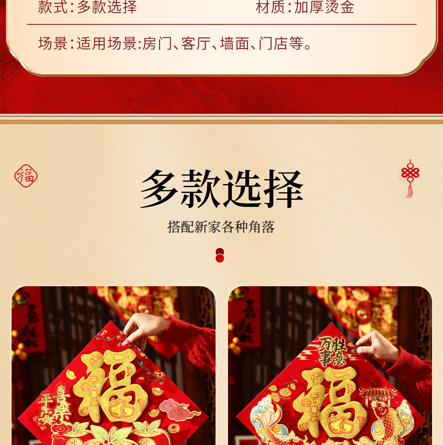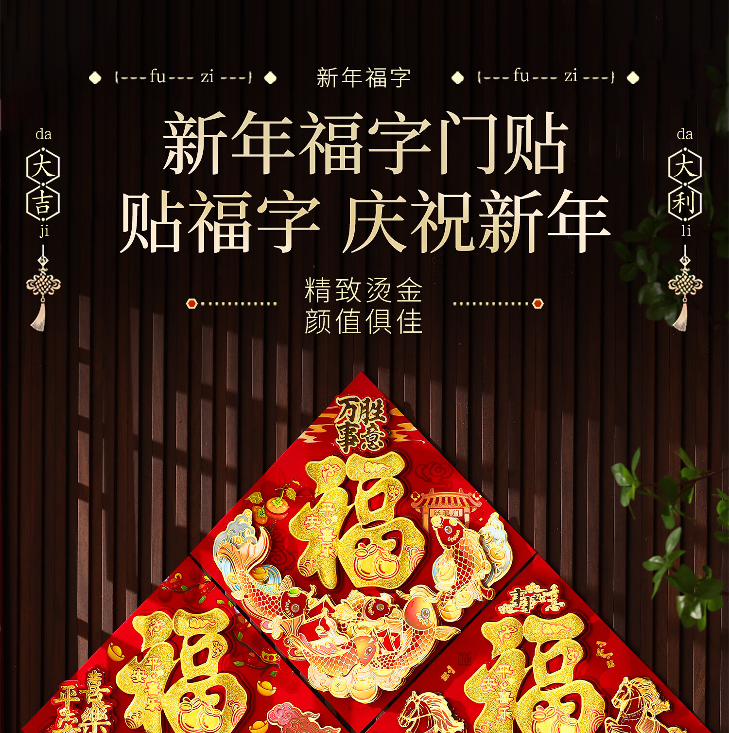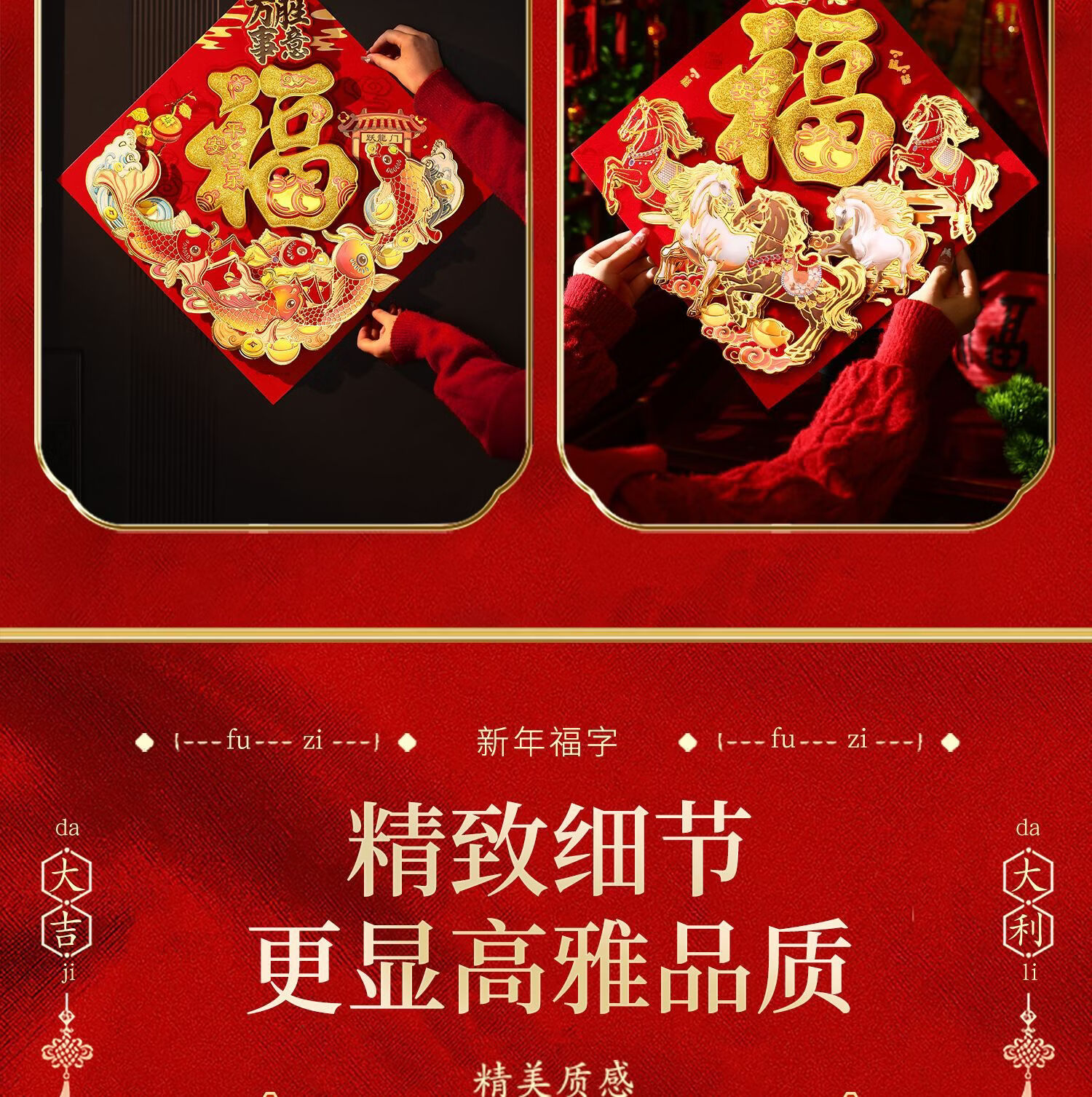 千棵树2026马年新年门神磁吸门贴福字入户门卡通对贴春节氛围场景装饰品 【一对装】新春大吉 磁吸款