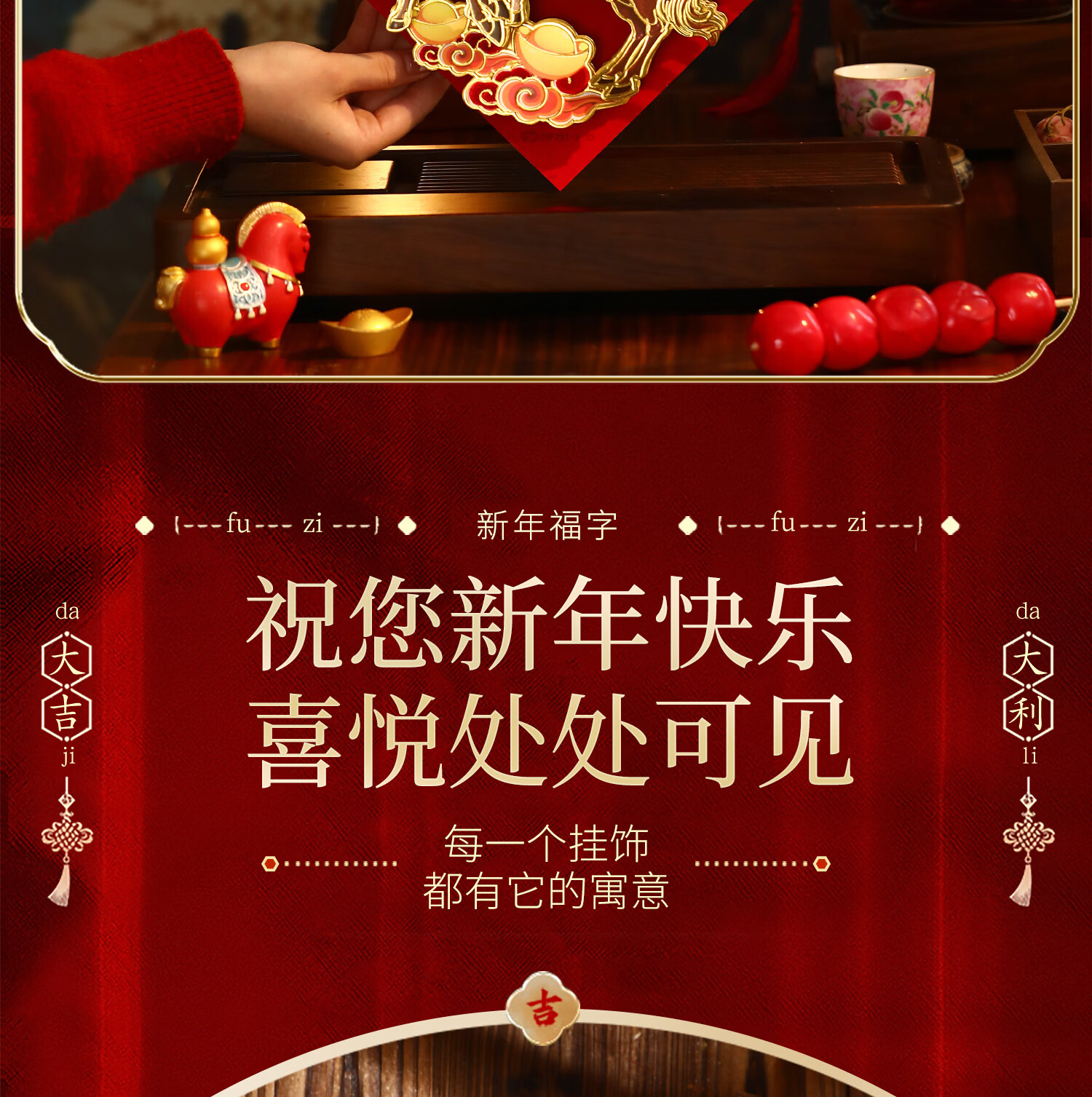 六品堂马年新款2026年大门春节过年新年门贴新春装饰布置对联套装 新年快乐8件套礼包 对联礼包
