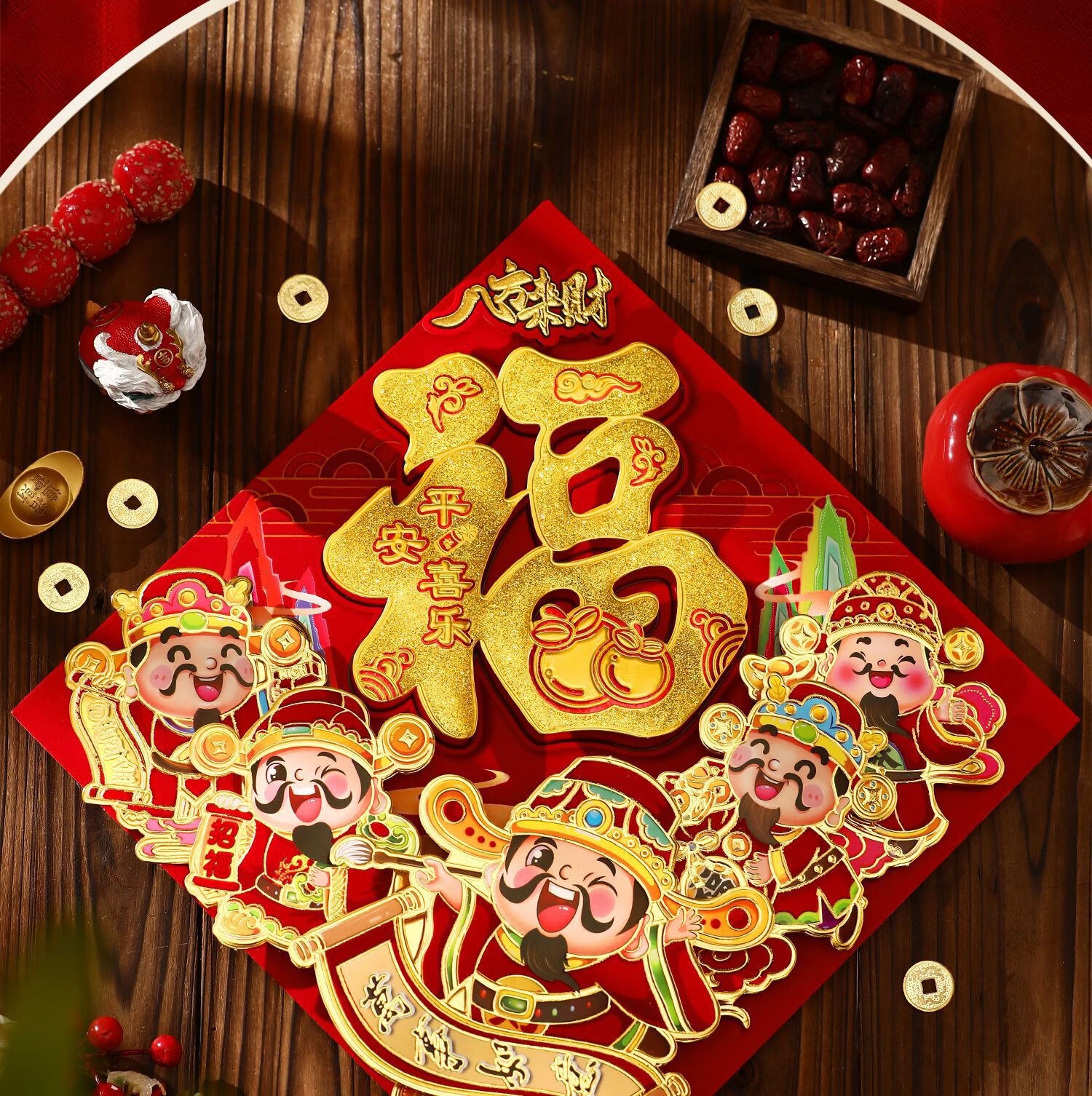 六品堂马年新款2026年大门春节过年新年门贴新春装饰布置对联套装 五福临门8件套礼包 对联礼包