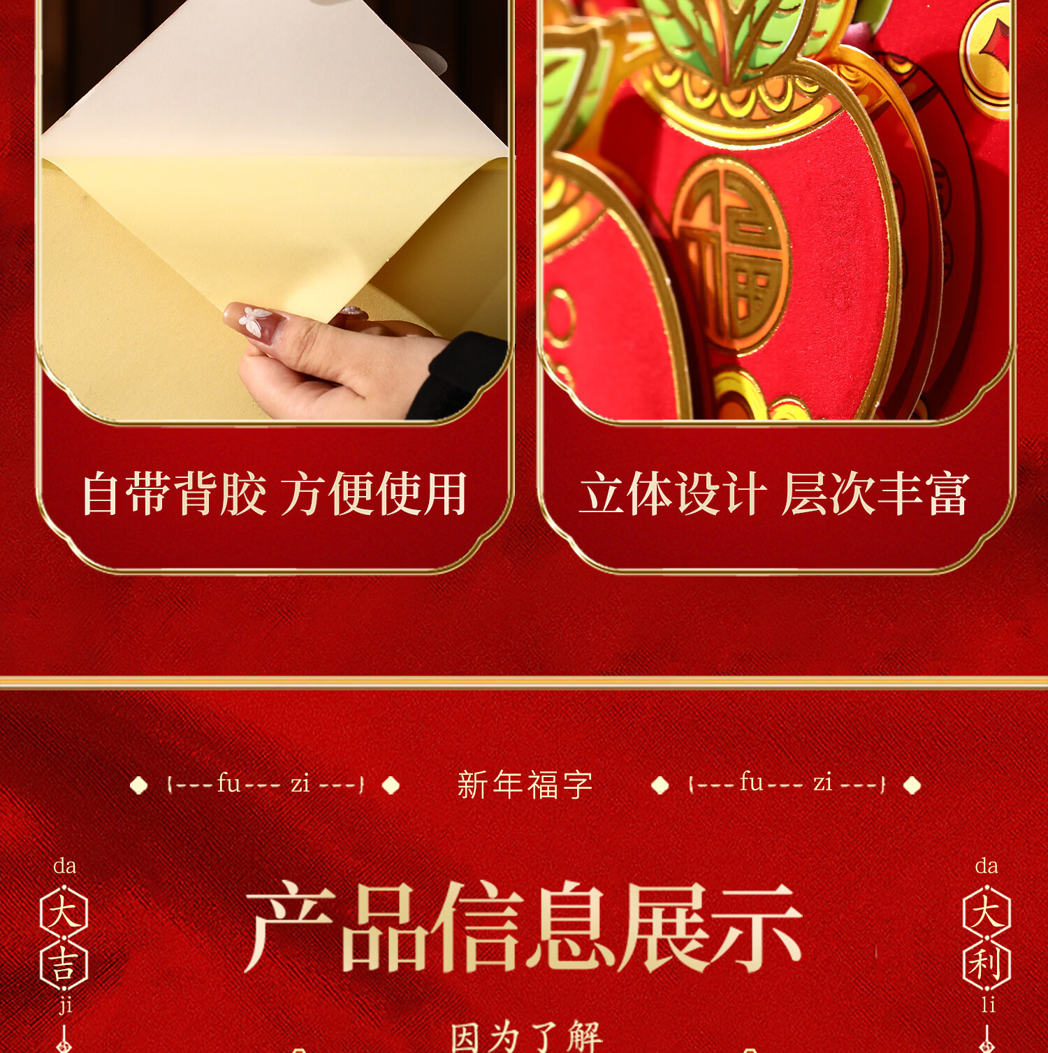 乐暄天2026新款过年生肖门贴立体福字门贴马年春节入户门贴纸新年装饰 八方来财【40#边长34cm】 5张