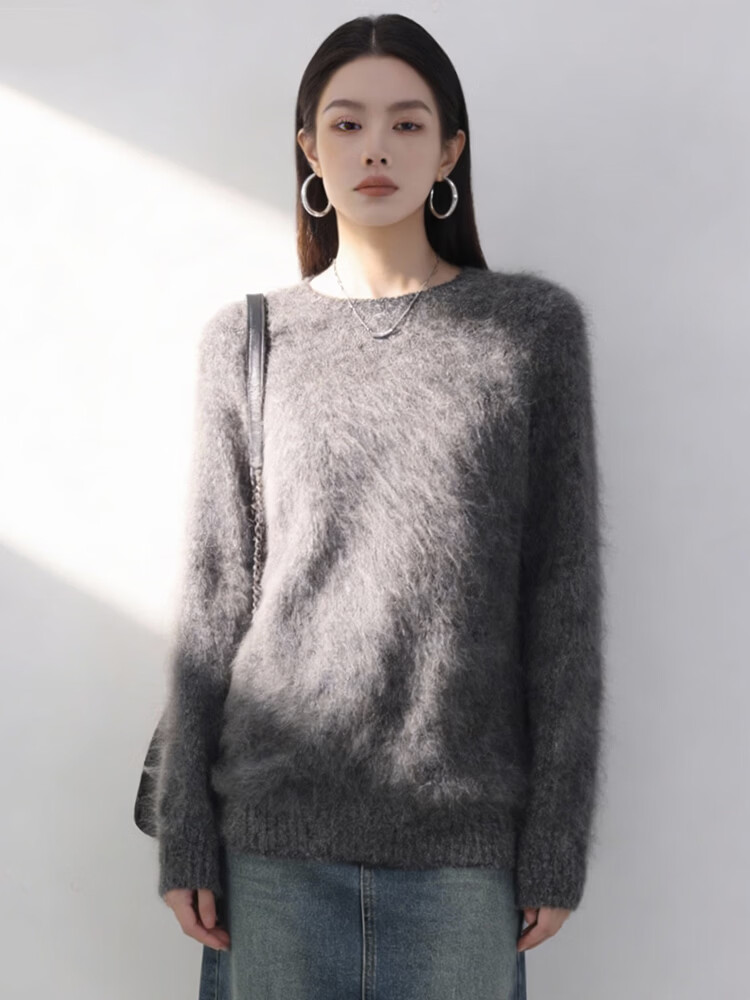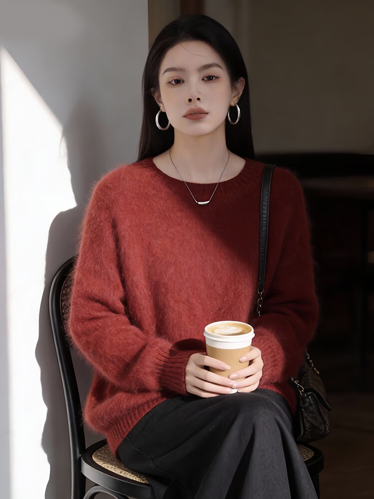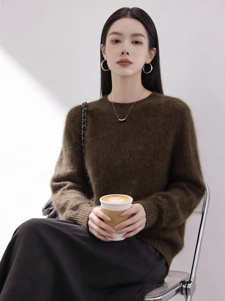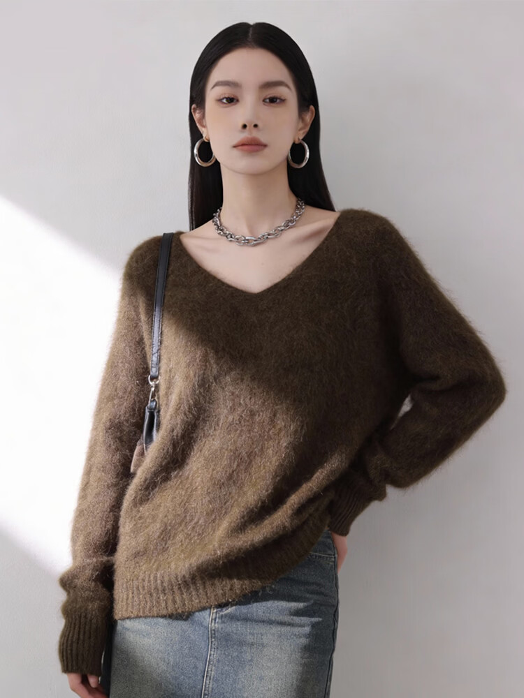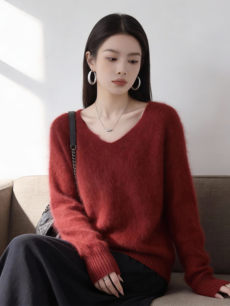 【达人专属】100%山羊绒柔软真谛拉毛冬女厚款针织毛衣套头 丛林绿-v领 L (110-140斤) 【3-15天发货】