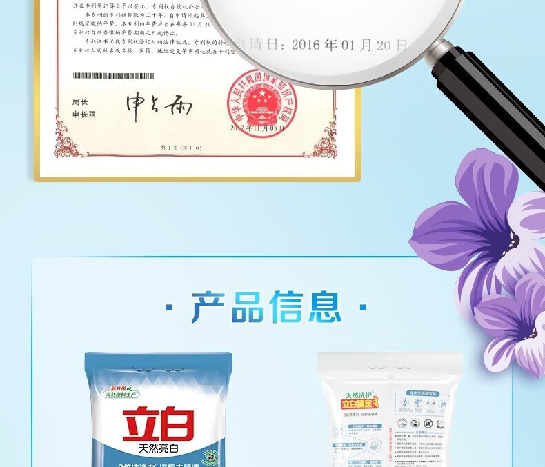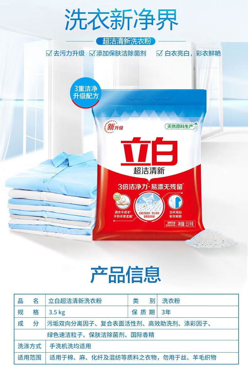 立白洗衣粉香氛洁清新除菌去渍洗衣粉深层去渍不伤手 245g*3袋洁清新洗衣粉