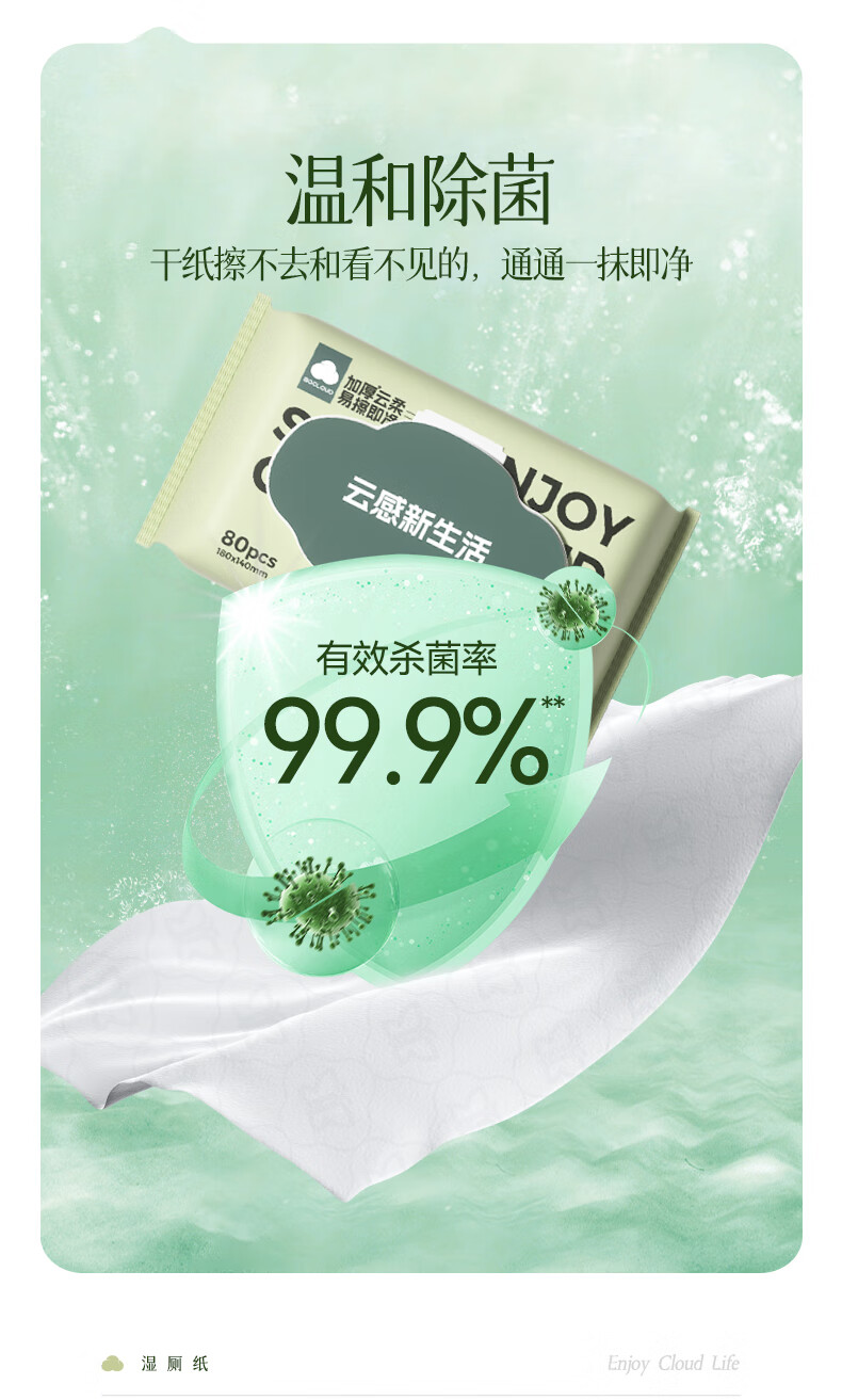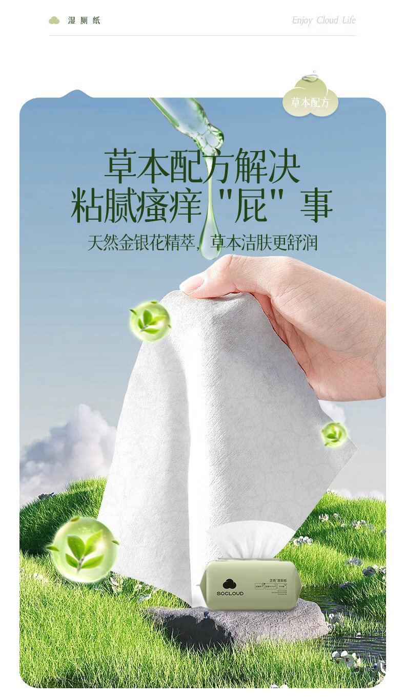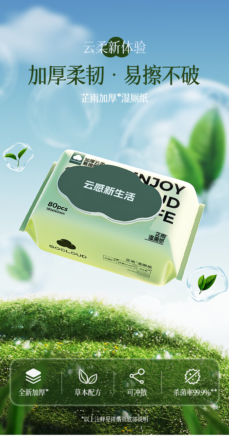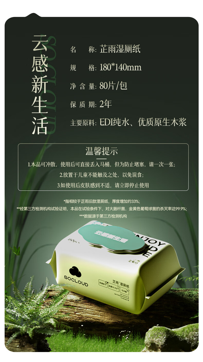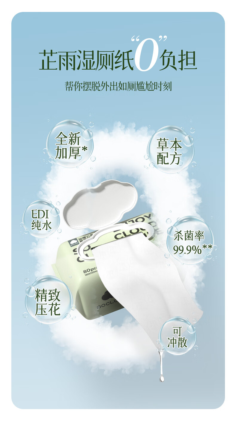 【巨物】芷雨湿厕纸80抽可冲马桶降解擦屁杀菌湿厕巾湿纸巾孕妇 80抽*1包 草本配方 温和洁净