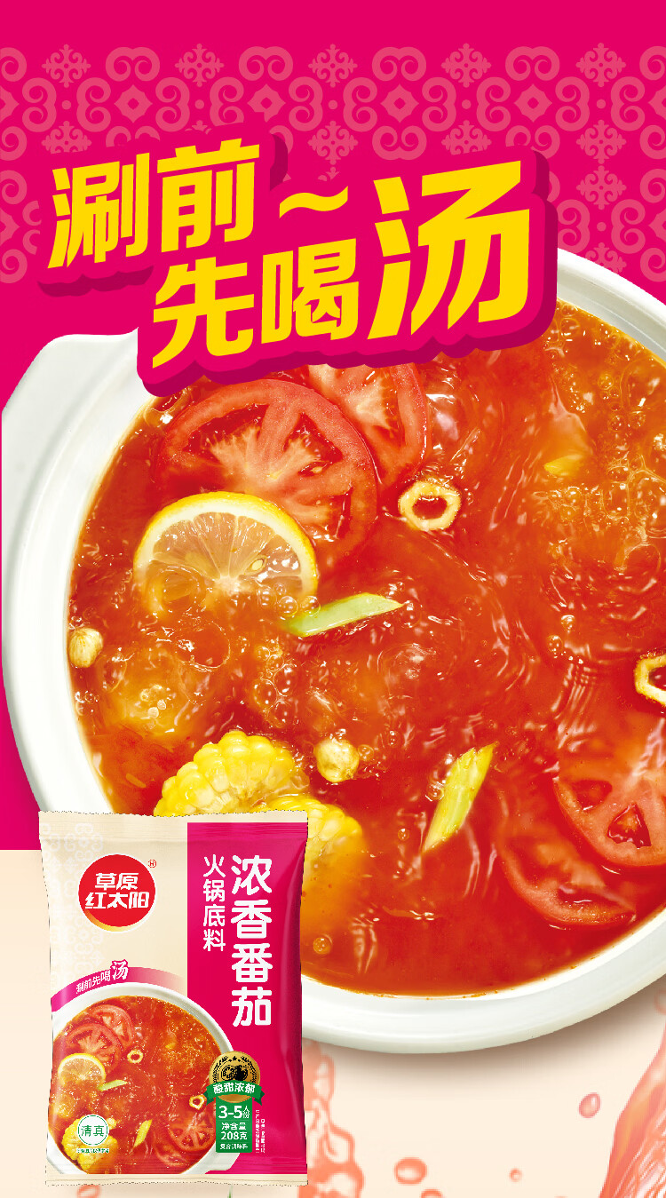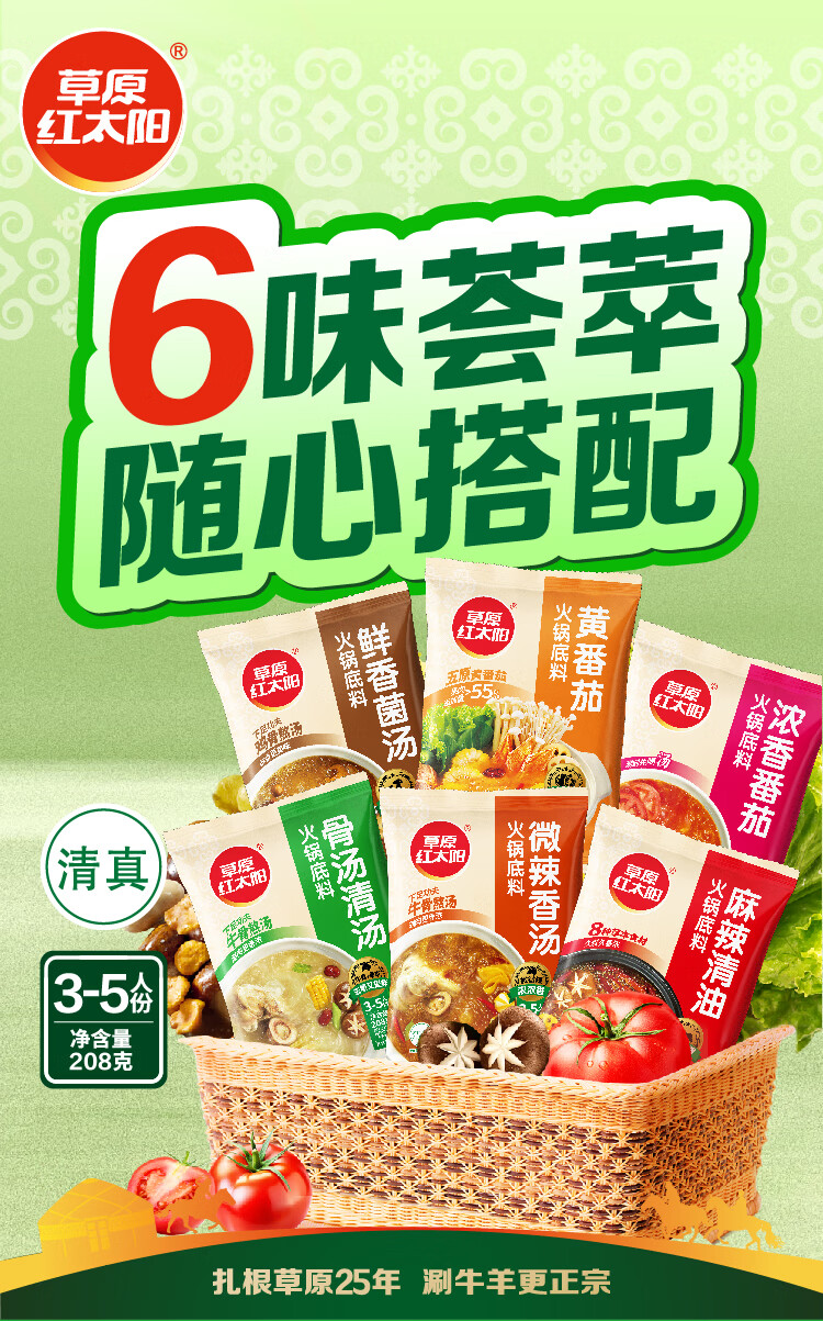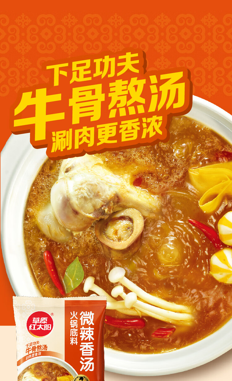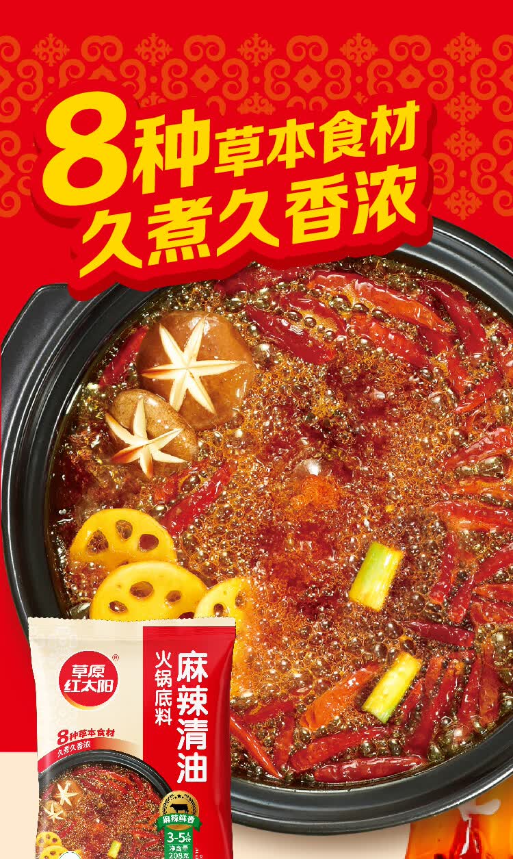 草原红太阳火锅底料208g麻辣清油火锅料黄番茄骨汤菌汤微辣火锅底料 208g微辣香汤*5袋