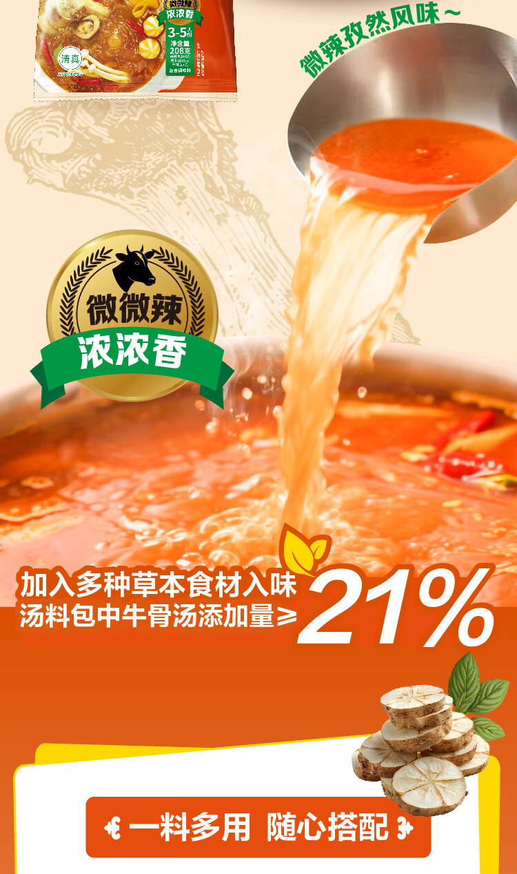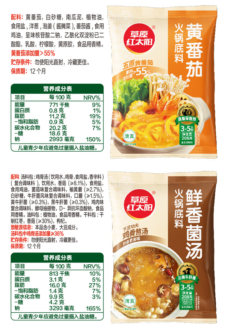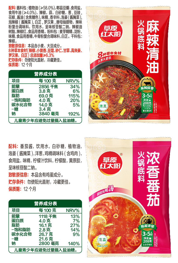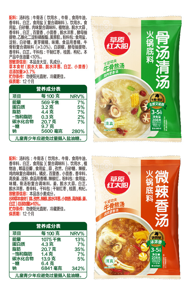 草原红太阳火锅底料208g麻辣清油火锅料黄番茄骨汤菌汤微辣火锅底料 208g微辣香汤*5袋