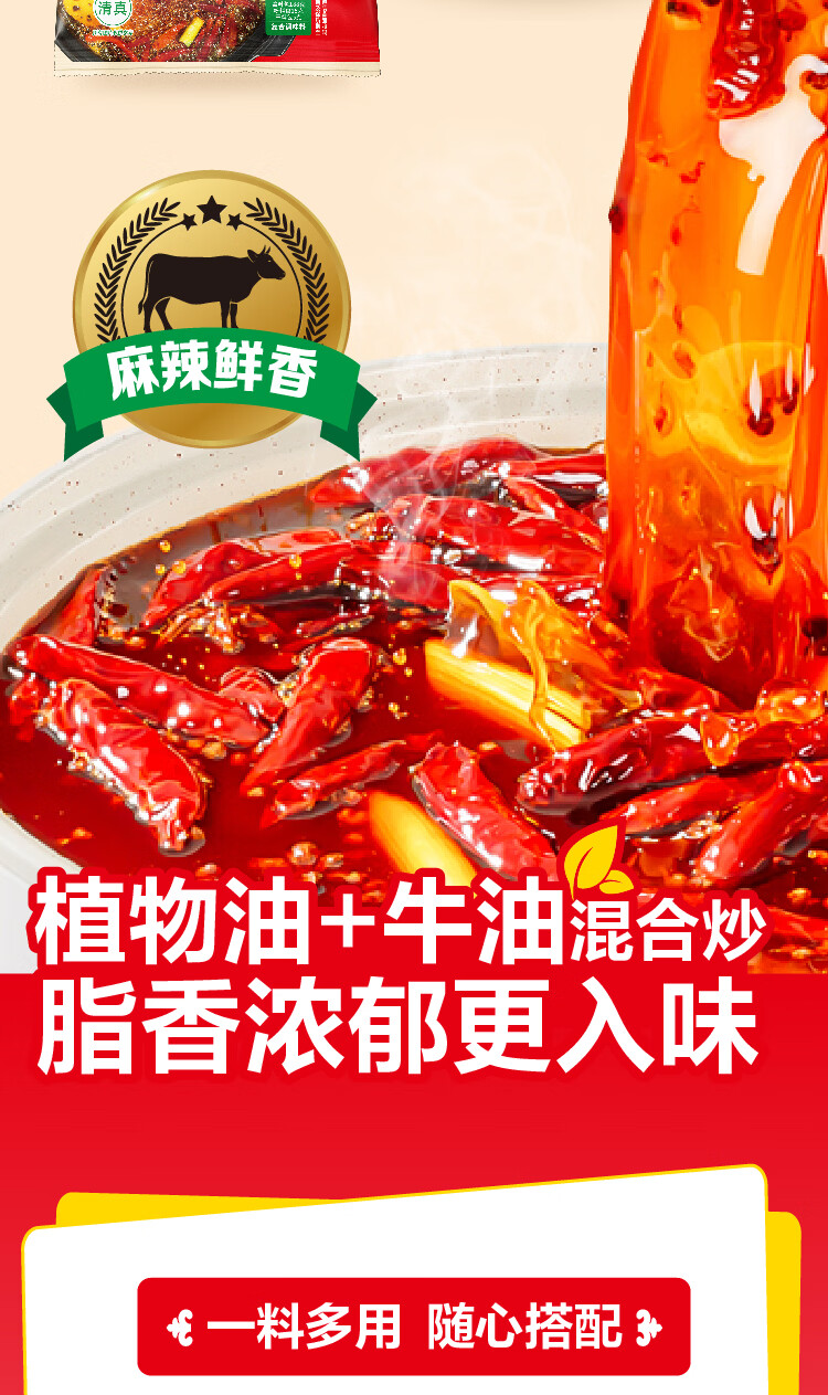 火锅底料手工牛油老火锅重庆四川小包装麻辣烫冒菜串串香锅 手工牛油麻辣味60g*1袋不够吃