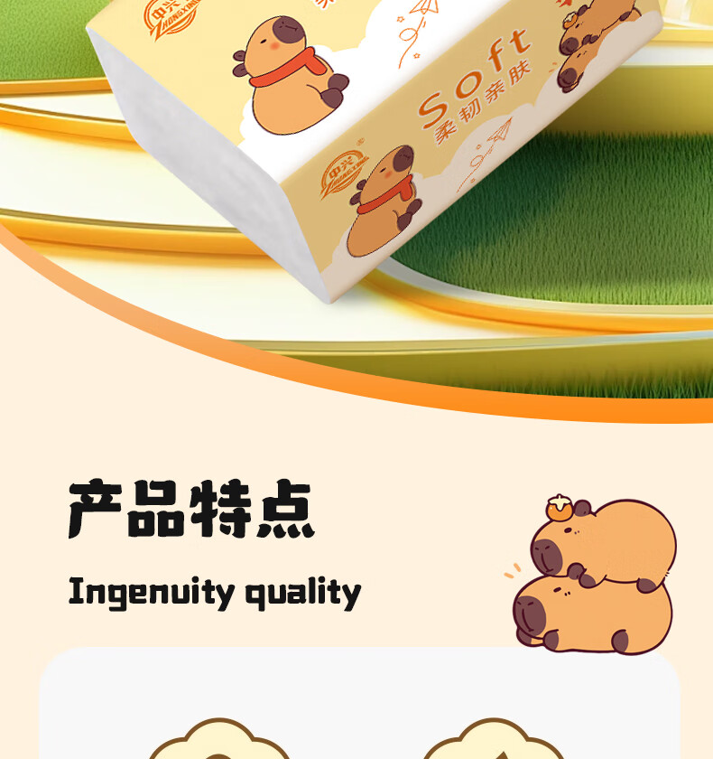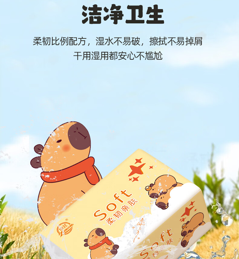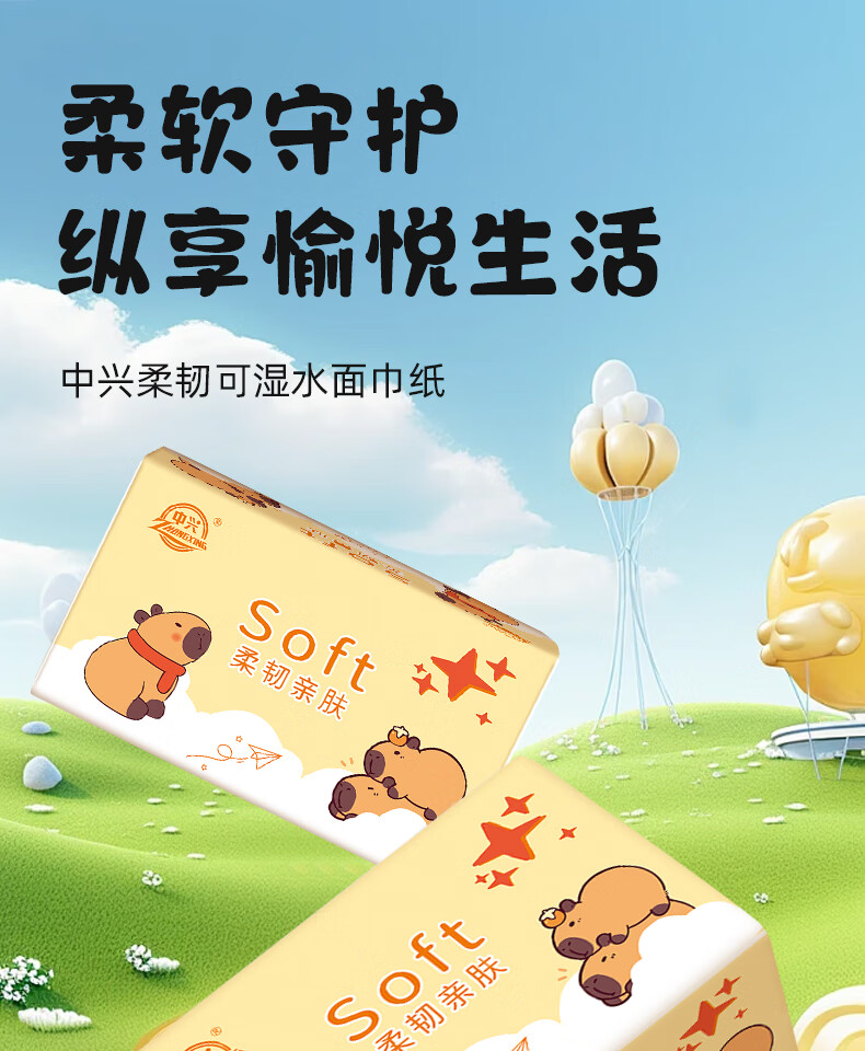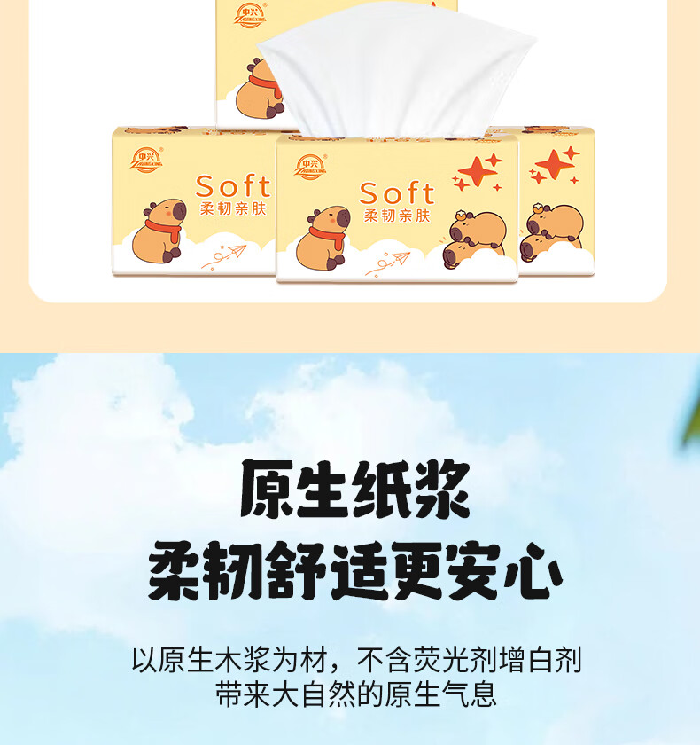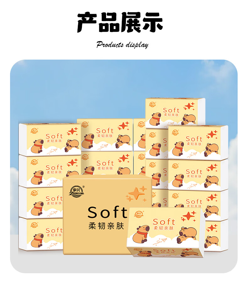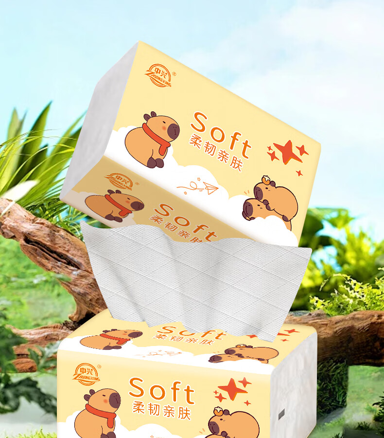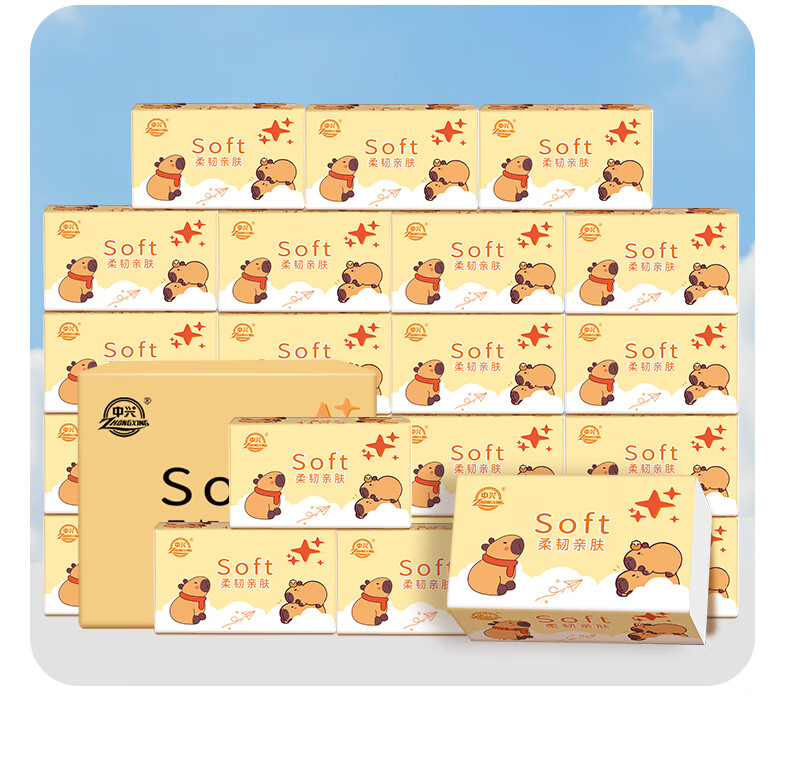 中兴(zhongxing)【到手27包】中兴卡皮巴拉家用抽纸整箱干湿两用抽取式纸巾家庭装 【囤货装推荐】 5层 420张*27包