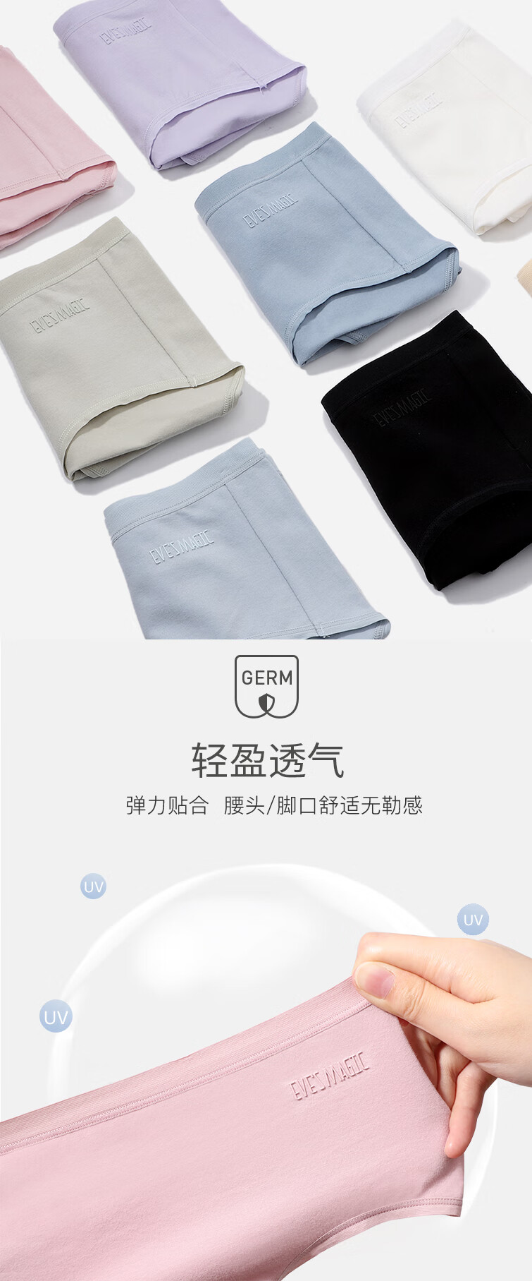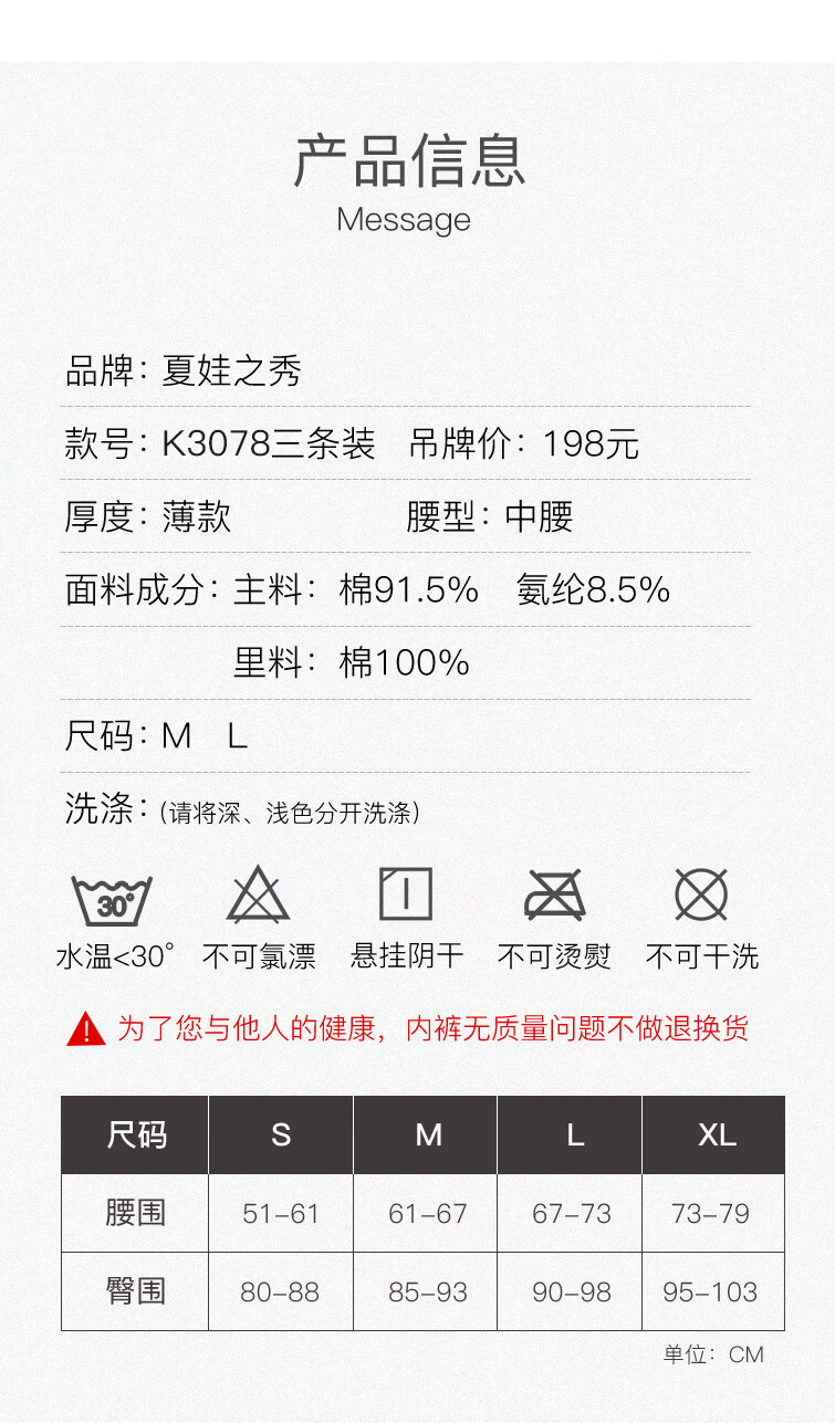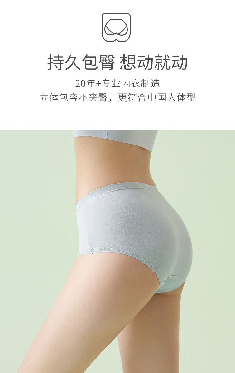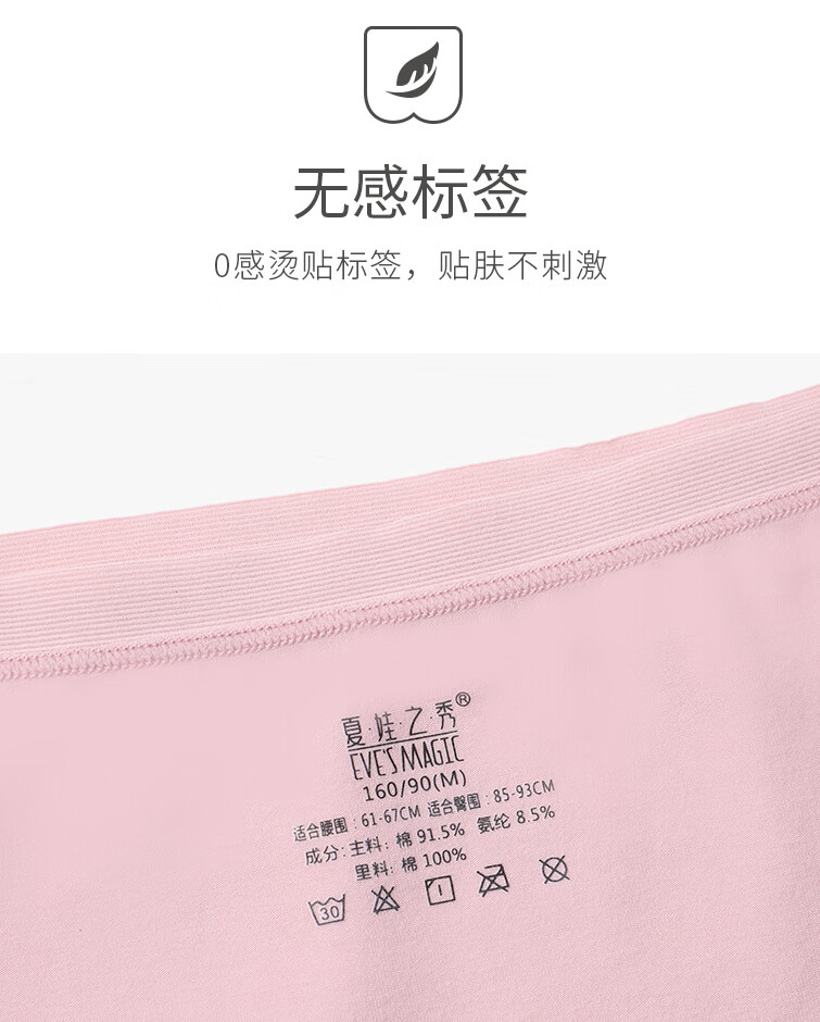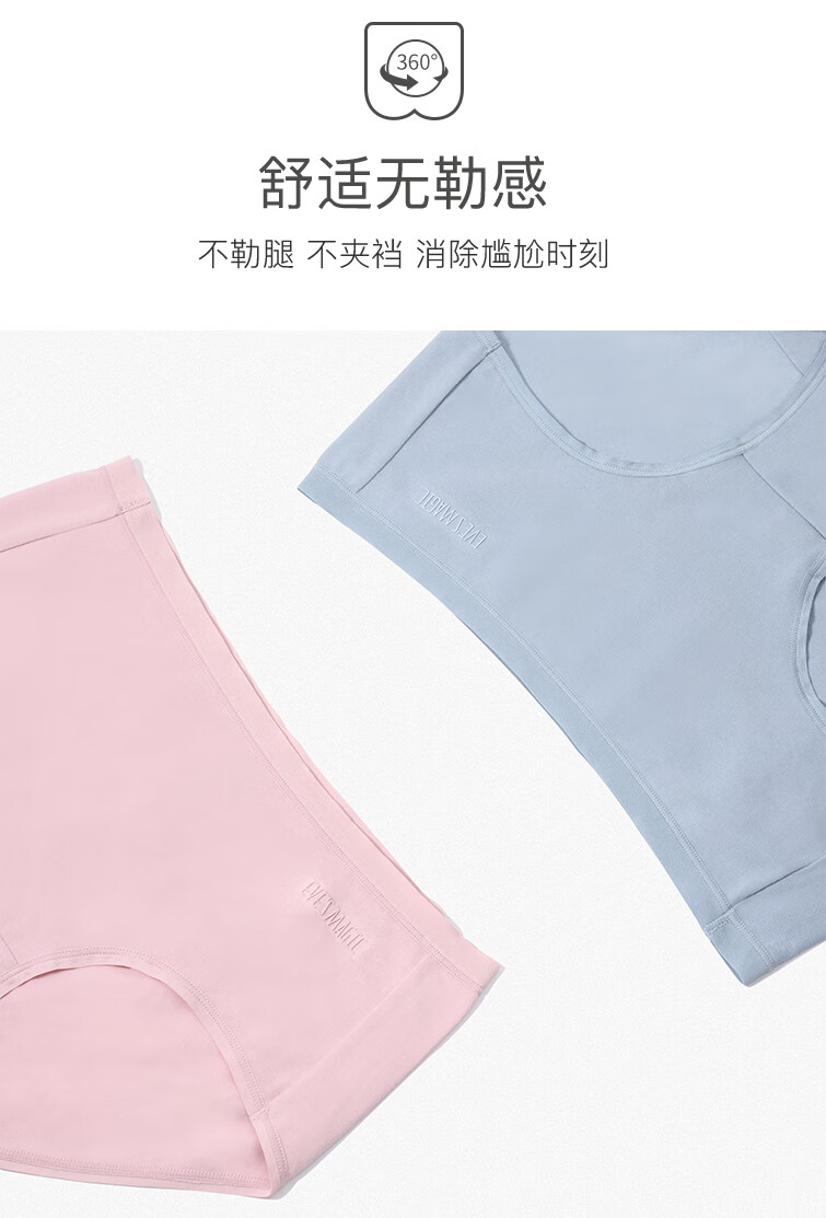 夏娃之秀纯色内裤亲肤痕无痕舒适透气提臀学生收腹三角棉款打底短裤3条装 常规版(豆绿+浅蓝+肤色) 3条 M