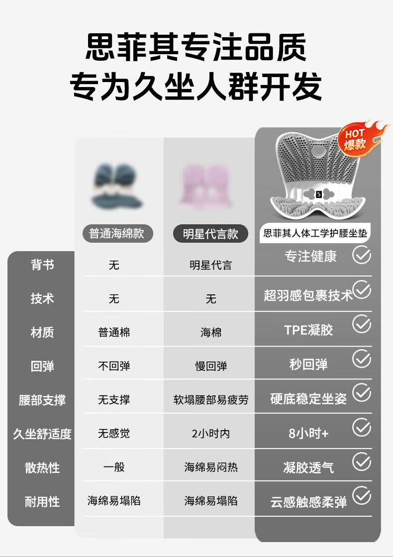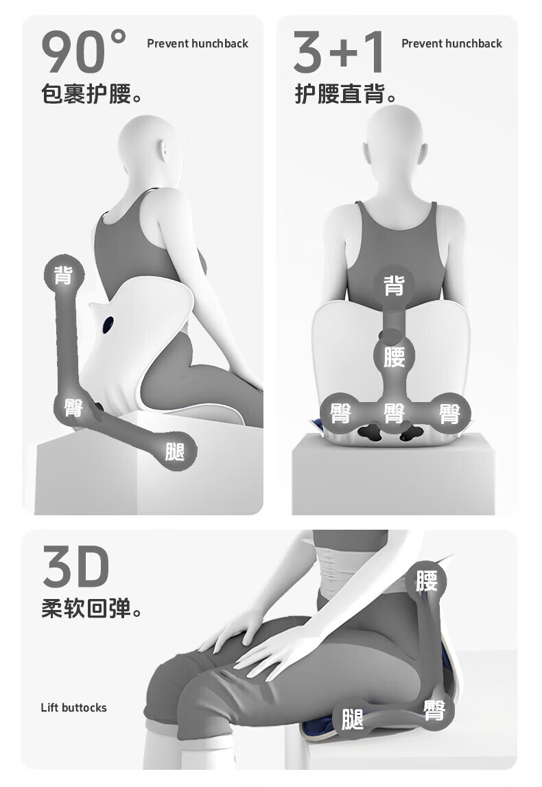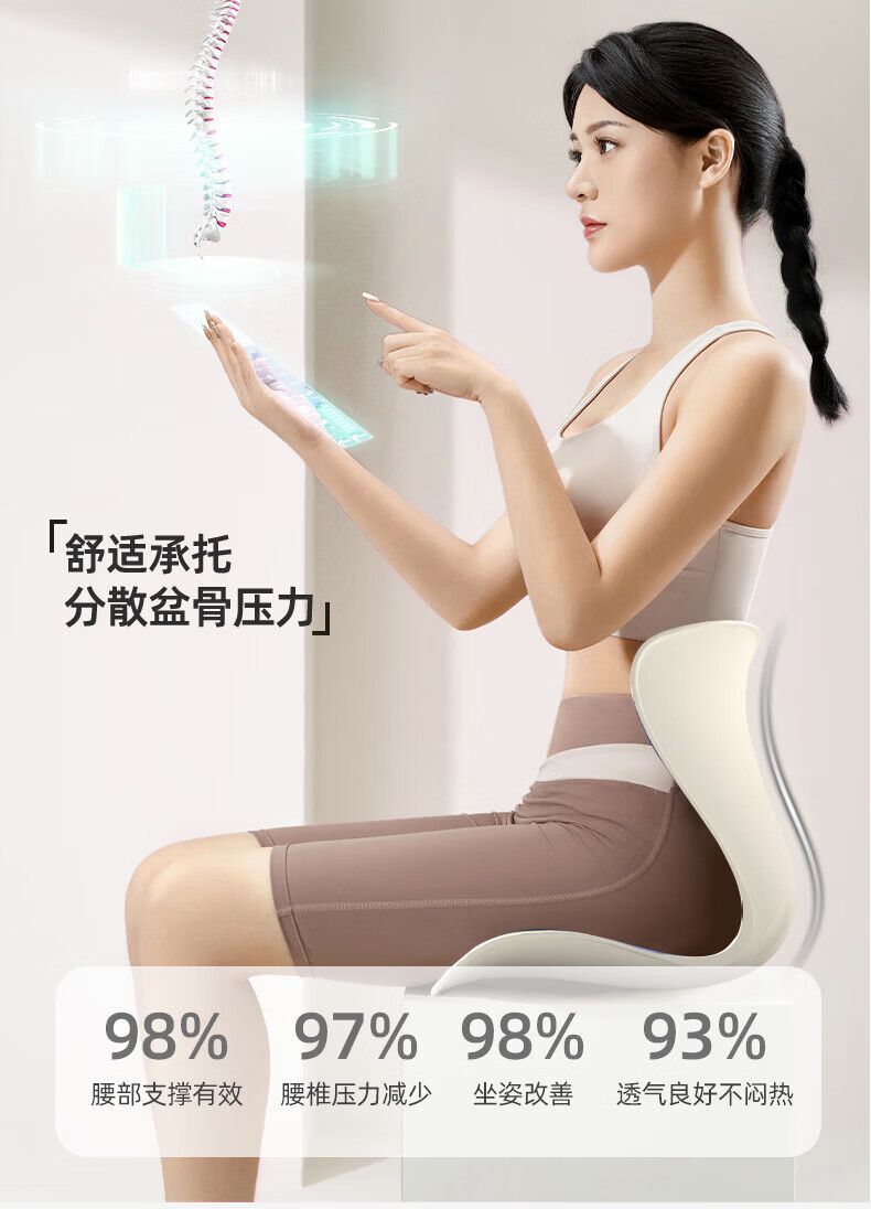 思菲其撑腰侠护腰坐垫办公久坐舒适美臀人体工学靠垫TPE凝胶久坐神器 撑腰侠包裹系列【幻影紫】160斤以内推荐