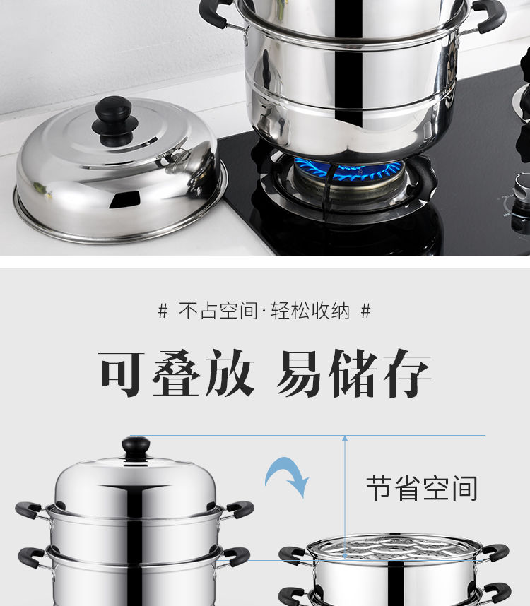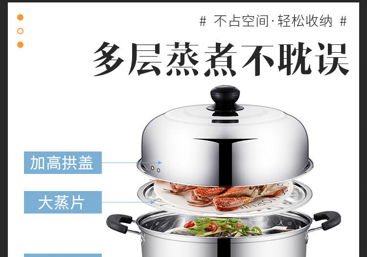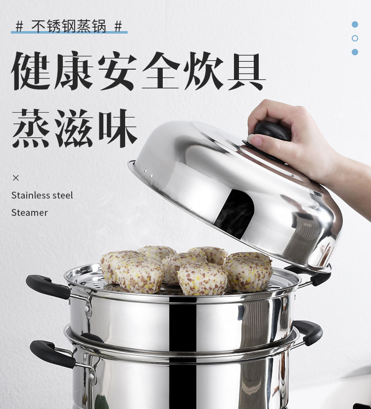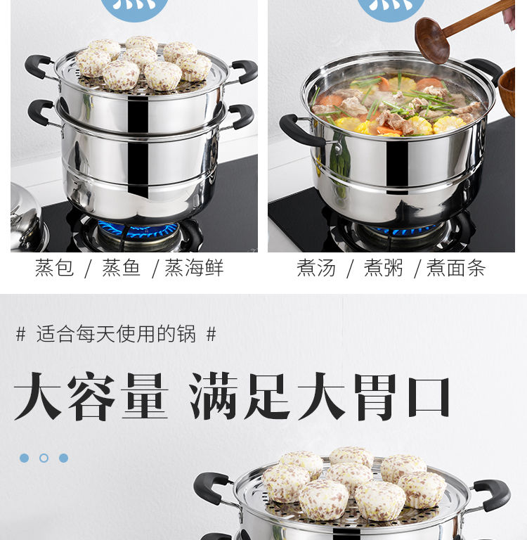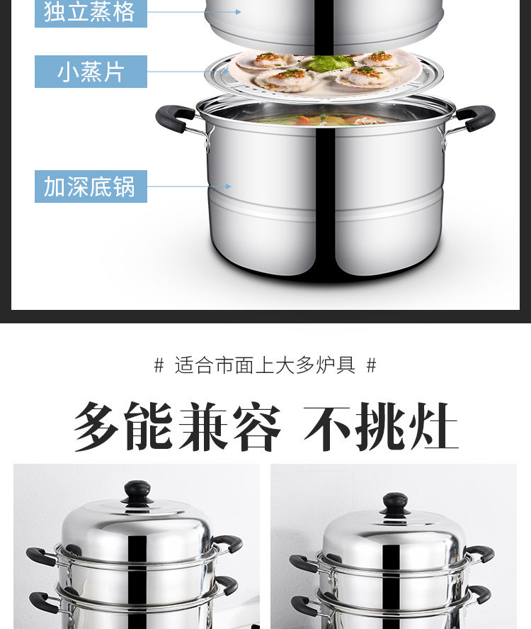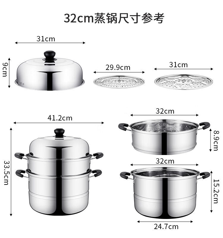 加厚不锈钢蒸锅多层煤气电磁炉家用蒸煮馒头蒸笼小汤锅具 (三层蒸锅) 32cm