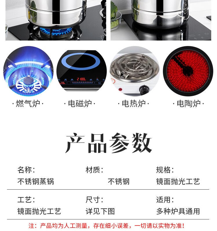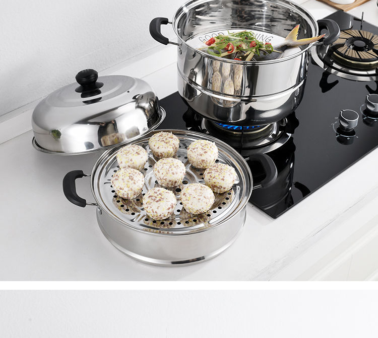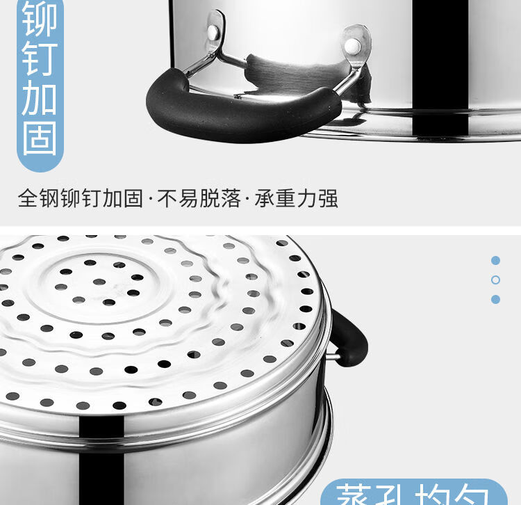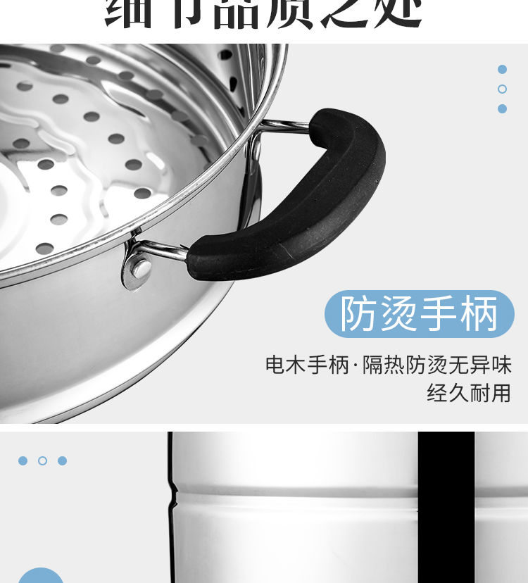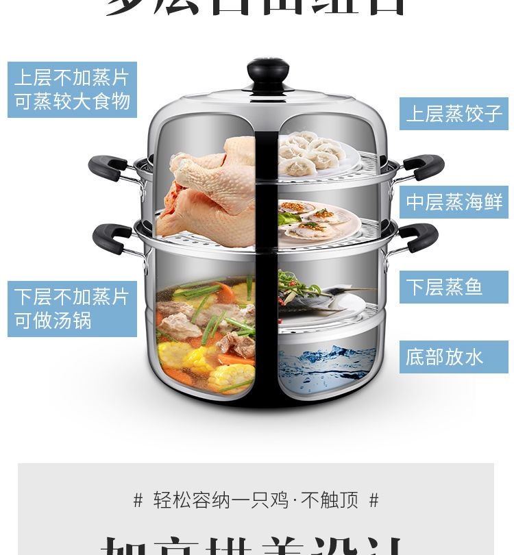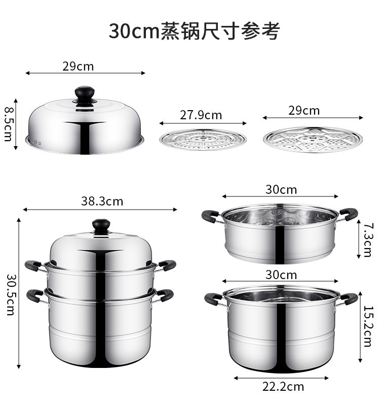 加厚不锈钢蒸锅多层煤气电磁炉家用蒸煮馒头蒸笼小汤锅具 (三层蒸锅) 32cm