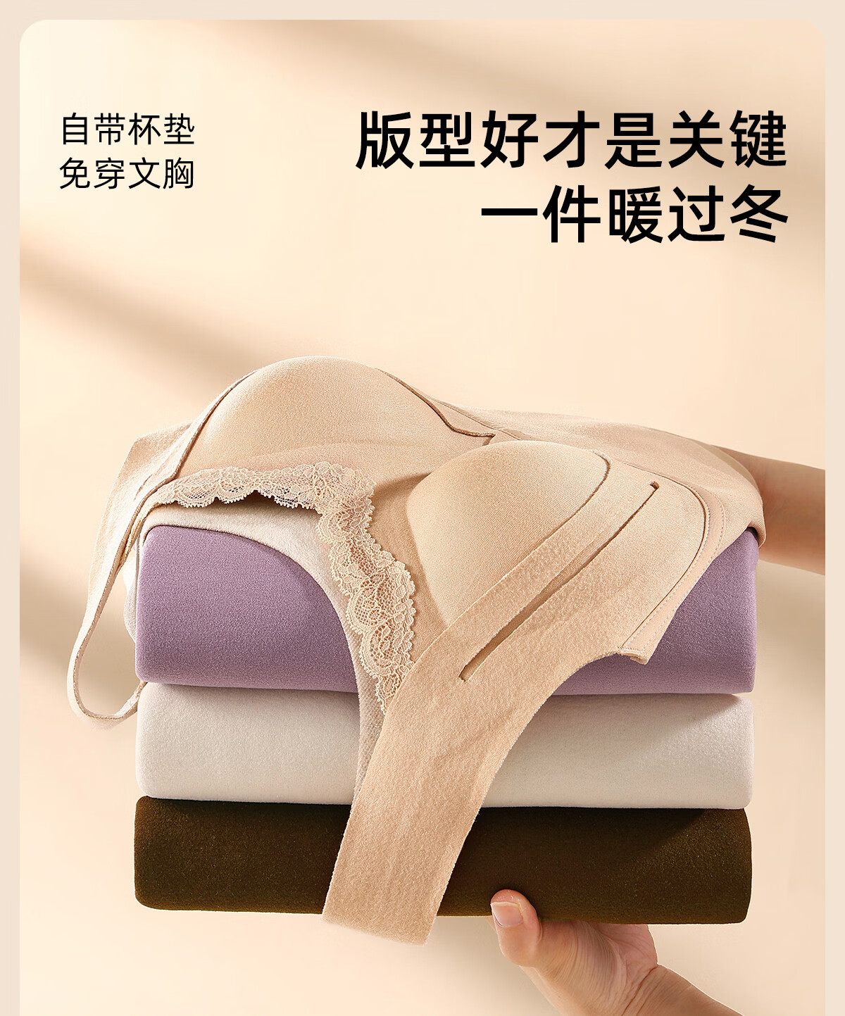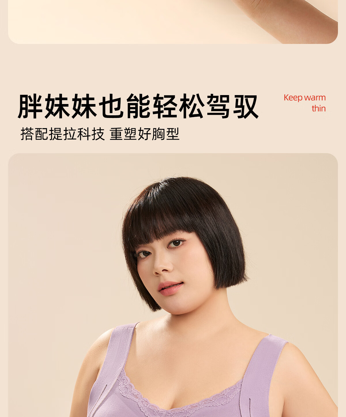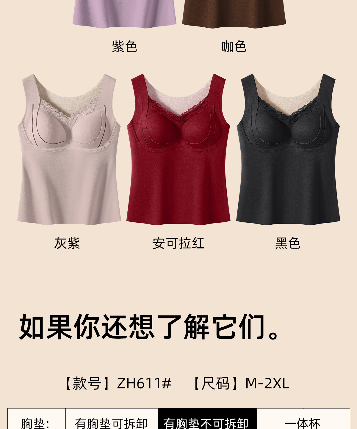 都市丽人保暖内衣女A类【貂绒桑蚕丝】远红外发热免穿文胸贴身柔软打底衣 紫色 2XL 建议体重135-150斤