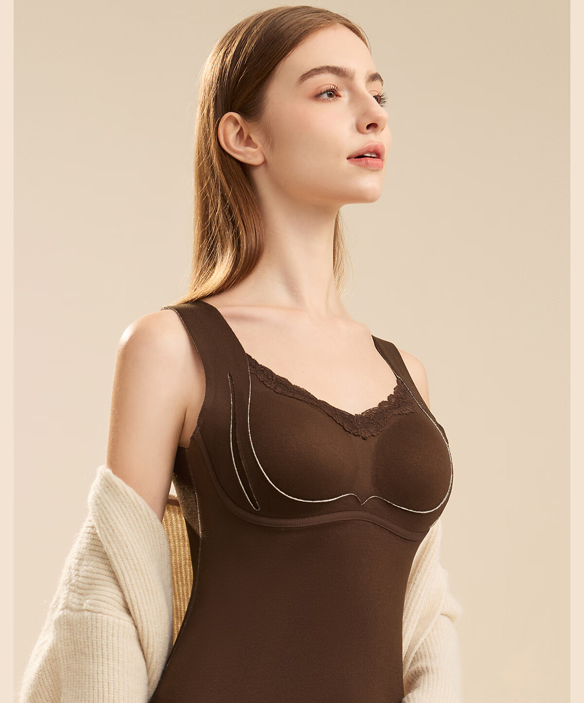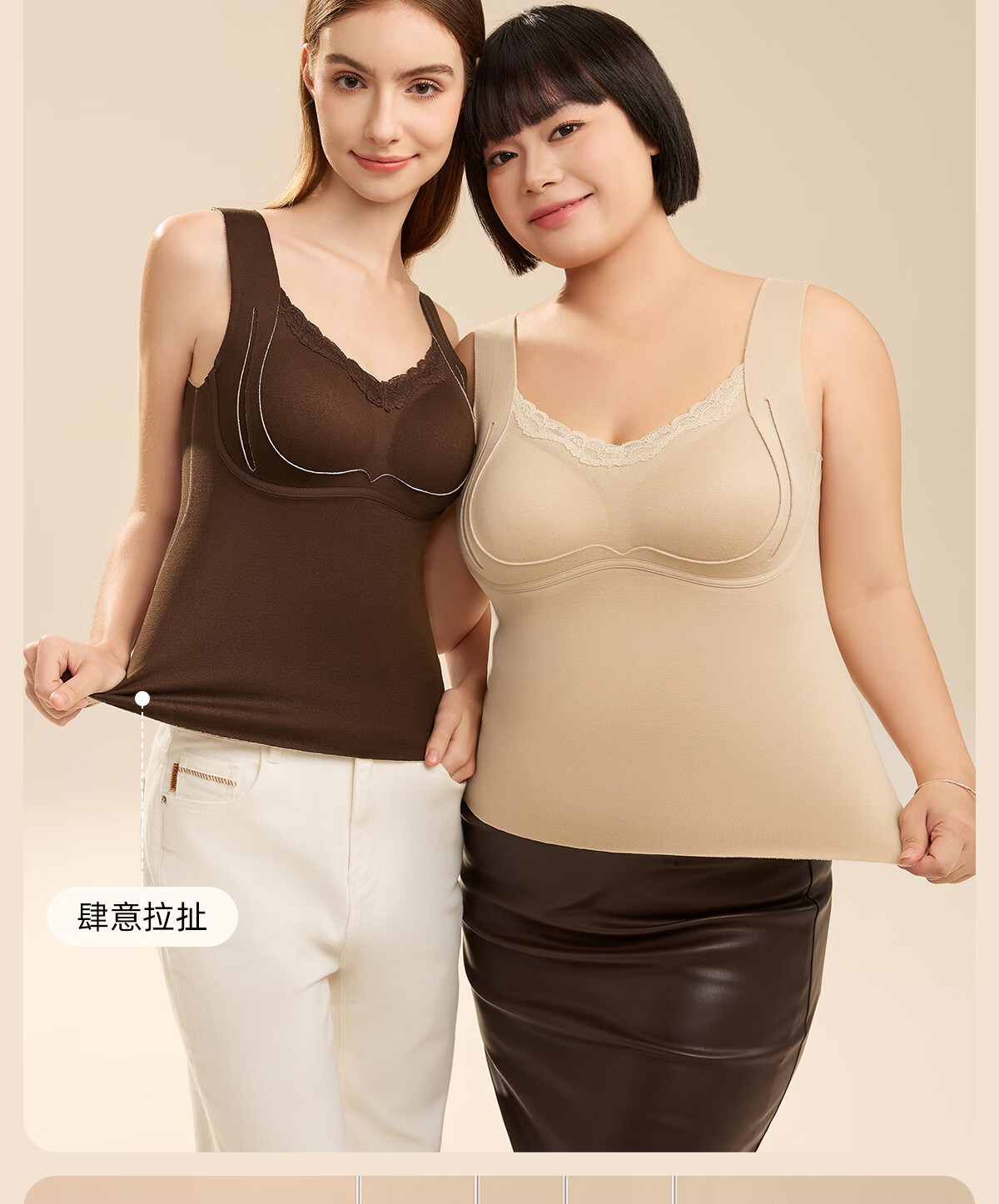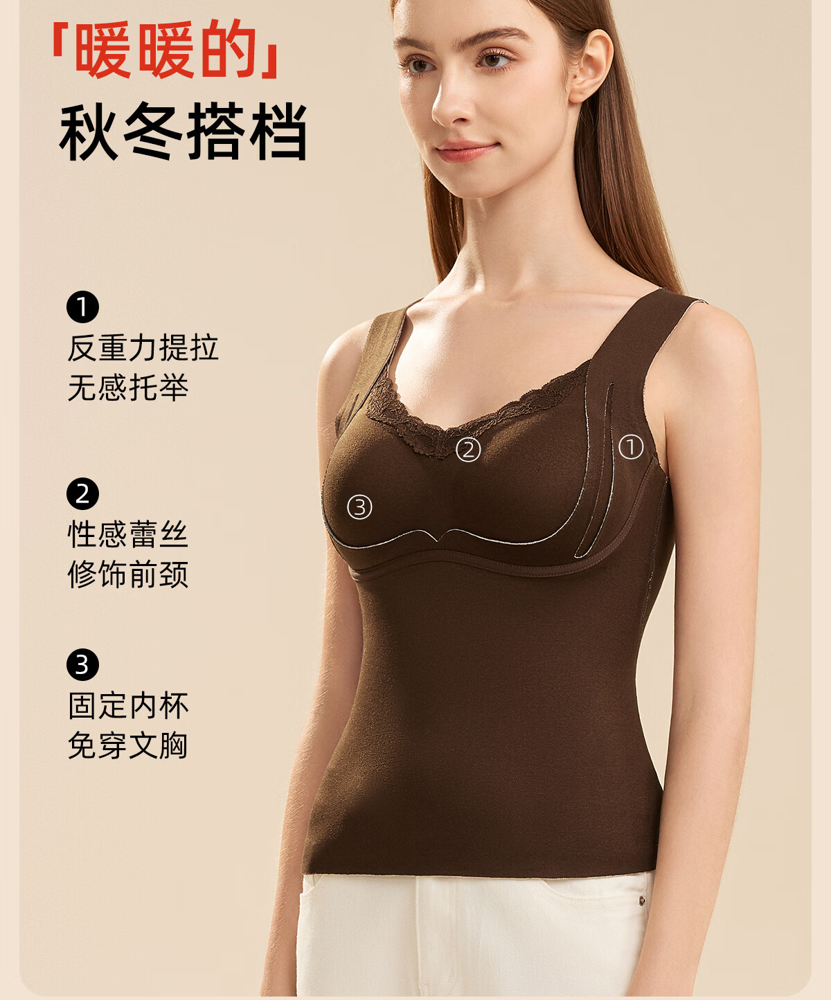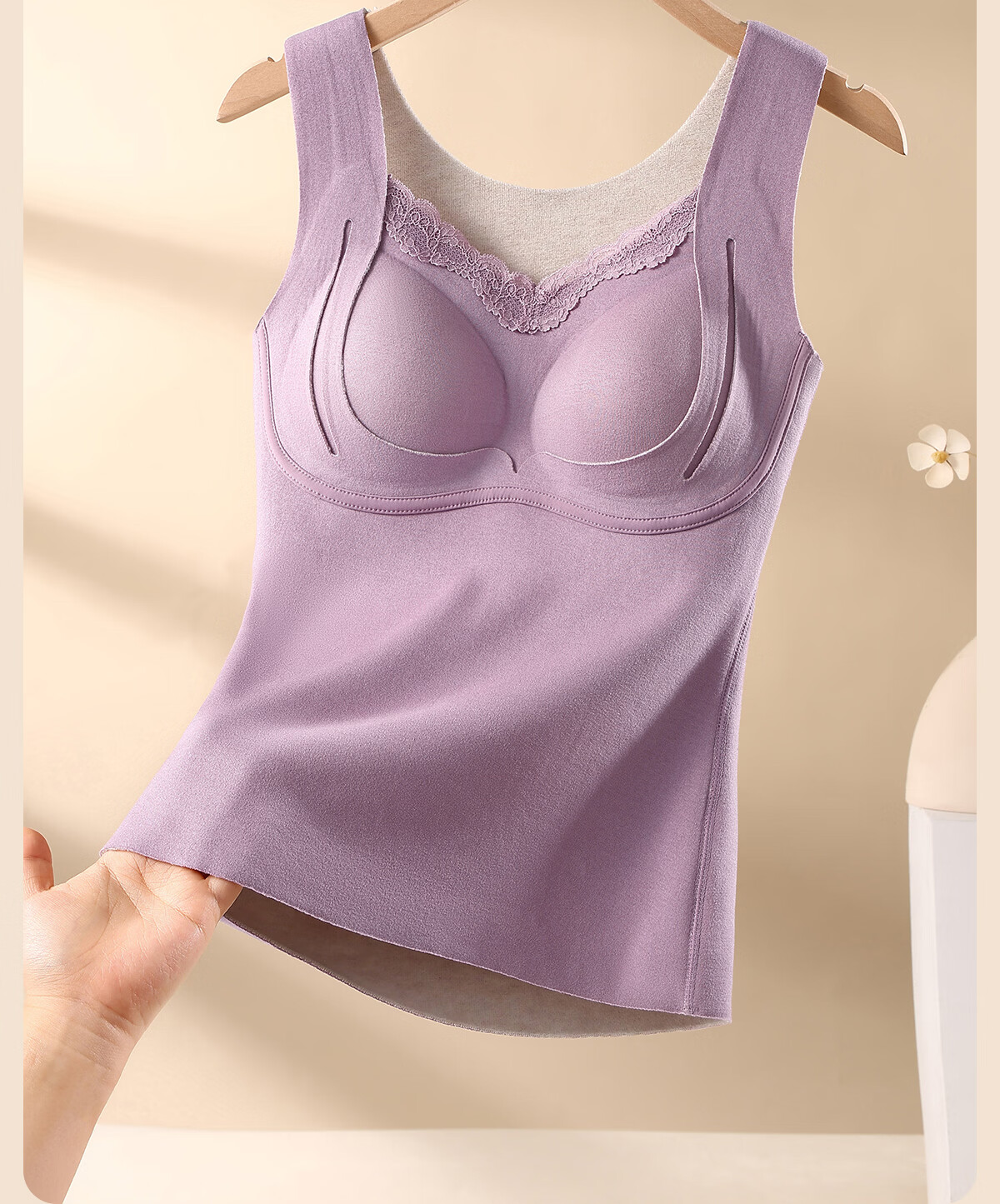 都市丽人保暖内衣女A类【貂绒桑蚕丝】远红外发热免穿文胸贴身柔软打底衣 紫色 2XL 建议体重135-150斤