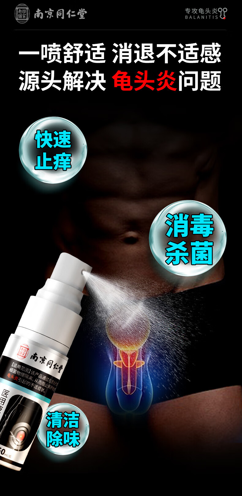 纾大夫龟头炎包皮炎专用阴囊潮湿瘙痒红肿异味红点白点念珠菌药喷雾剂 三支周期装(两支价)