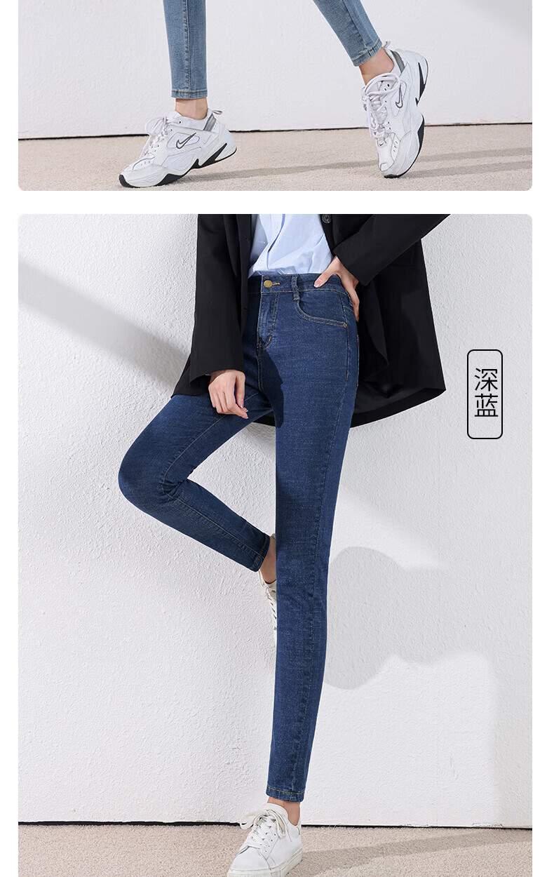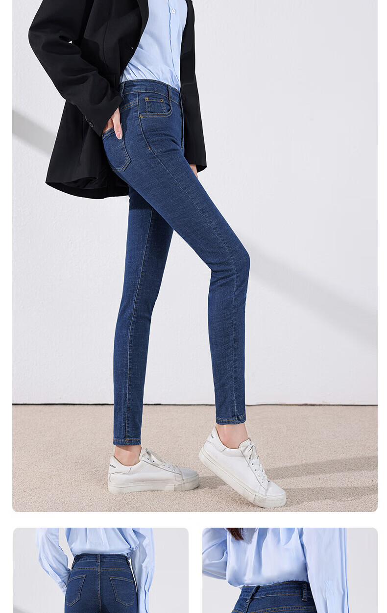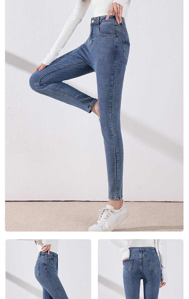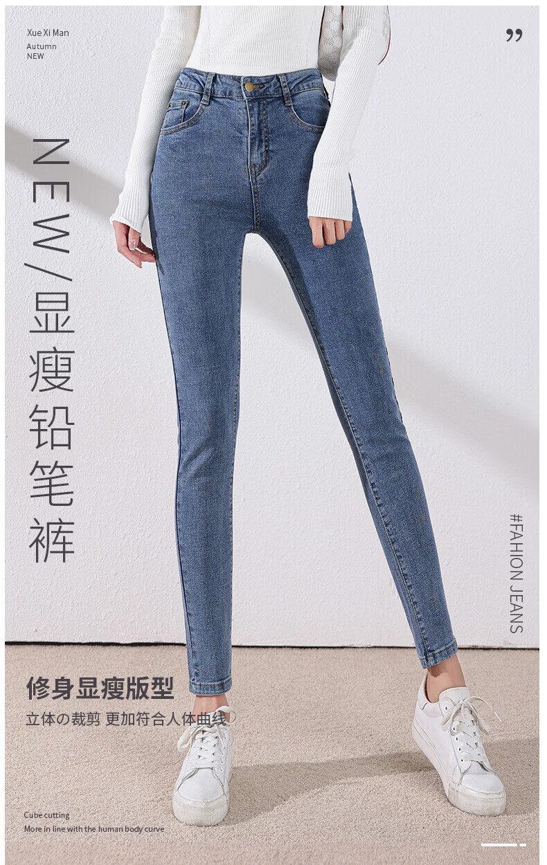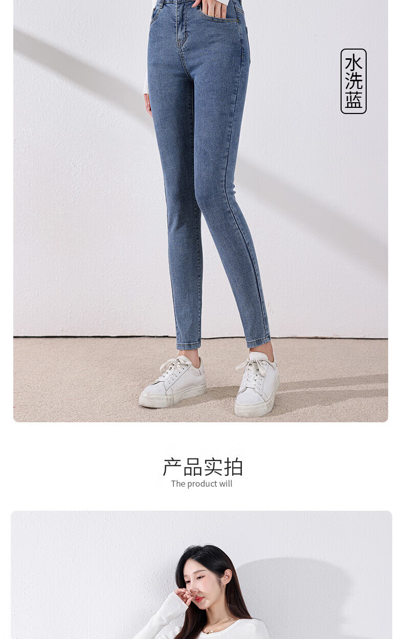 雪茜曼蓝色紧身牛仔裤女春秋2026新款弹力修身高腰显瘦小个子小脚铅笔裤 水洗蓝 26 【适合80-95斤】