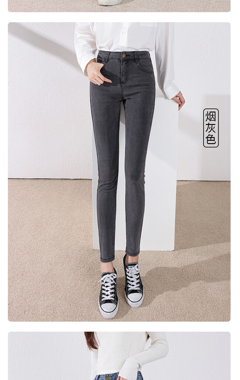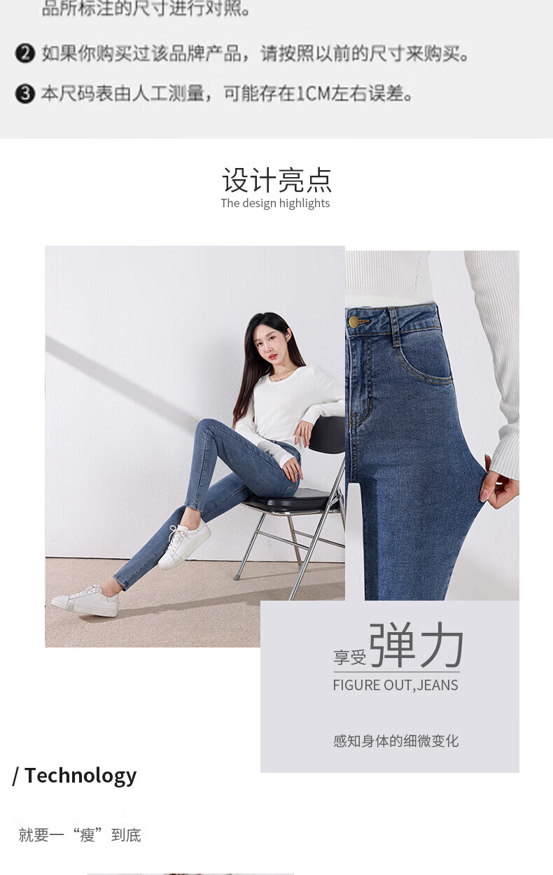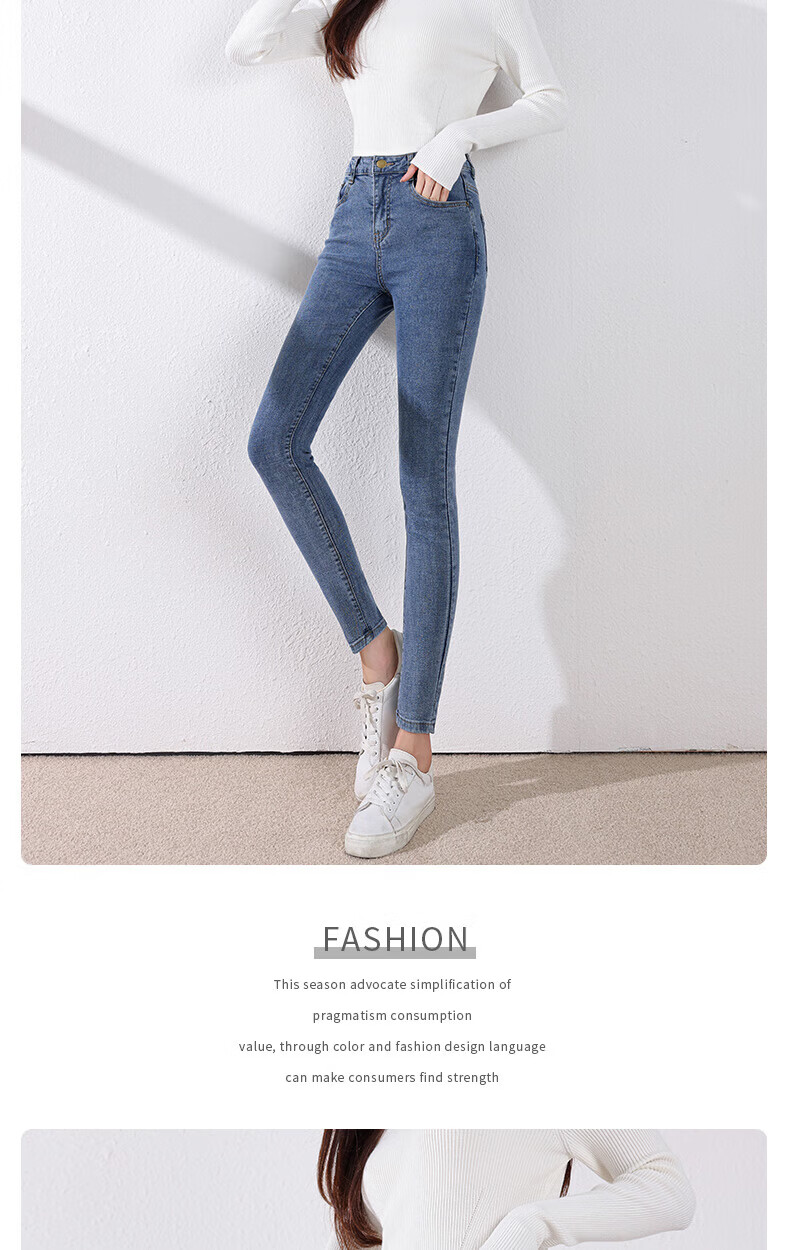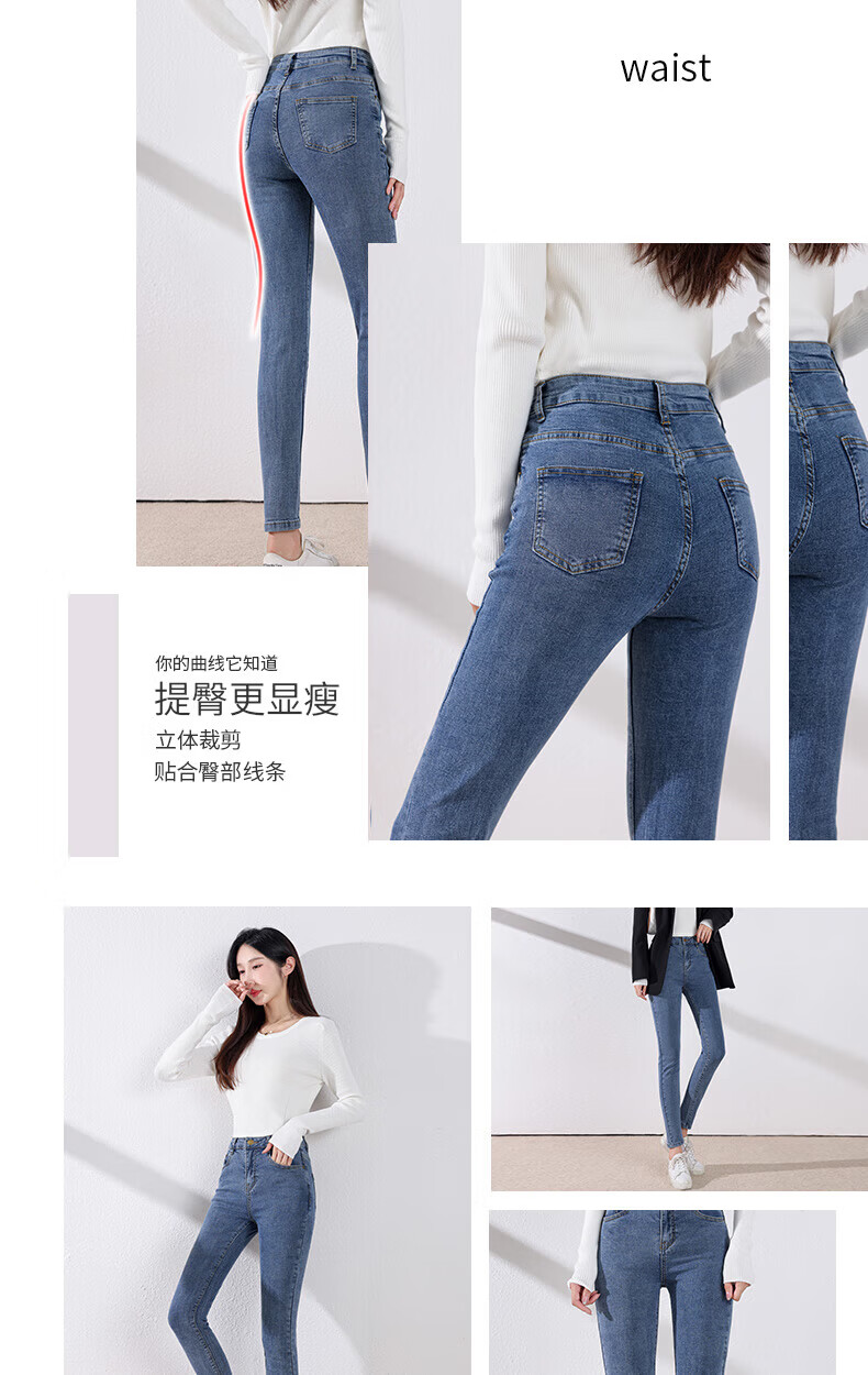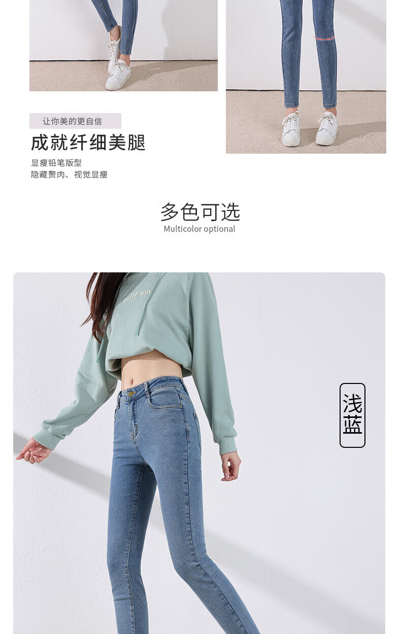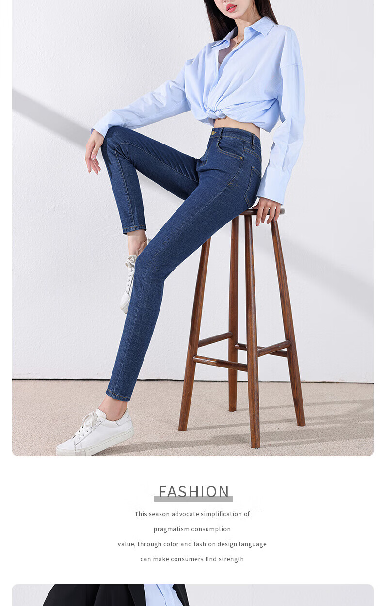 雪茜曼蓝色紧身牛仔裤女春秋2026新款弹力修身高腰显瘦小个子小脚铅笔裤 水洗蓝 26 【适合80-95斤】