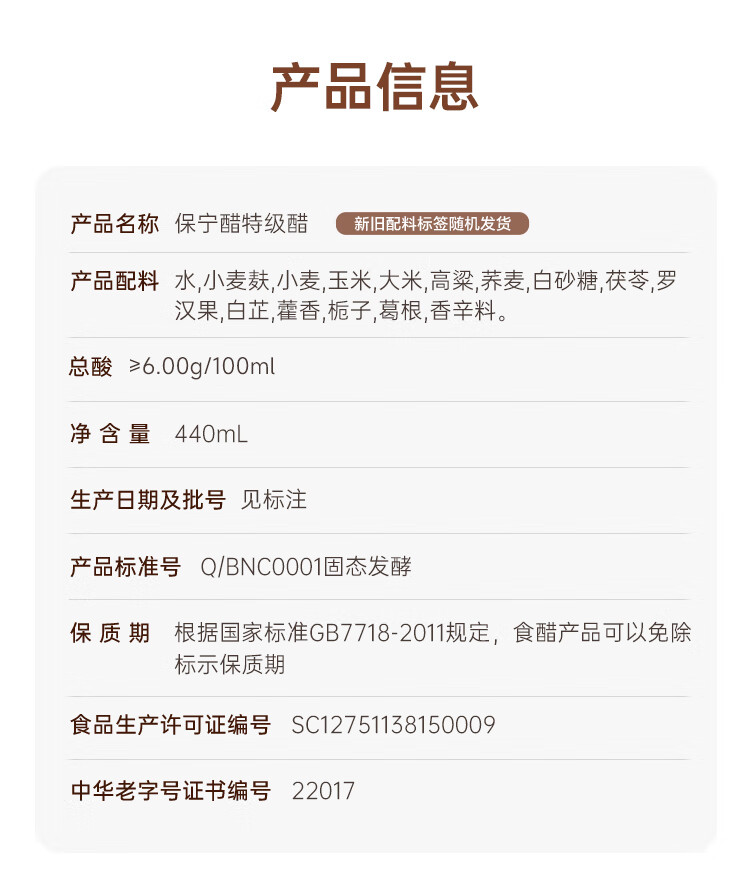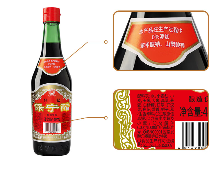 保宁醋 特级醋6度440ml 【0添加】特级酿造食醋 炒菜调味饺子蘸料