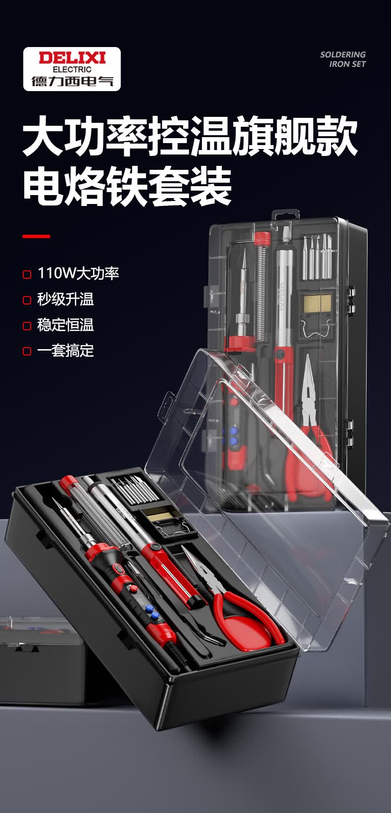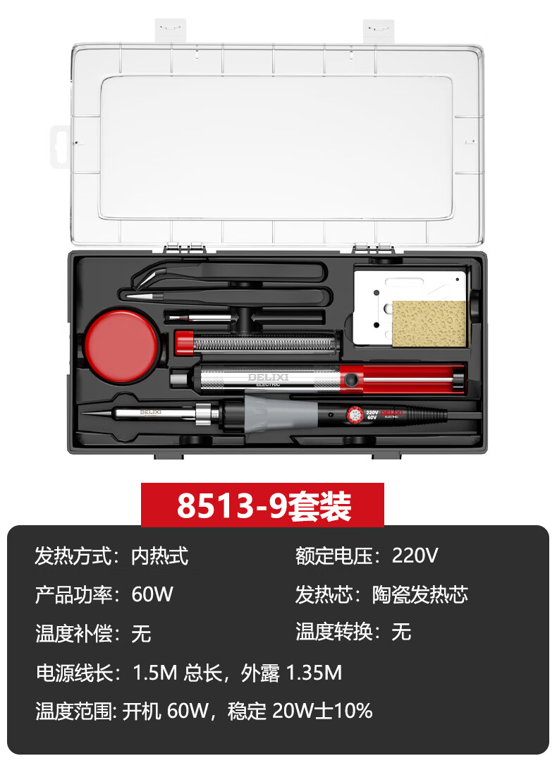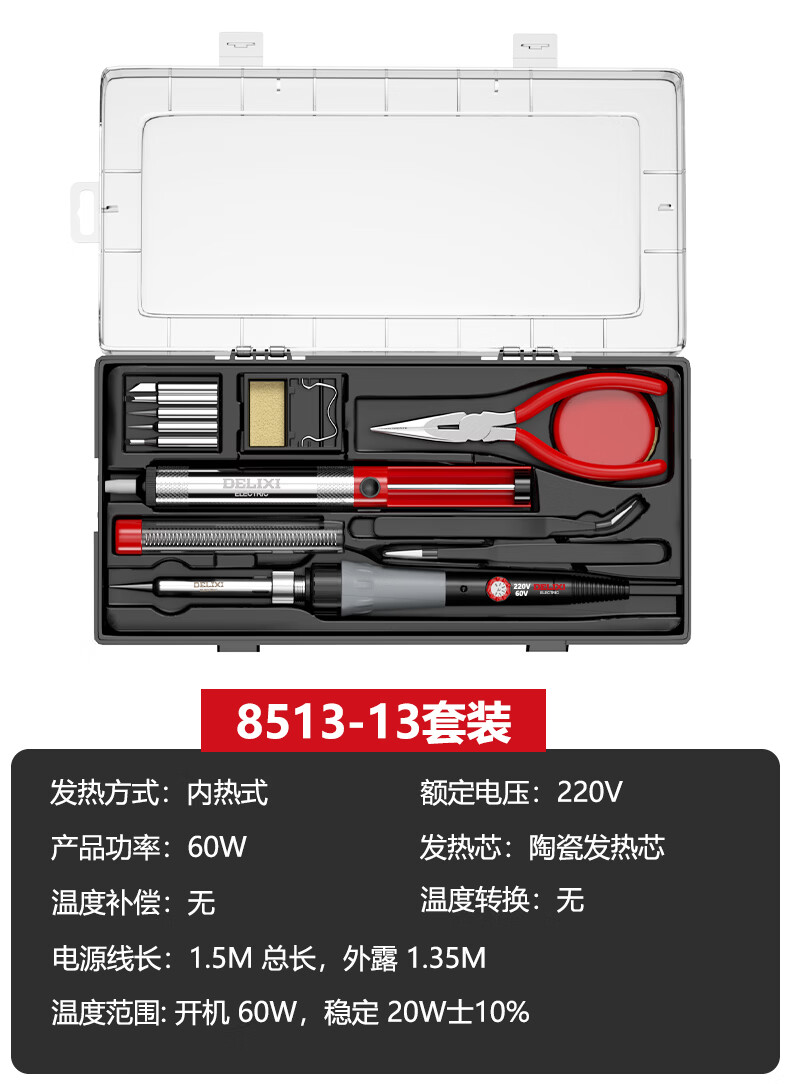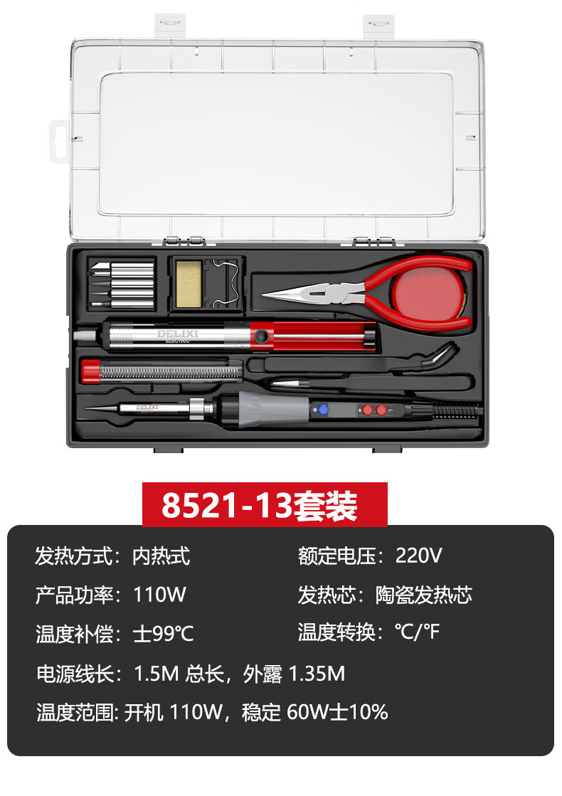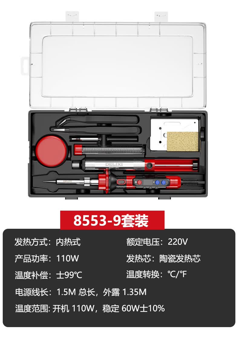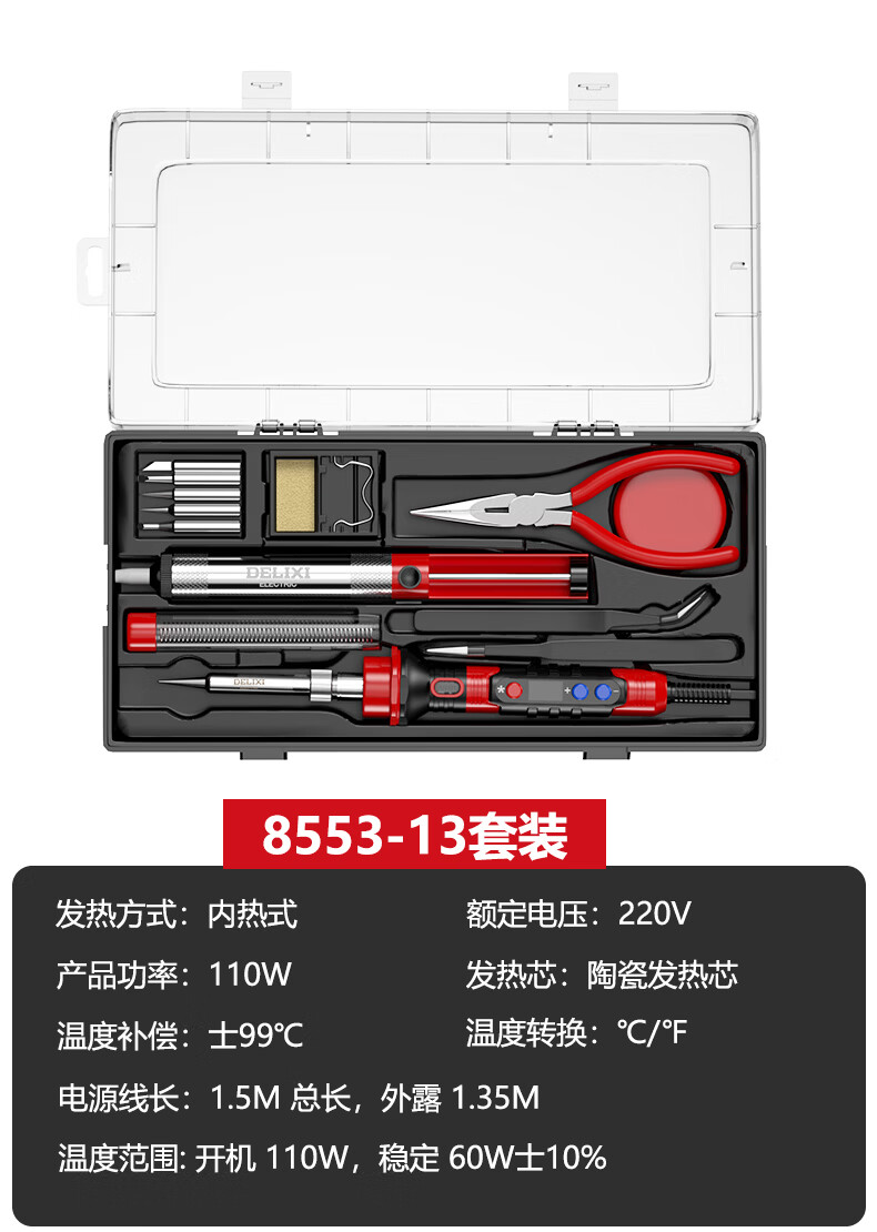 德力西电气(DELIXI ELECTRIC)电烙铁家用套装工业级 家用电烙铁锡焊神器便携式大功率 110W数显调温工业级-Max版套装(8553-13)