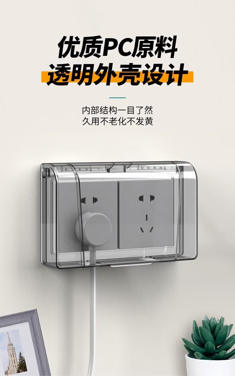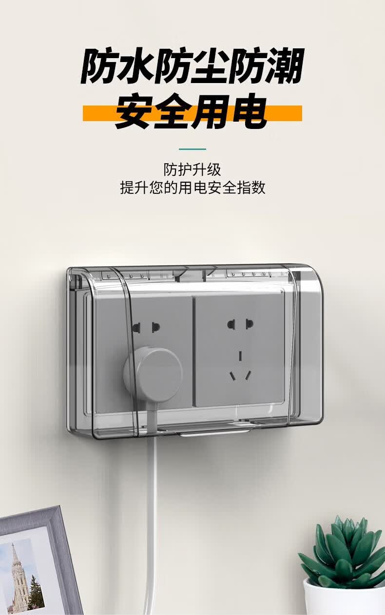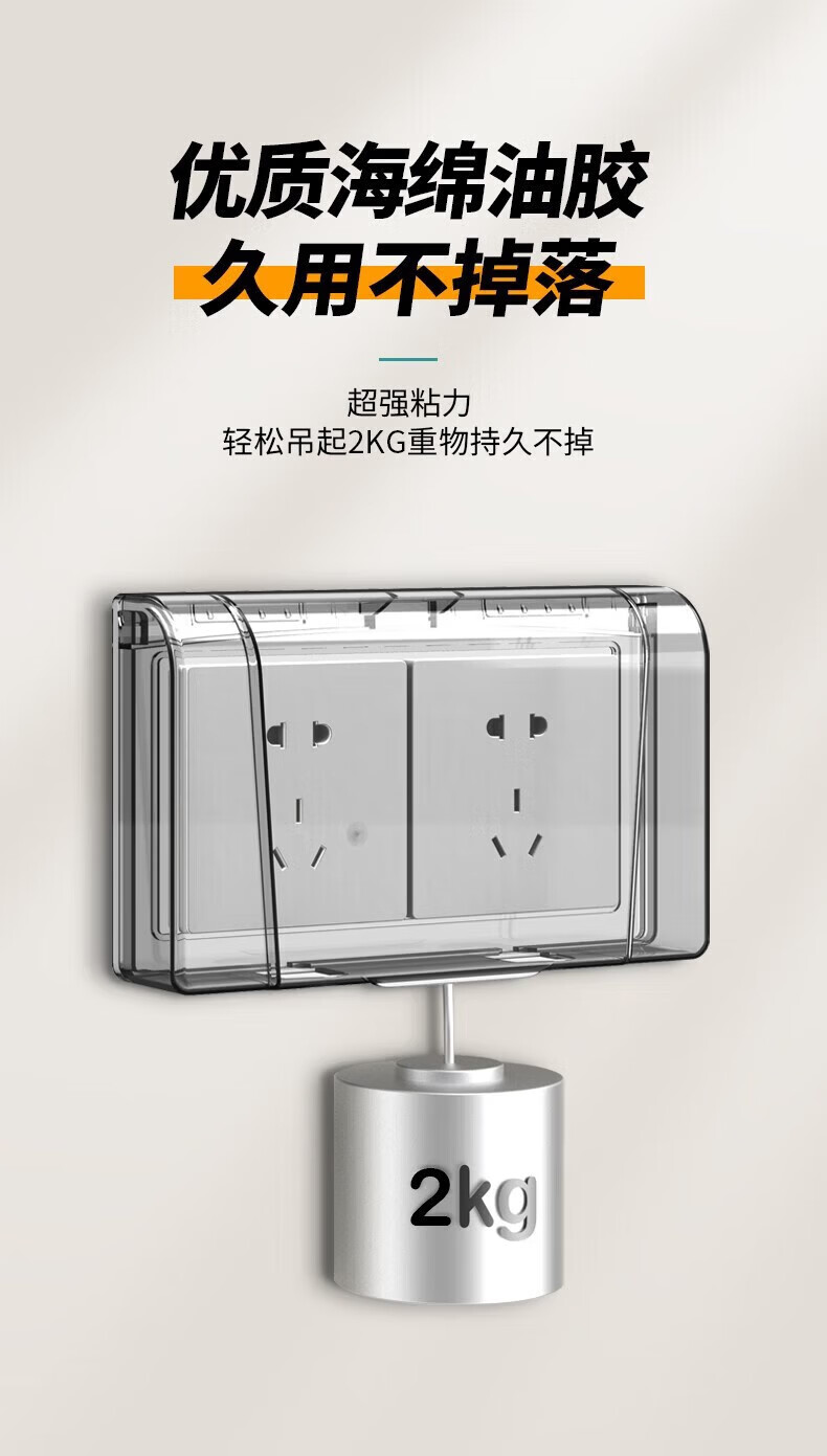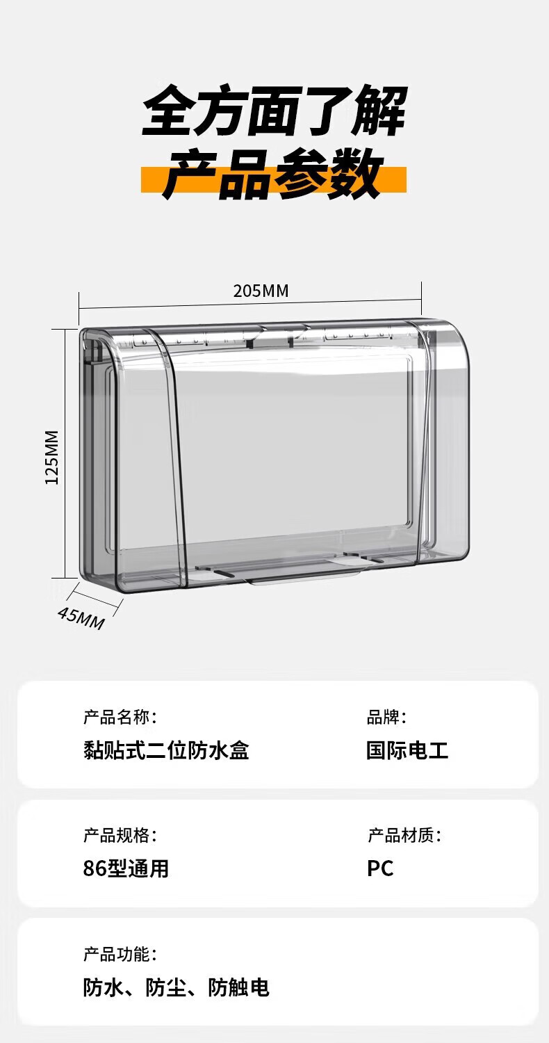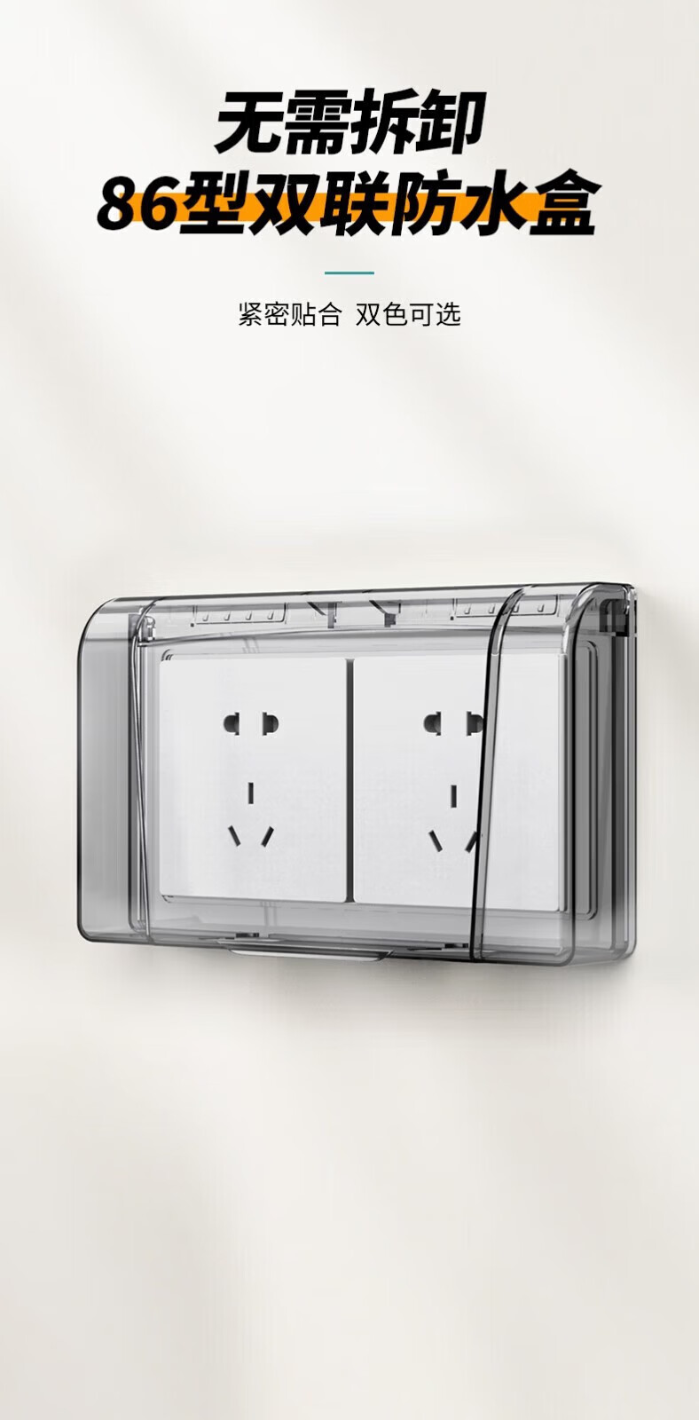 国际电工双86型二位双联开关插座防水盒保护罩盖卫生间厨房连体粘贴防溅盒 86型双联粘贴防水盒-透明