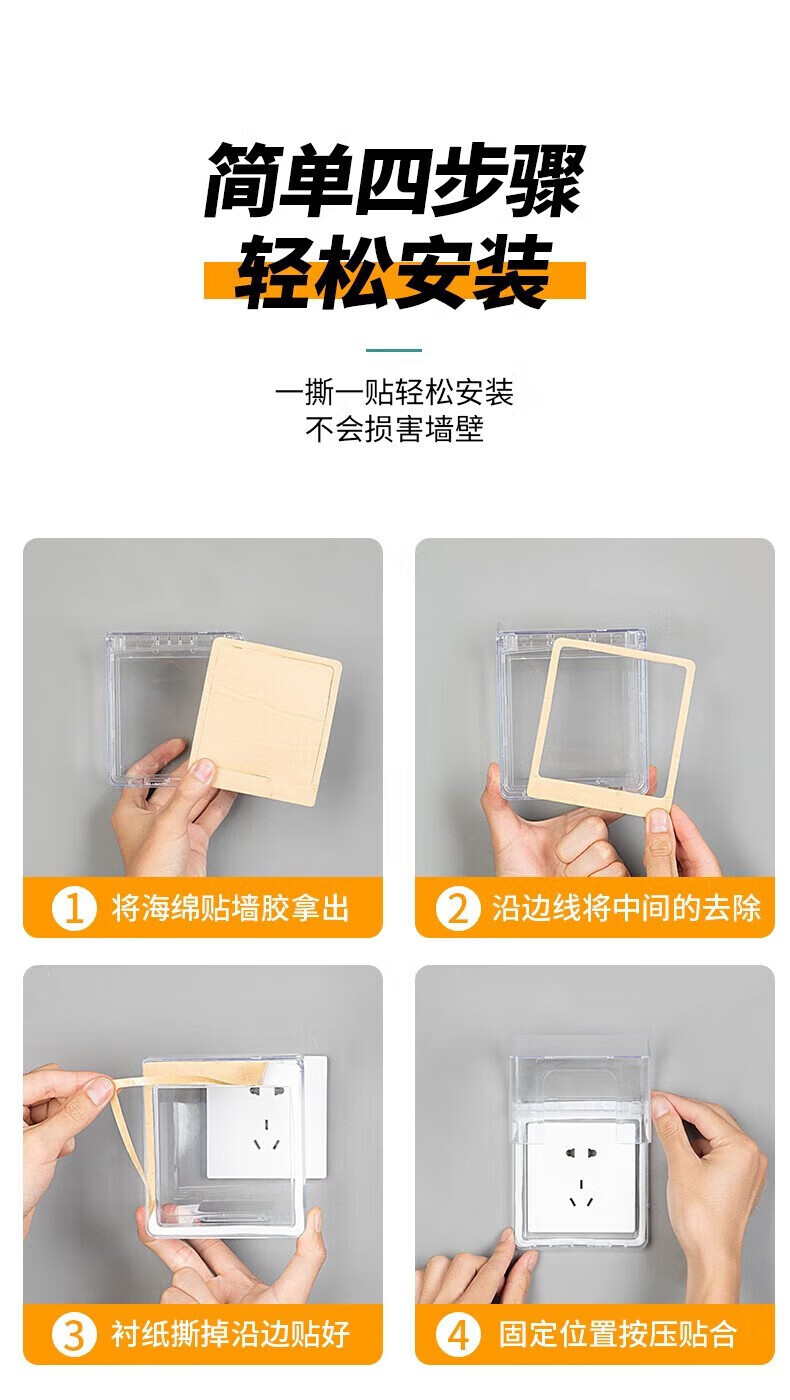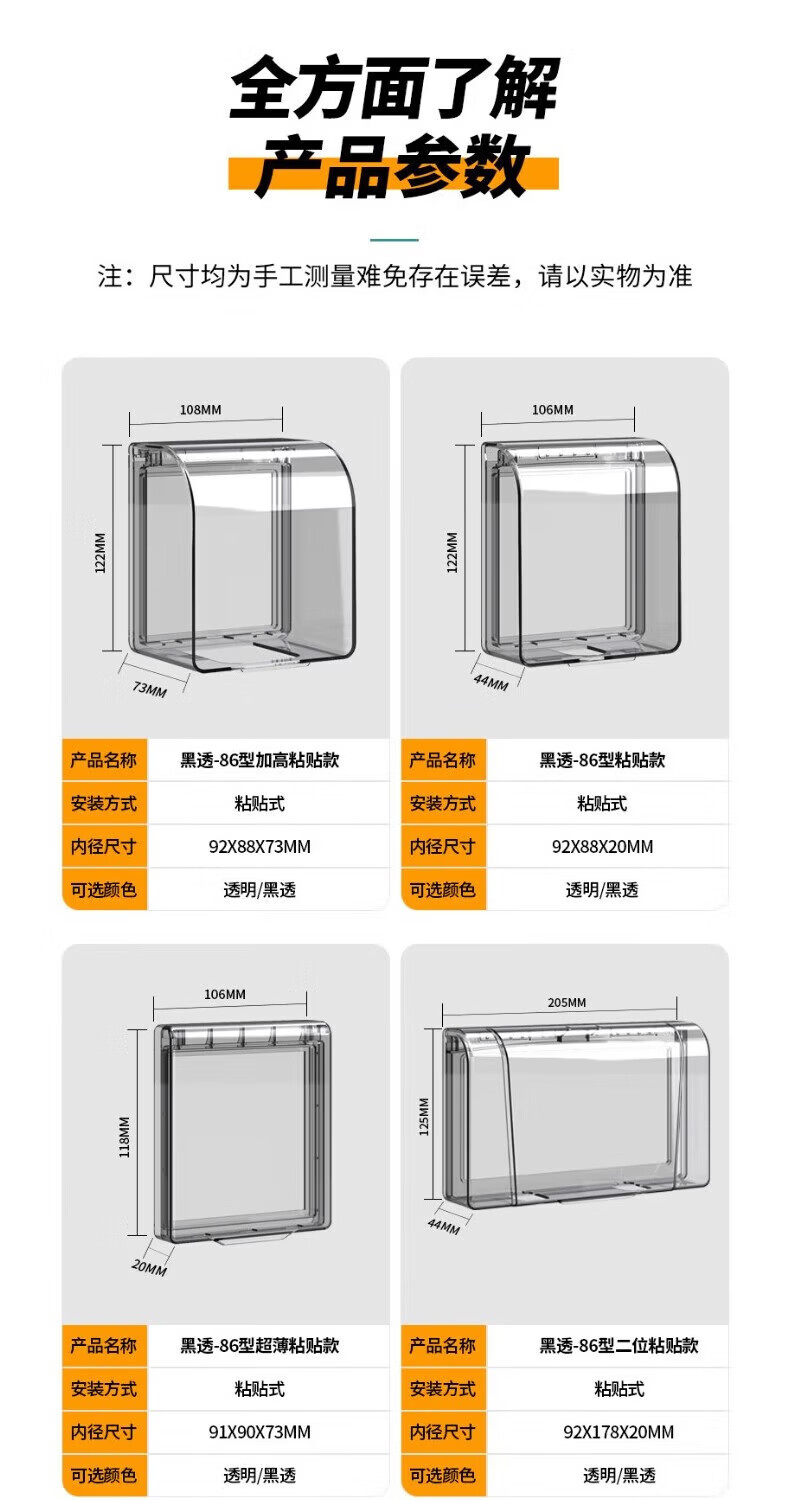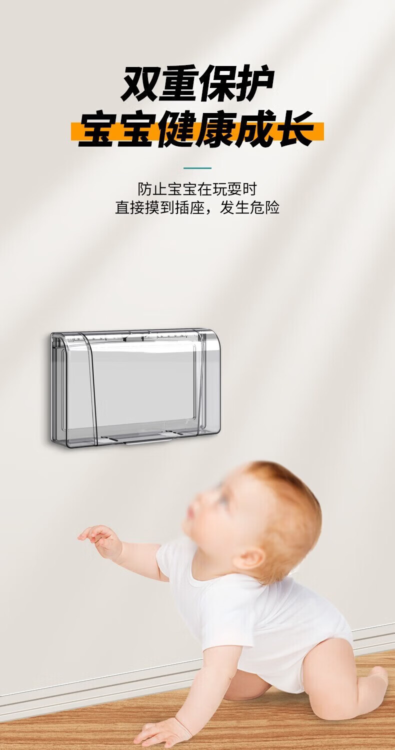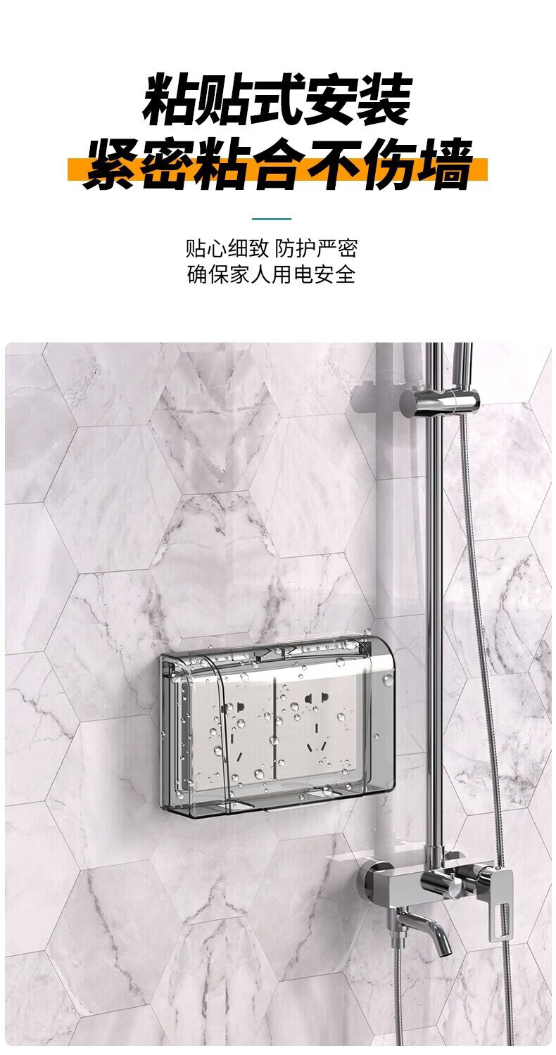 国际电工双86型二位双联开关插座防水盒保护罩盖卫生间厨房连体粘贴防溅盒 86型双联粘贴防水盒-透明